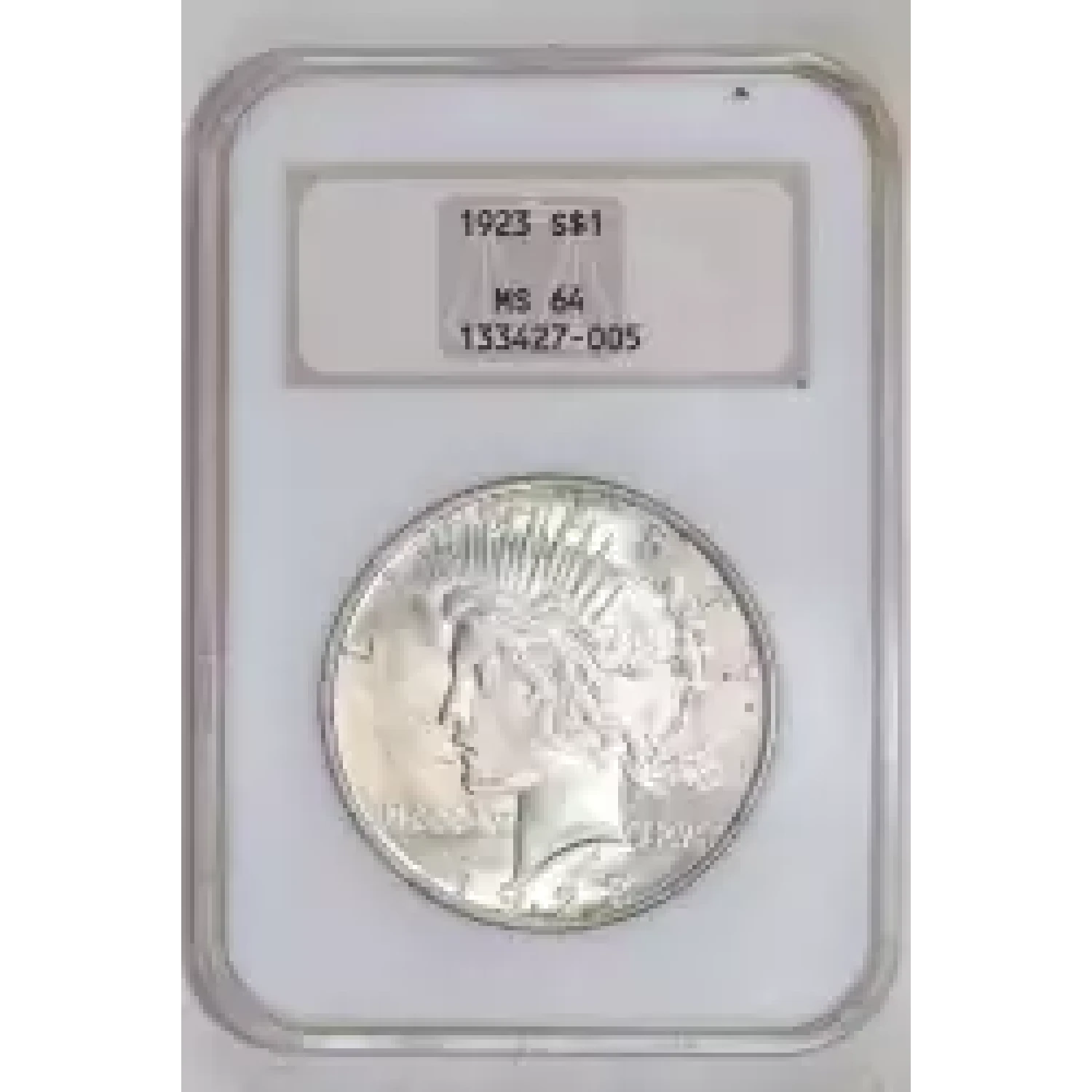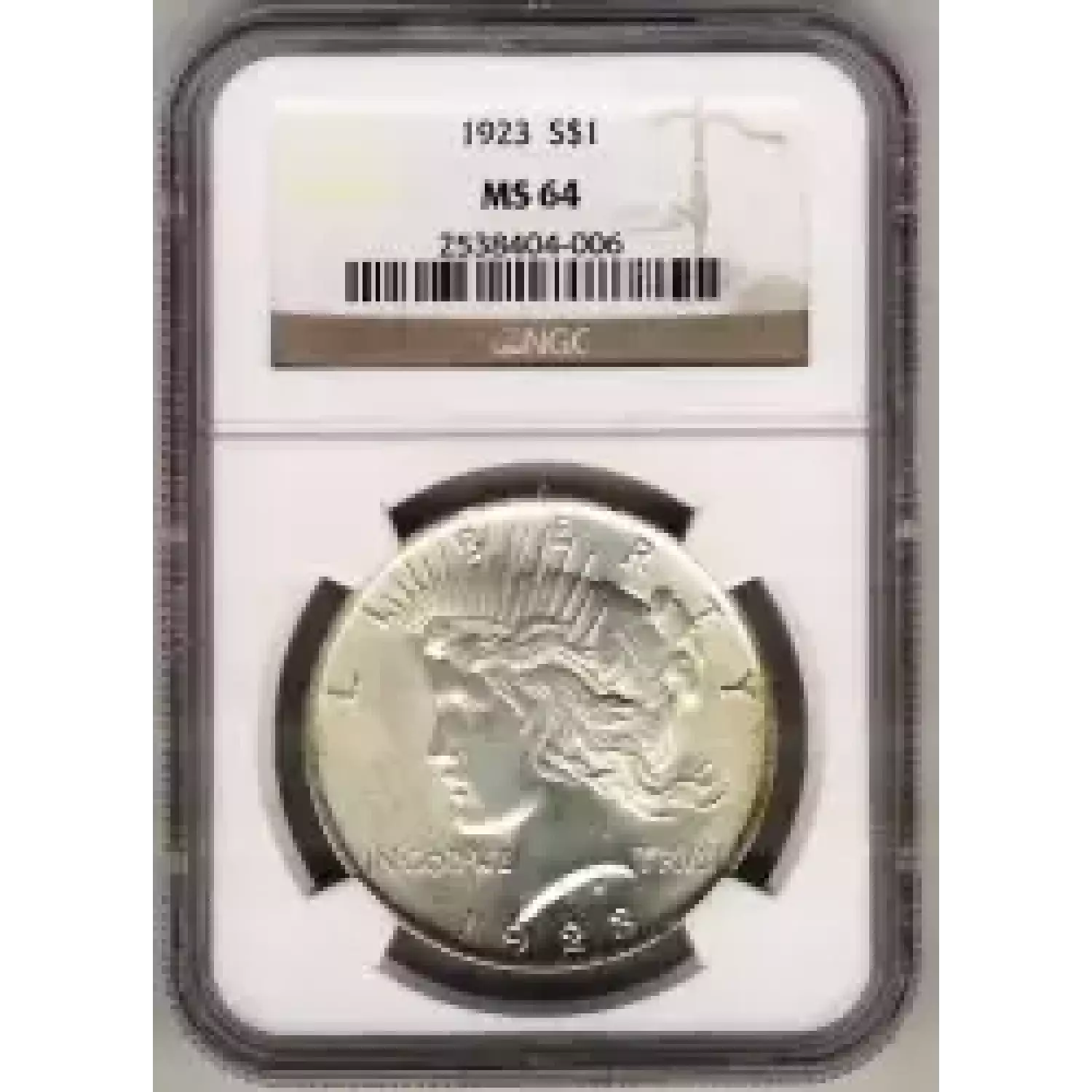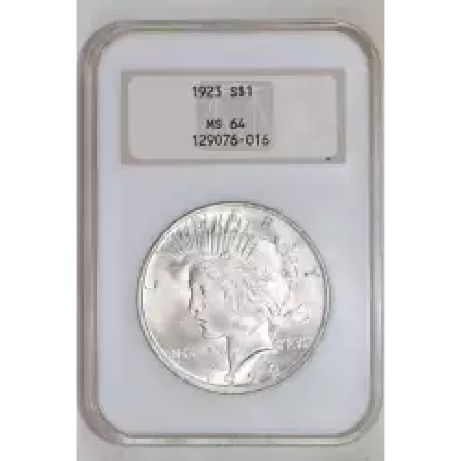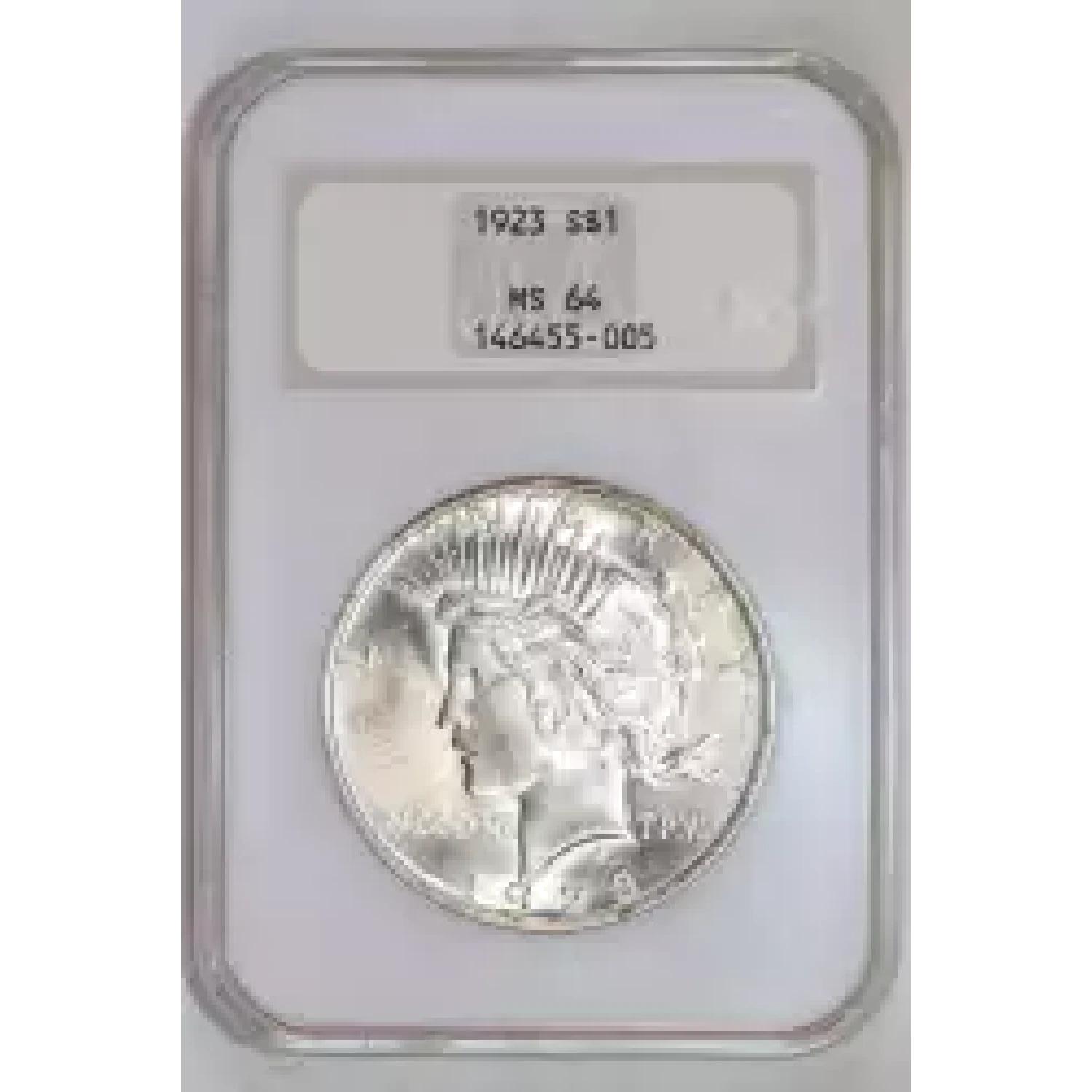 519750 | 1923 Peace Silver Dollar NGC MS-64 | NGC | MS-64 | Sold: 08/03/2024 | $105 |