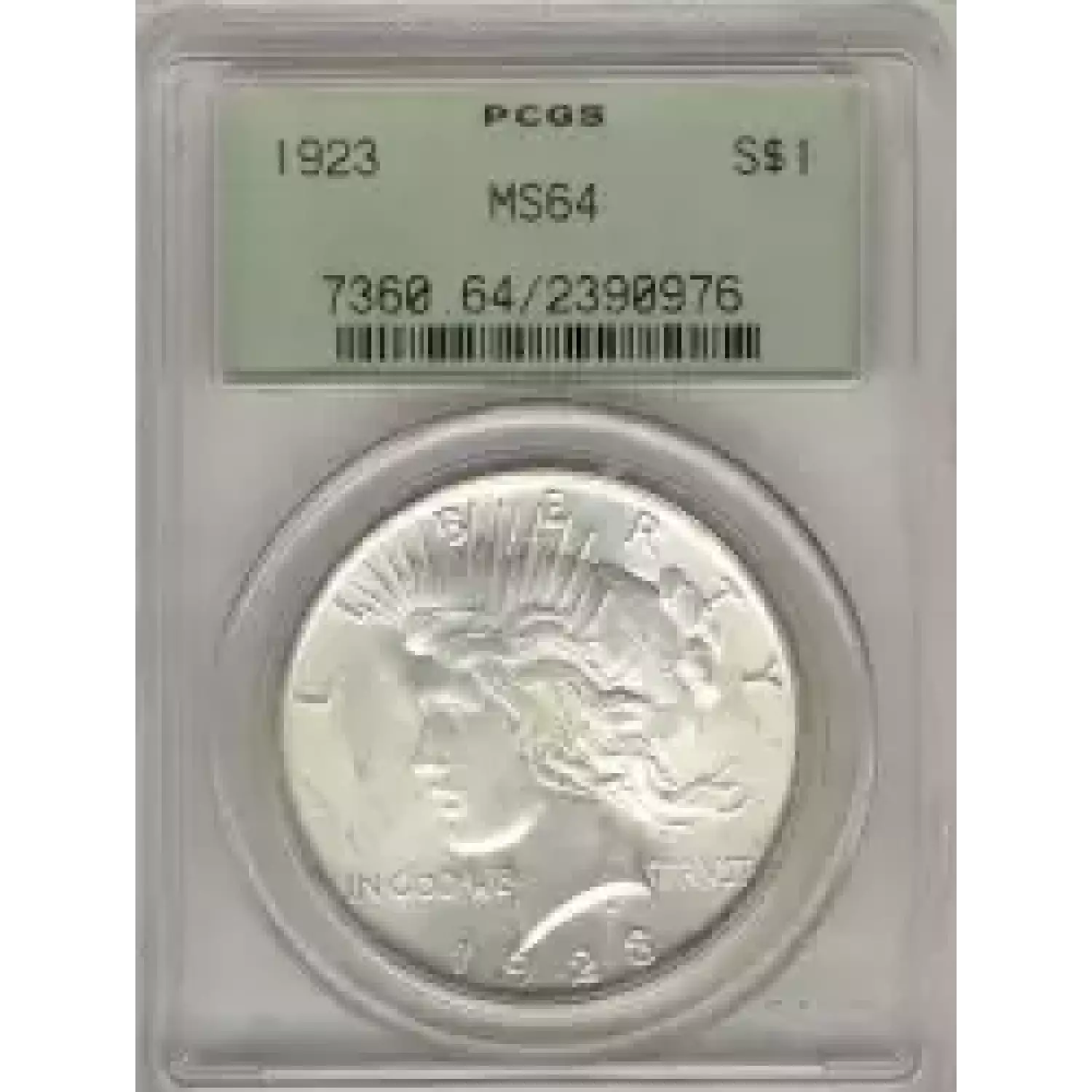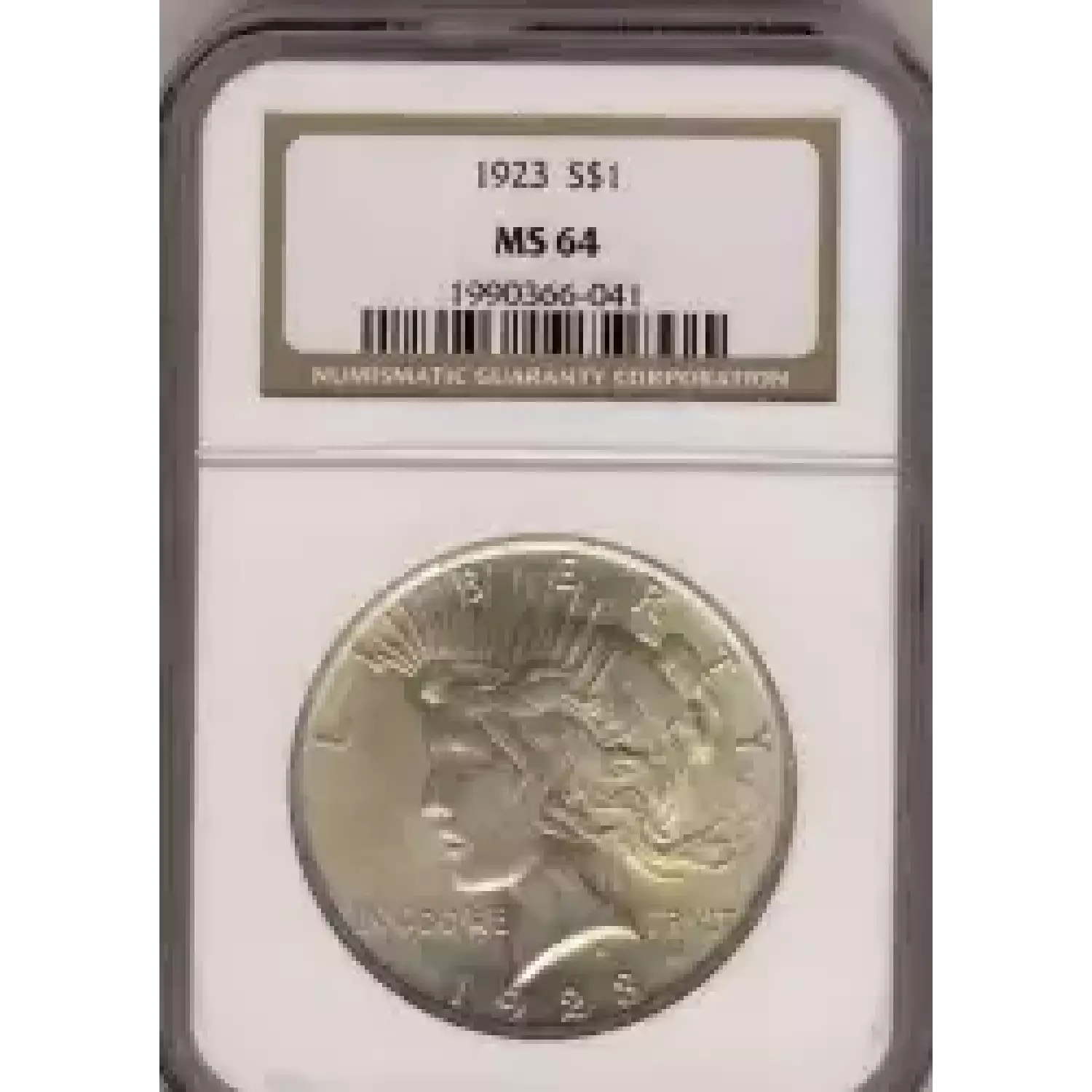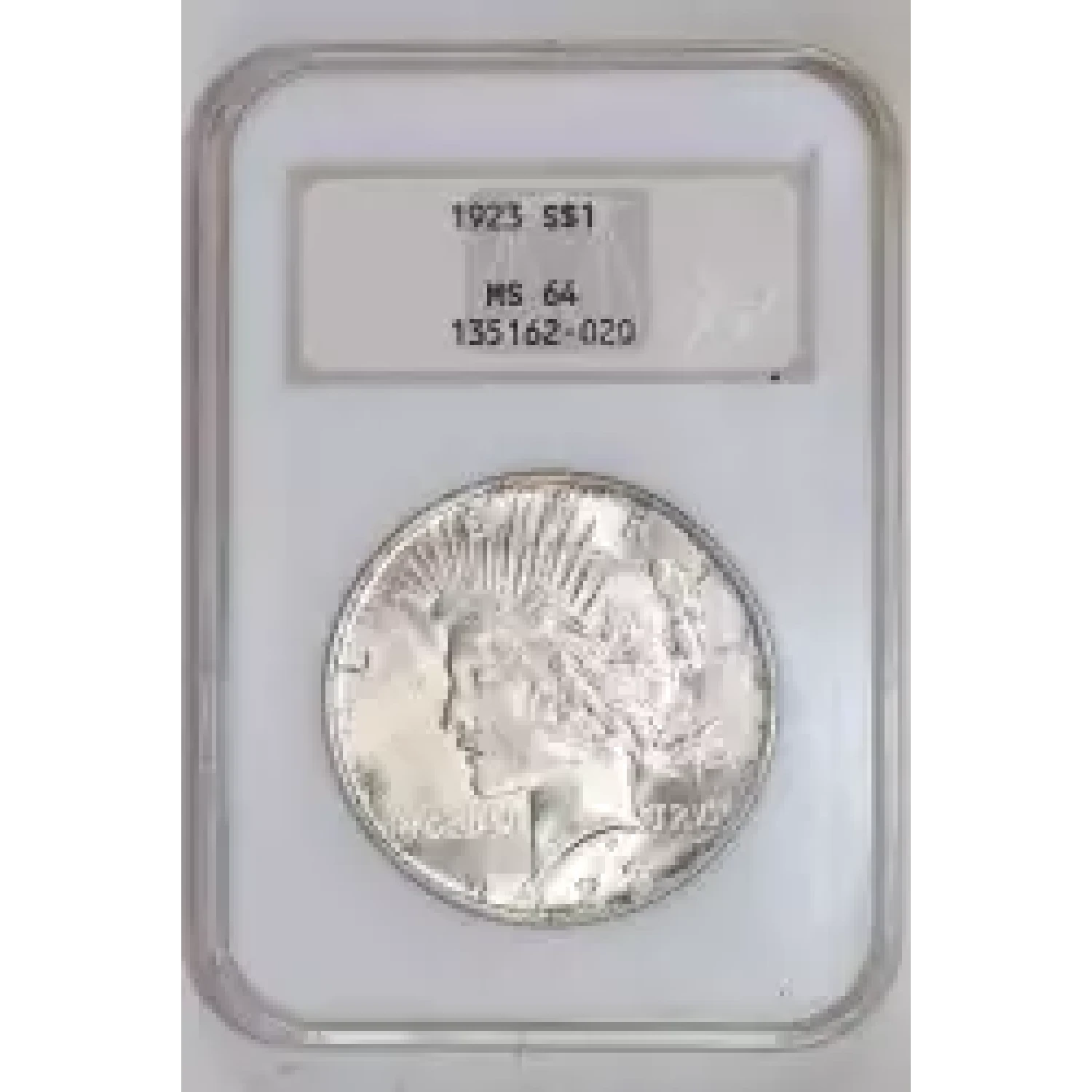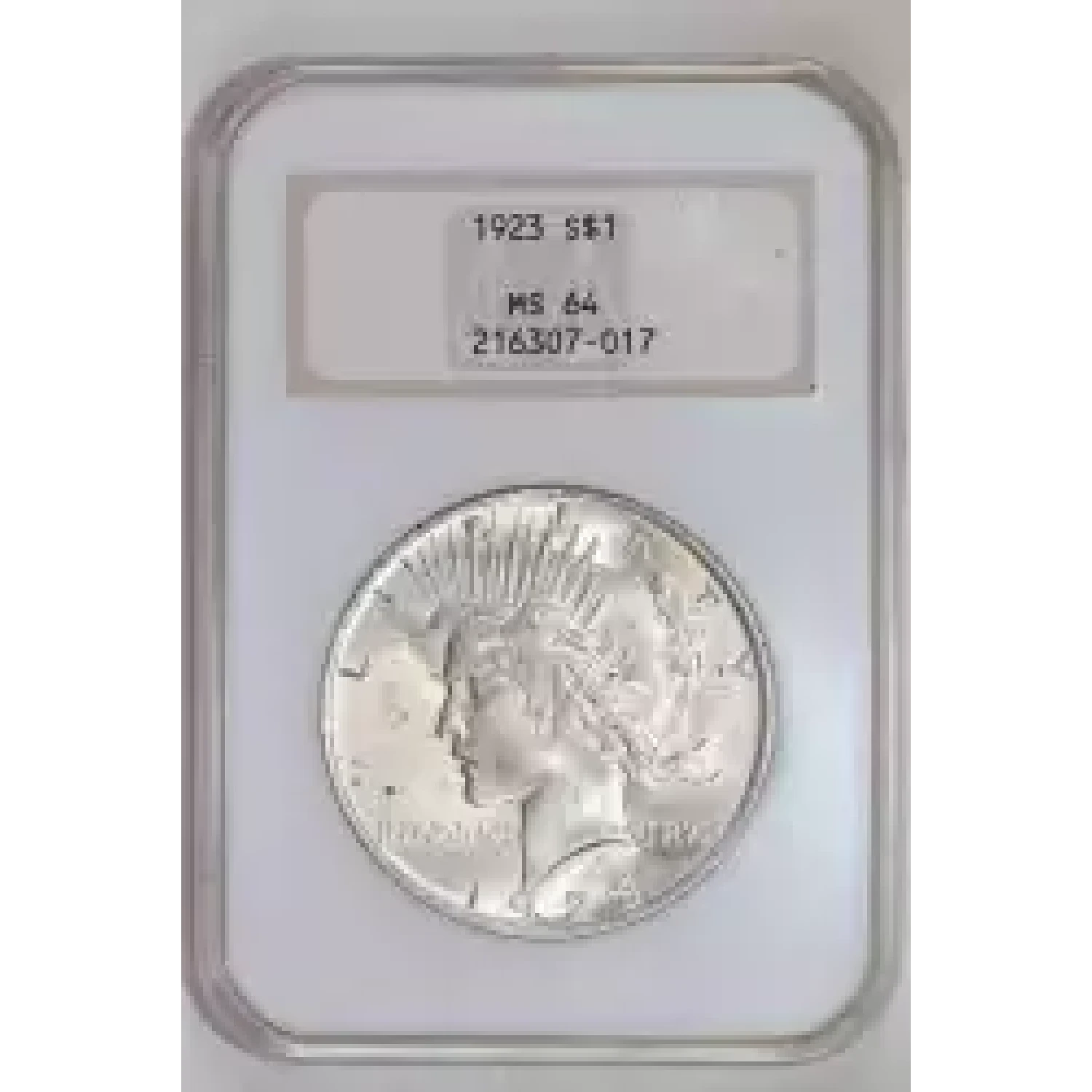 519750 | 1923 Peace Silver Dollar NGC MS-64 | NGC | MS-64 | Sold: 08/03/2024 | $105 |