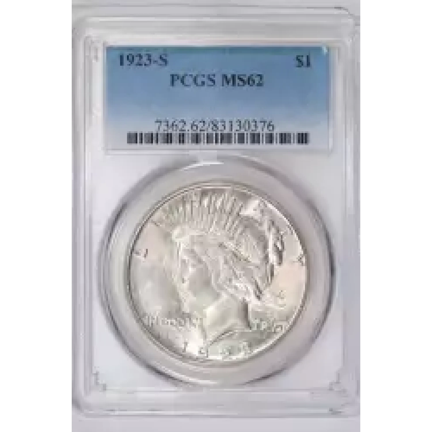 500764 | 1923-S Peace Silver Dollar NGC MS-62 | NGC | MS-62 | Sold: 01/03/2022 | $90 |