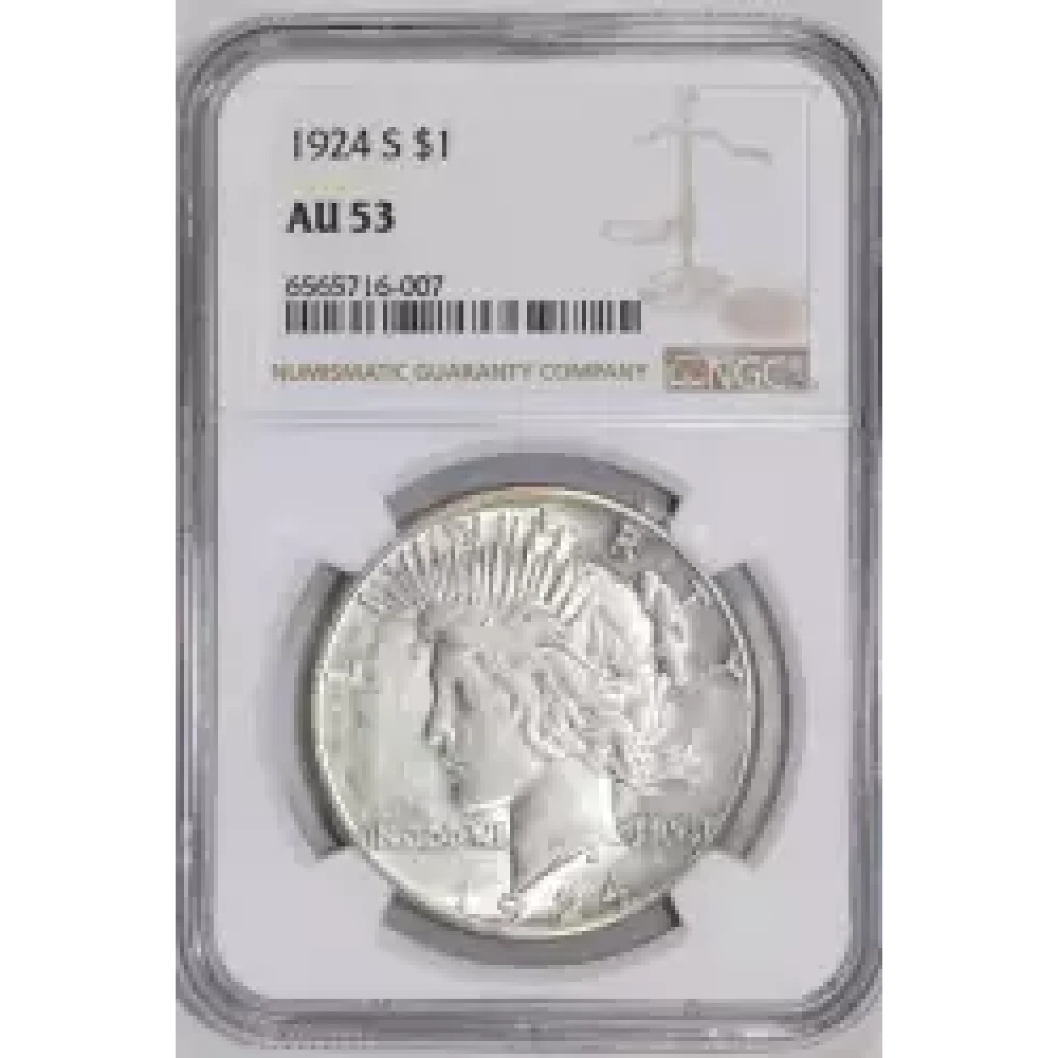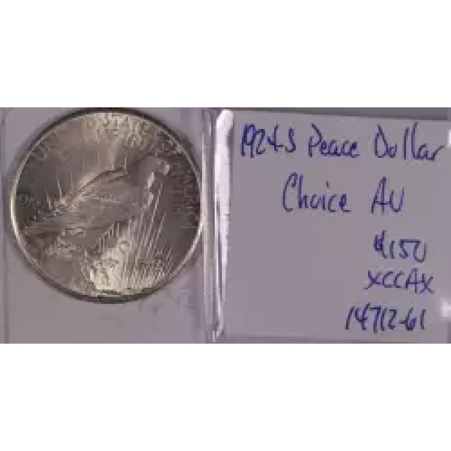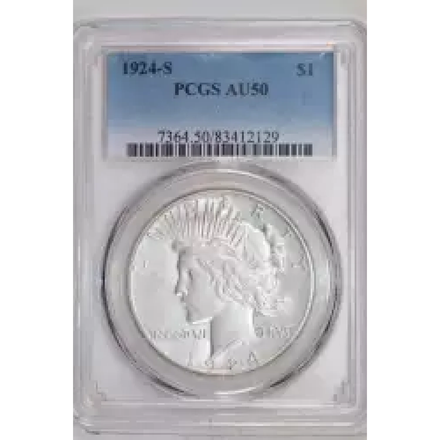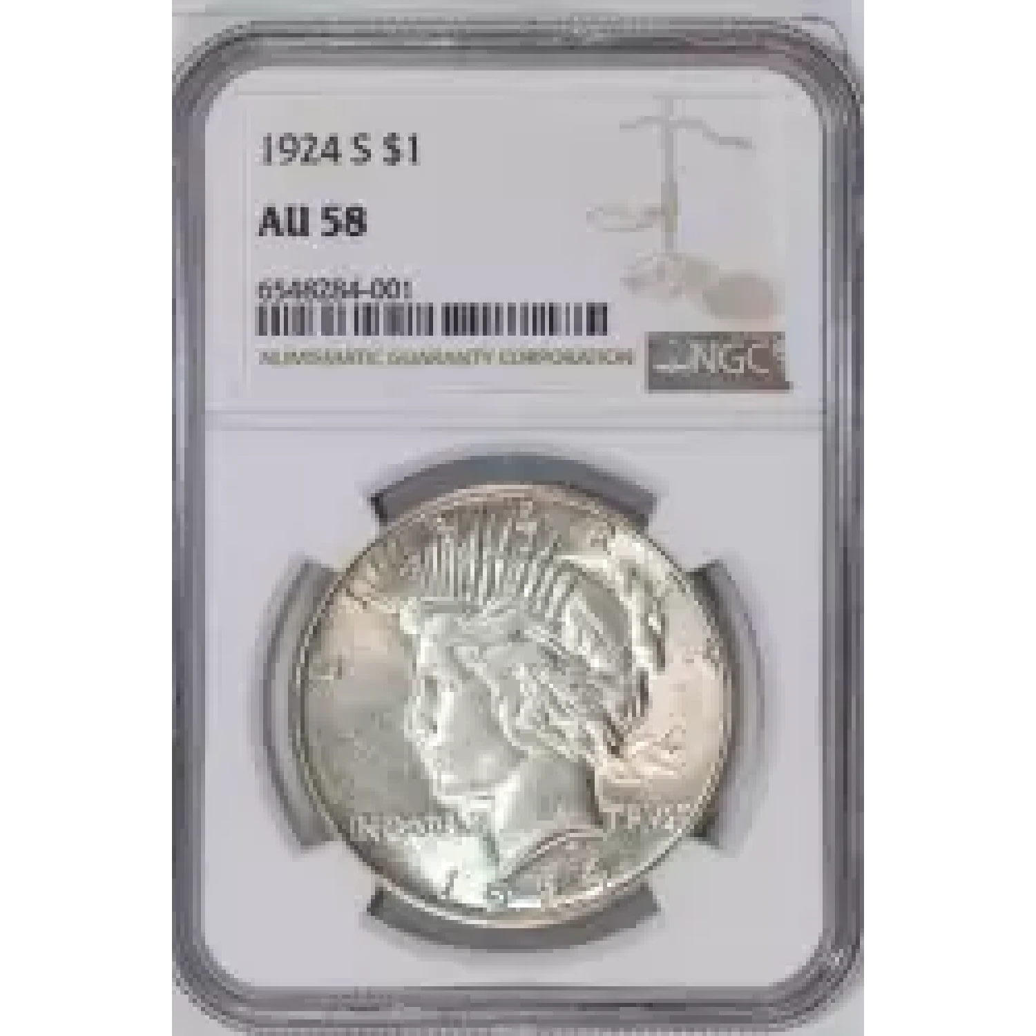 505068 | 1924-AU-58 Peace Silver Dollar NGC AU-58 | NGC | AU-58 | Sold: 07/10/2013 | $34.05 |