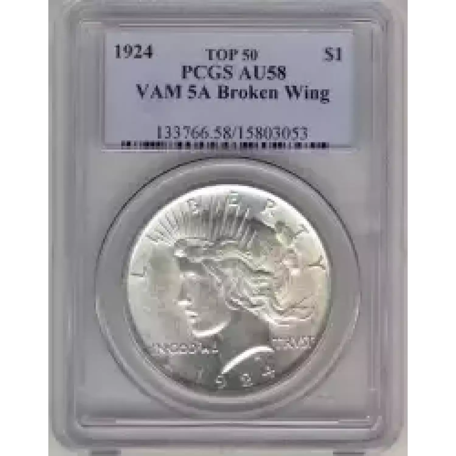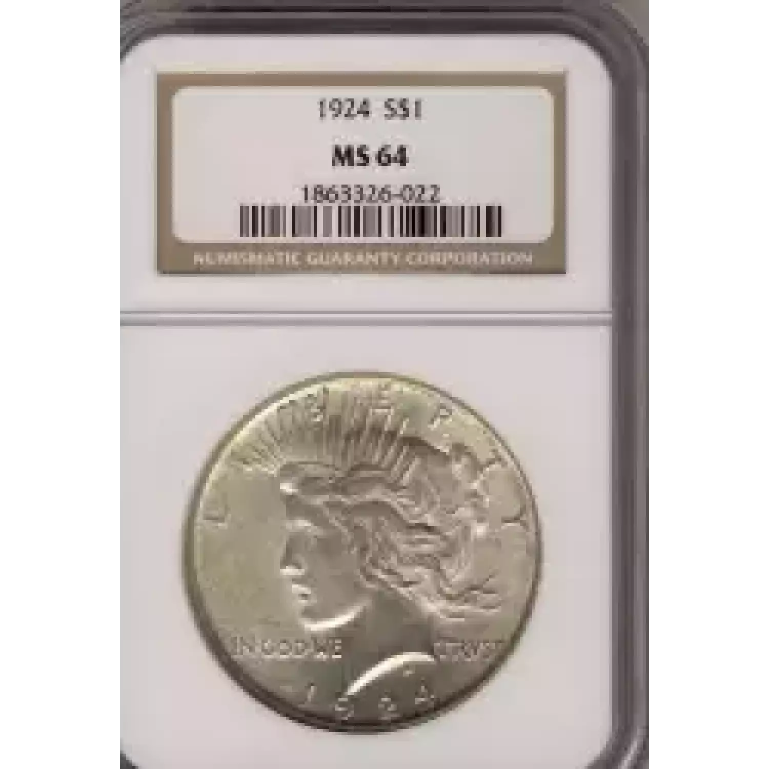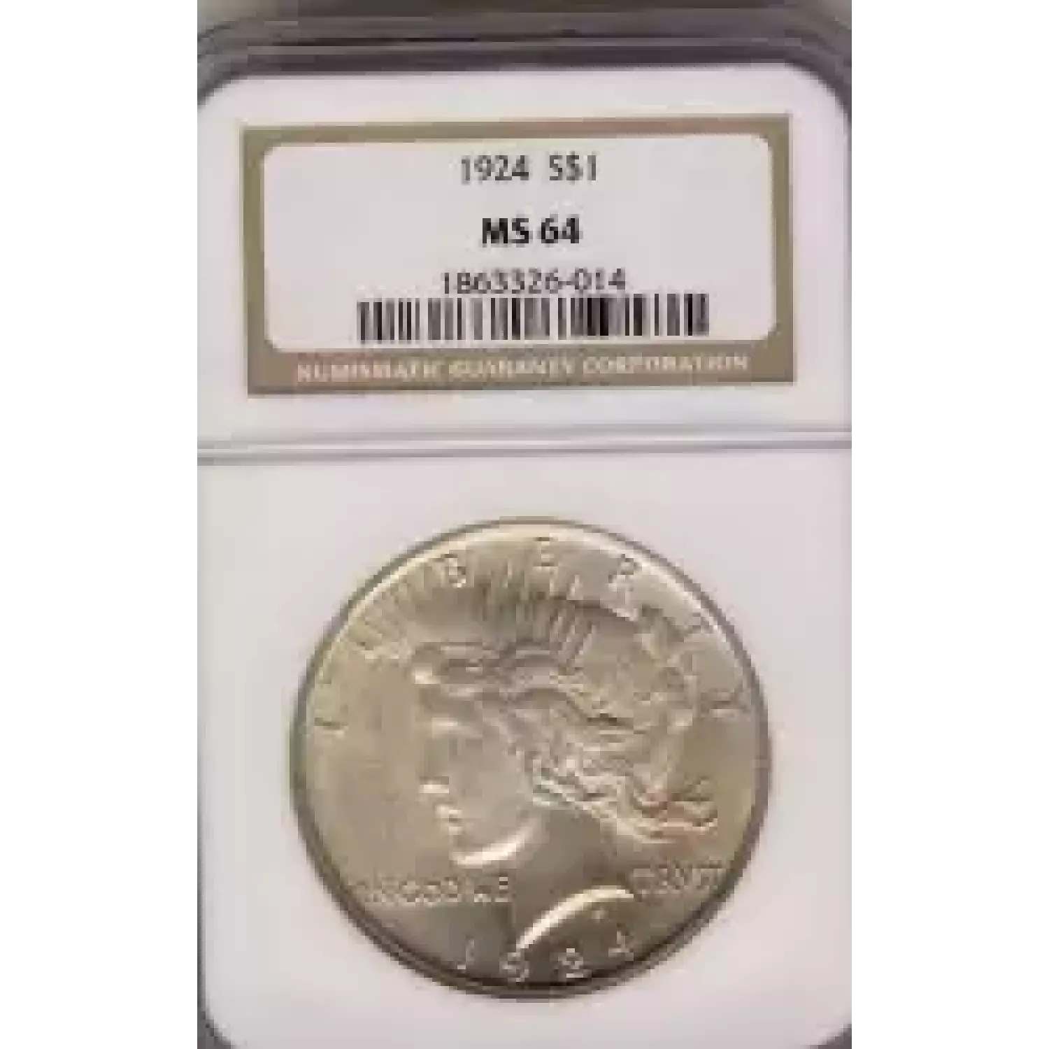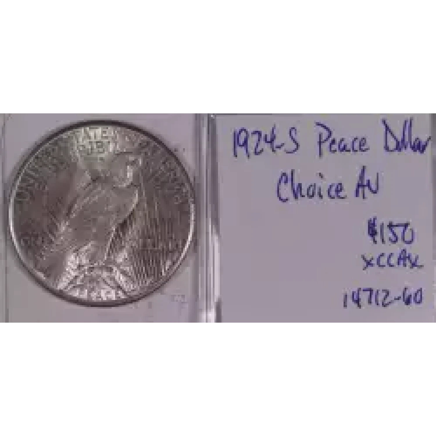 505068 | 1924-AU-58 Peace Silver Dollar NGC AU-58 | NGC | AU-58 | Sold: 07/10/2013 | $34.05 |
