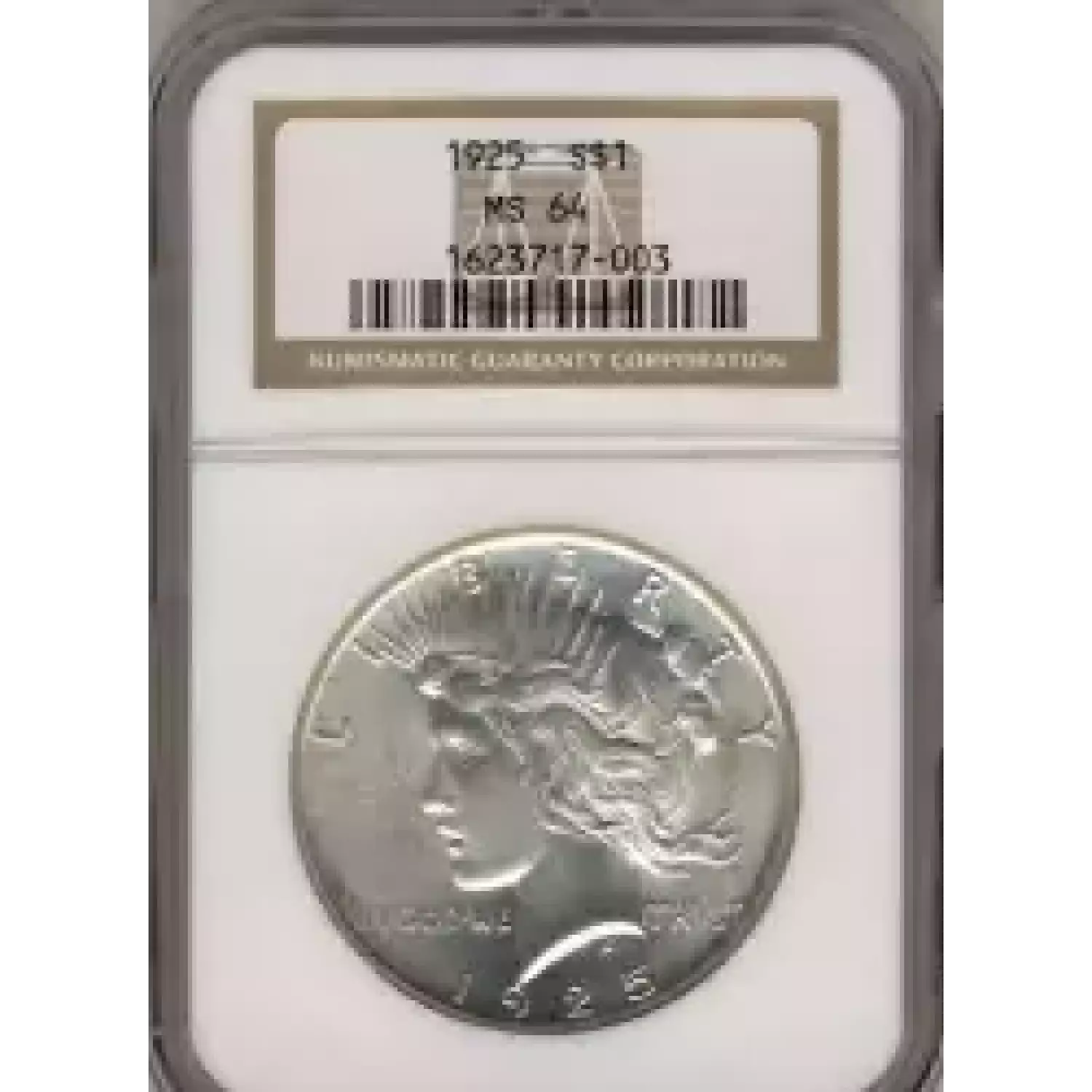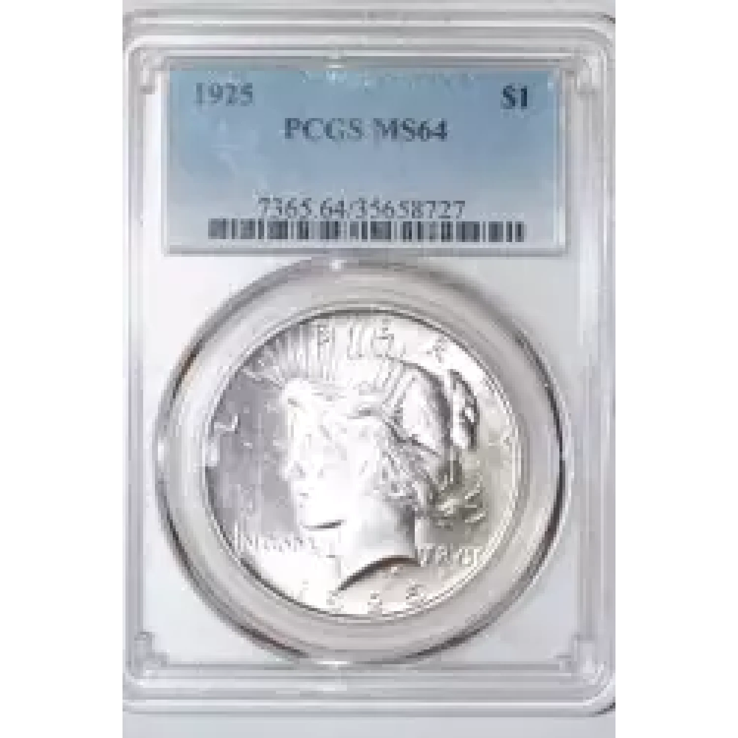 505416 | 1925-MS-64 Peace Silver Dollar PCGS MS-64 | PCGS | MS-64 | Sold: 14/04/2013 | $150 |