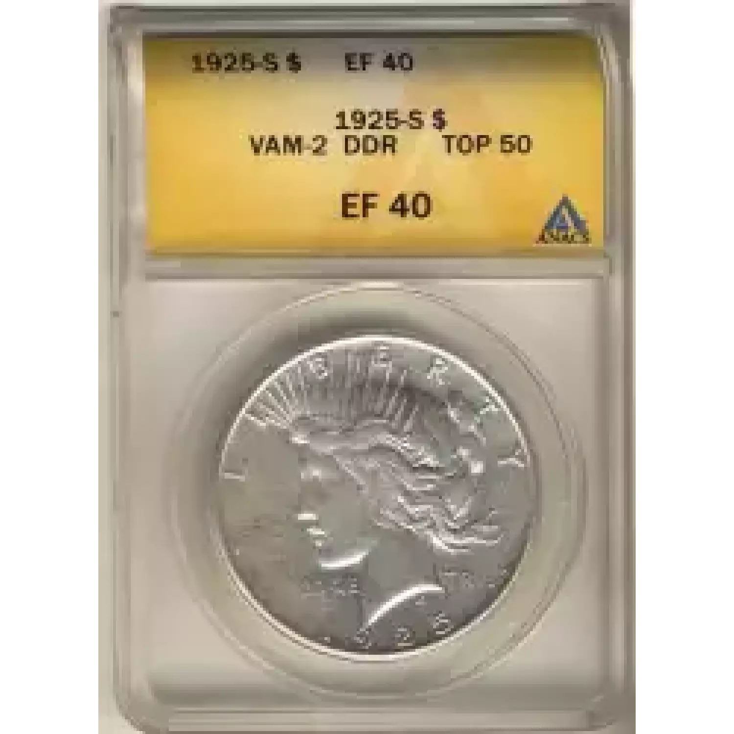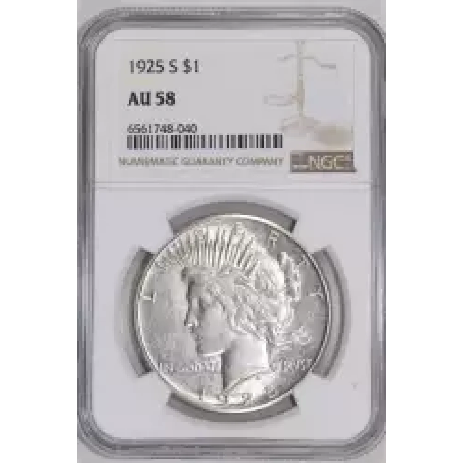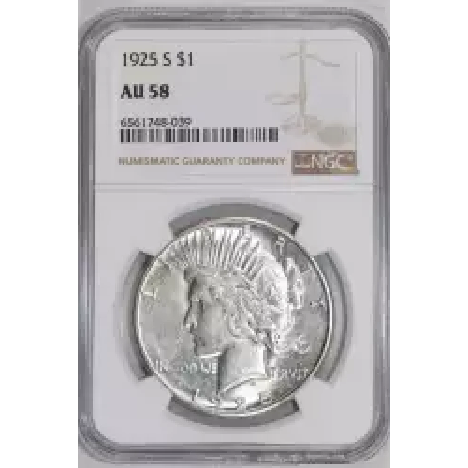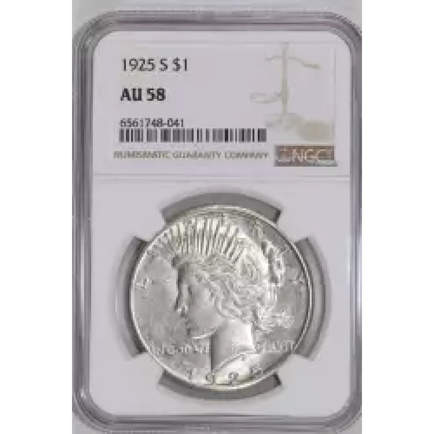 504756 | 1925-AU Details Peace Silver Dollar ANACS AU Details | ANACS | AU Details | Sold: 05/12/2010 | $90 |