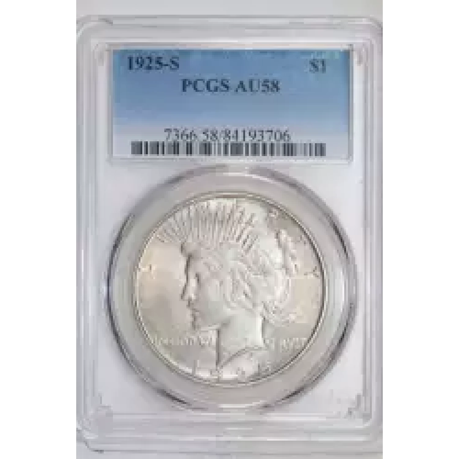 504762 | 1925-AU-58 Peace Silver Dollar PCGS AU-58 | PCGS | AU-58 | Sold: 27/03/2010 | $75 |