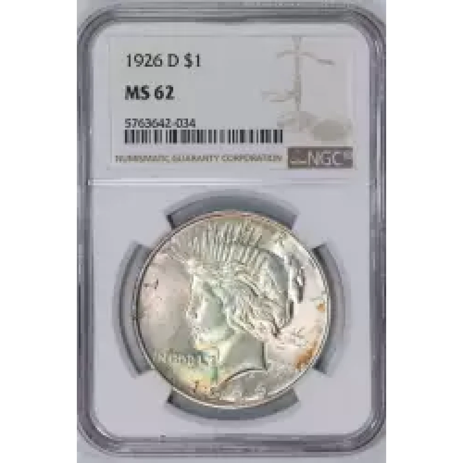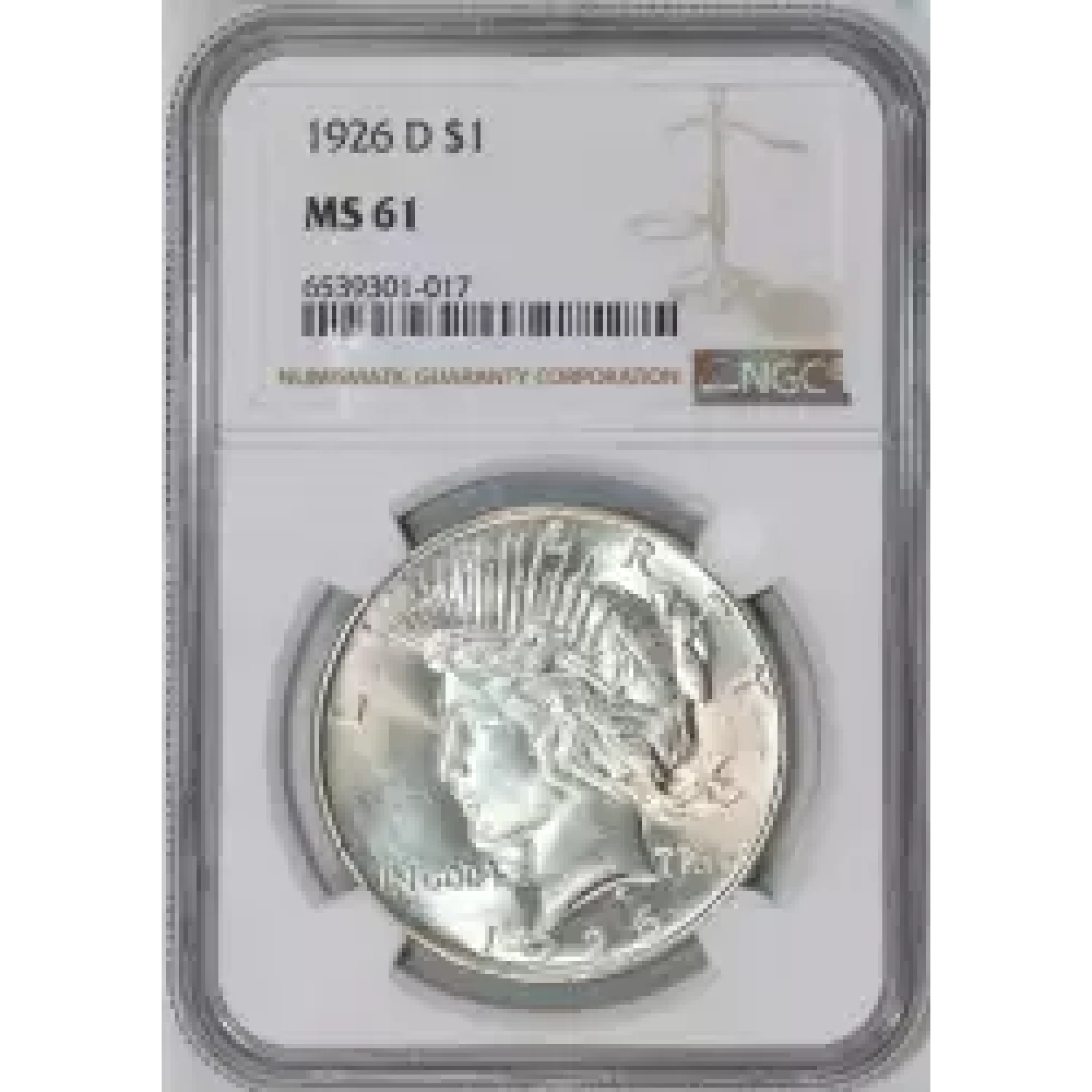 500771 | 1926-D Peace Silver Dollar NGC MS-61 | NGC | MS-61 | Sold: 01/03/2022 | $195 |