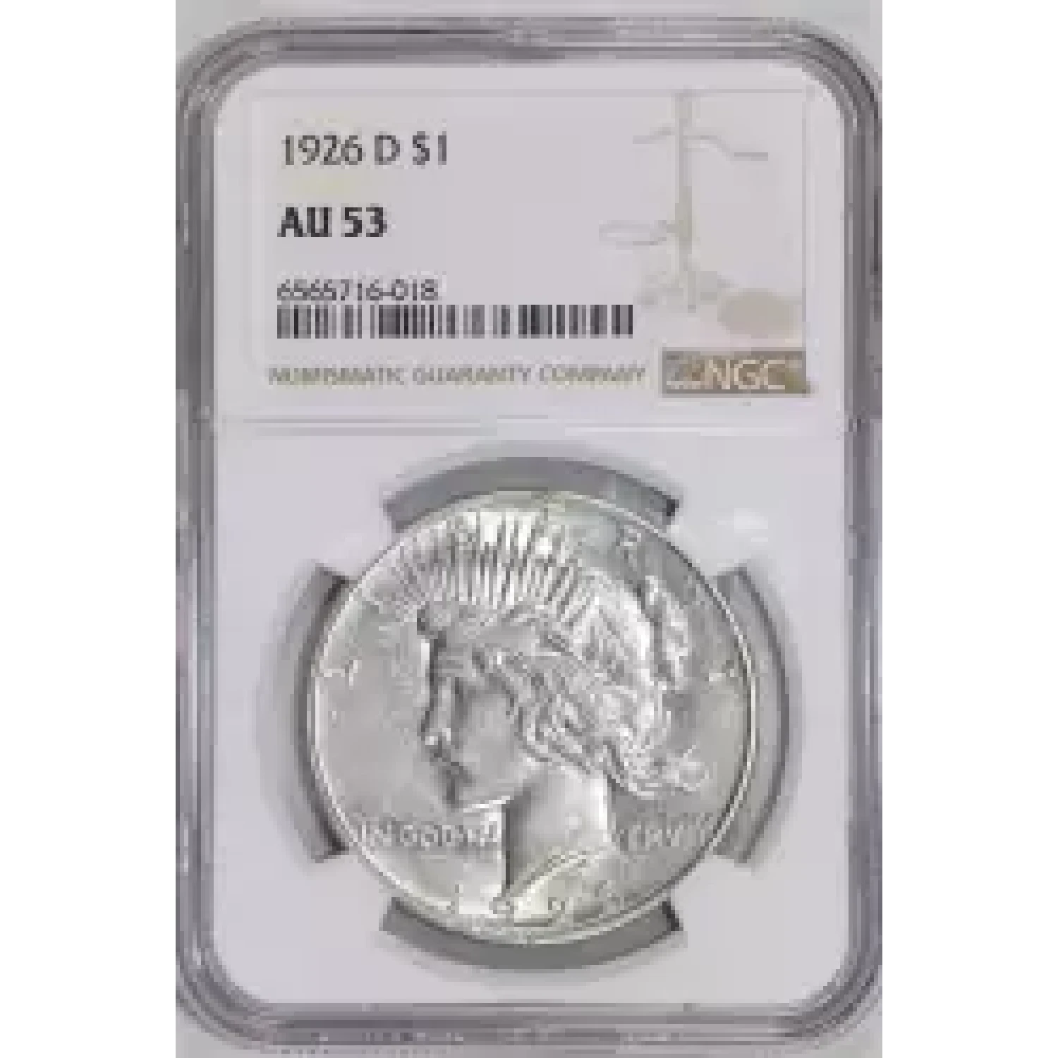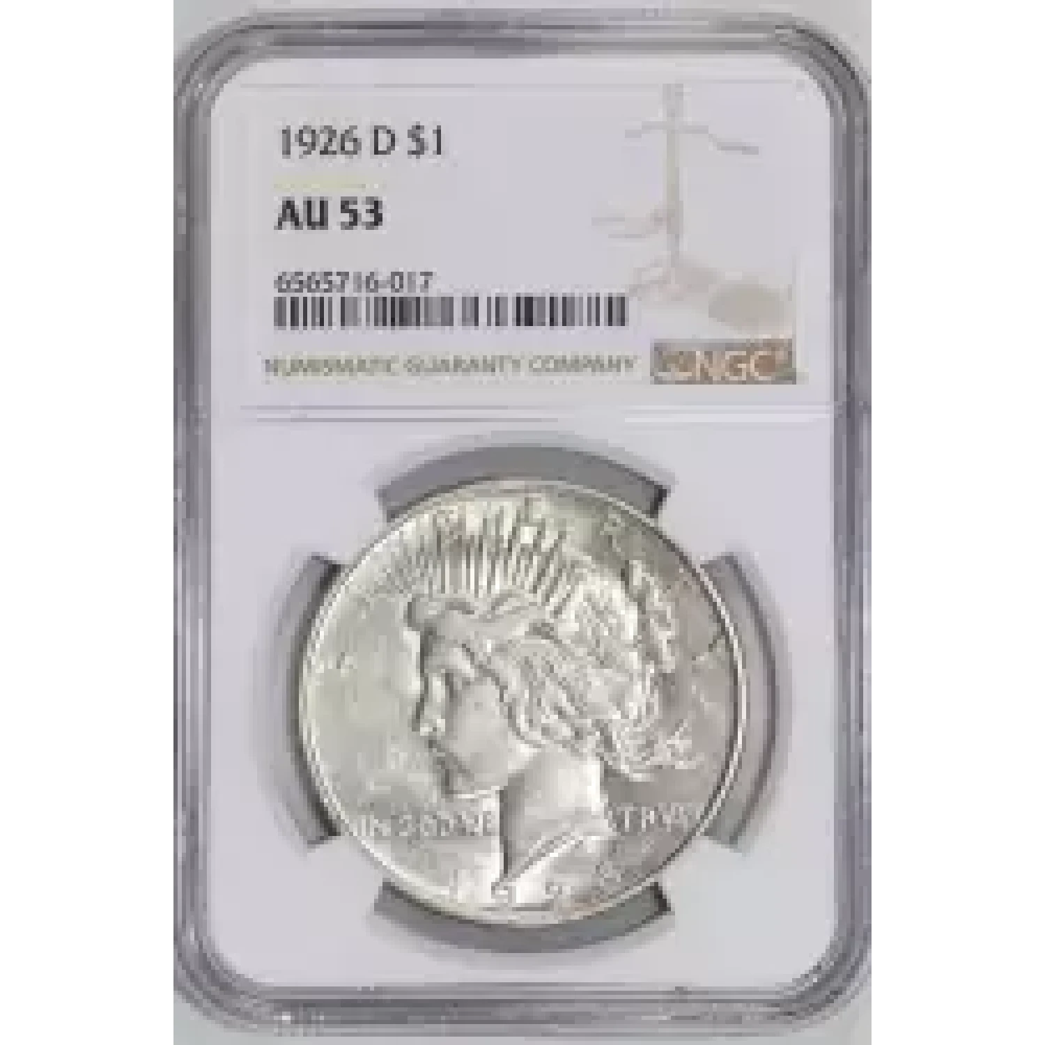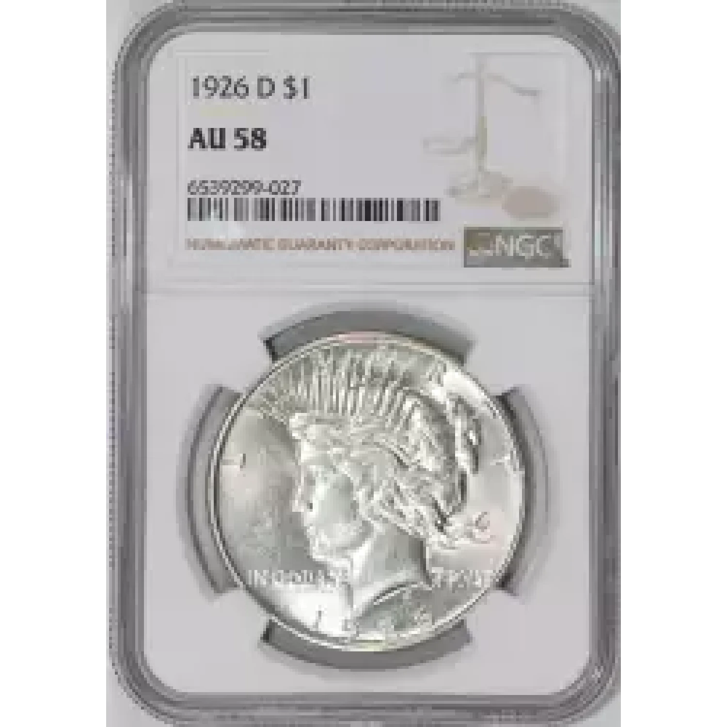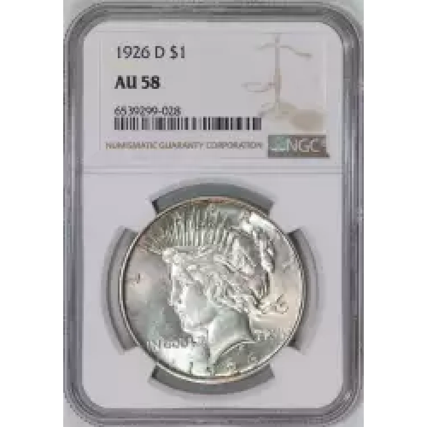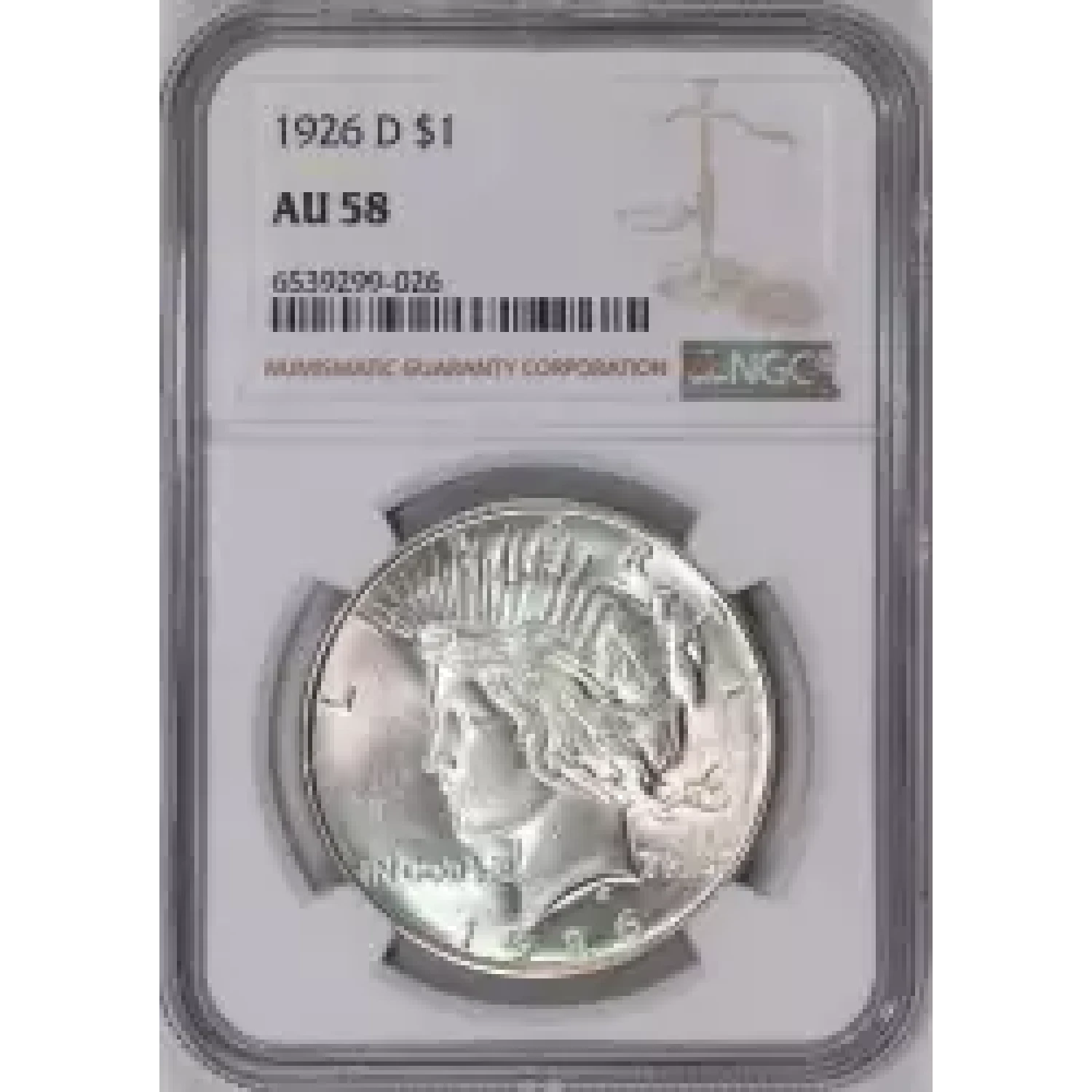 500772 | 1926-D Peace Silver Dollar NGC AU-58 | NGC | AU-58 | Sold: 01/03/2022 | $125 |