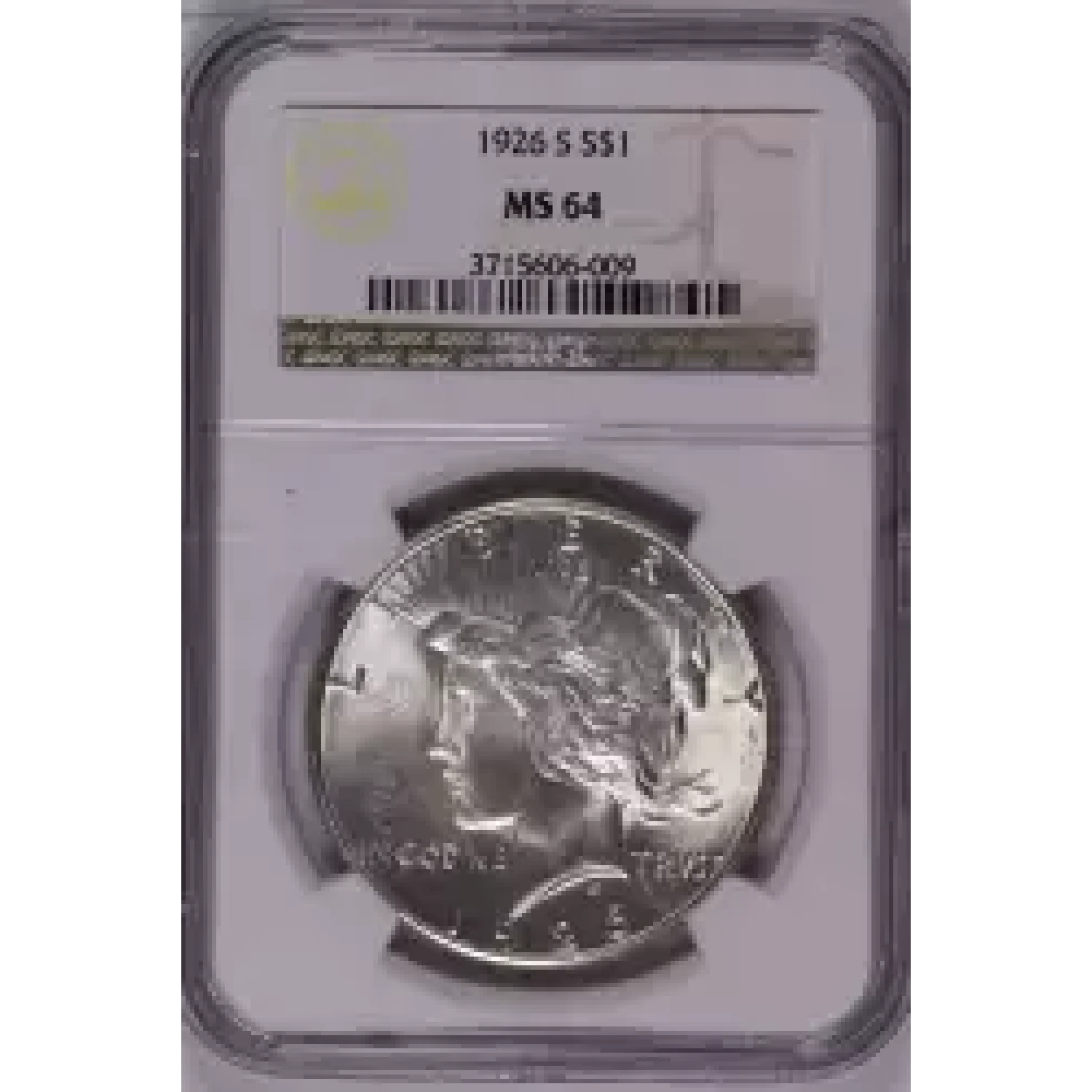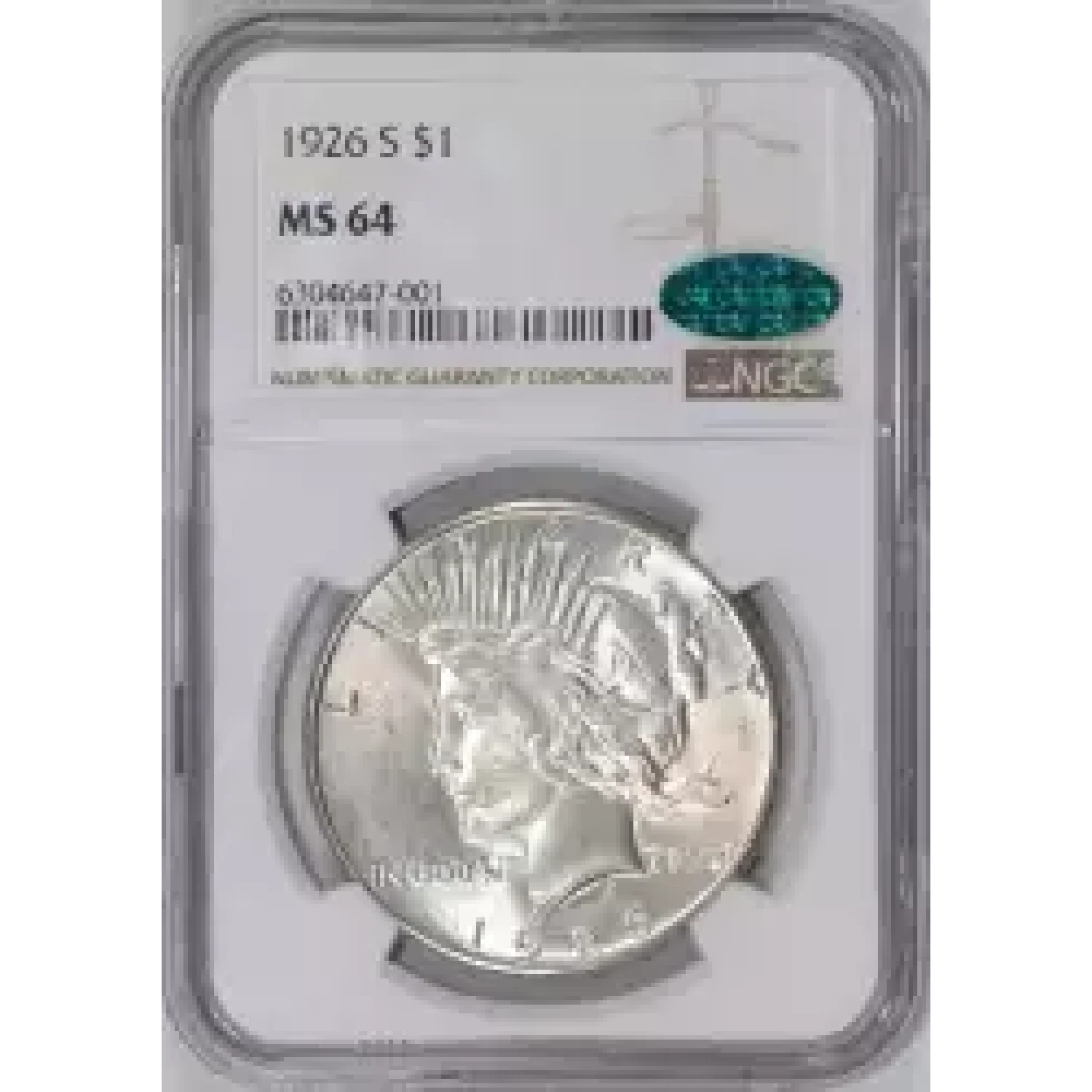 500775 | 1926-S Peace Silver Dollar NGC MS-64 CAC | NGC | MS-64 | Sold: 01/03/2022 | $525 |