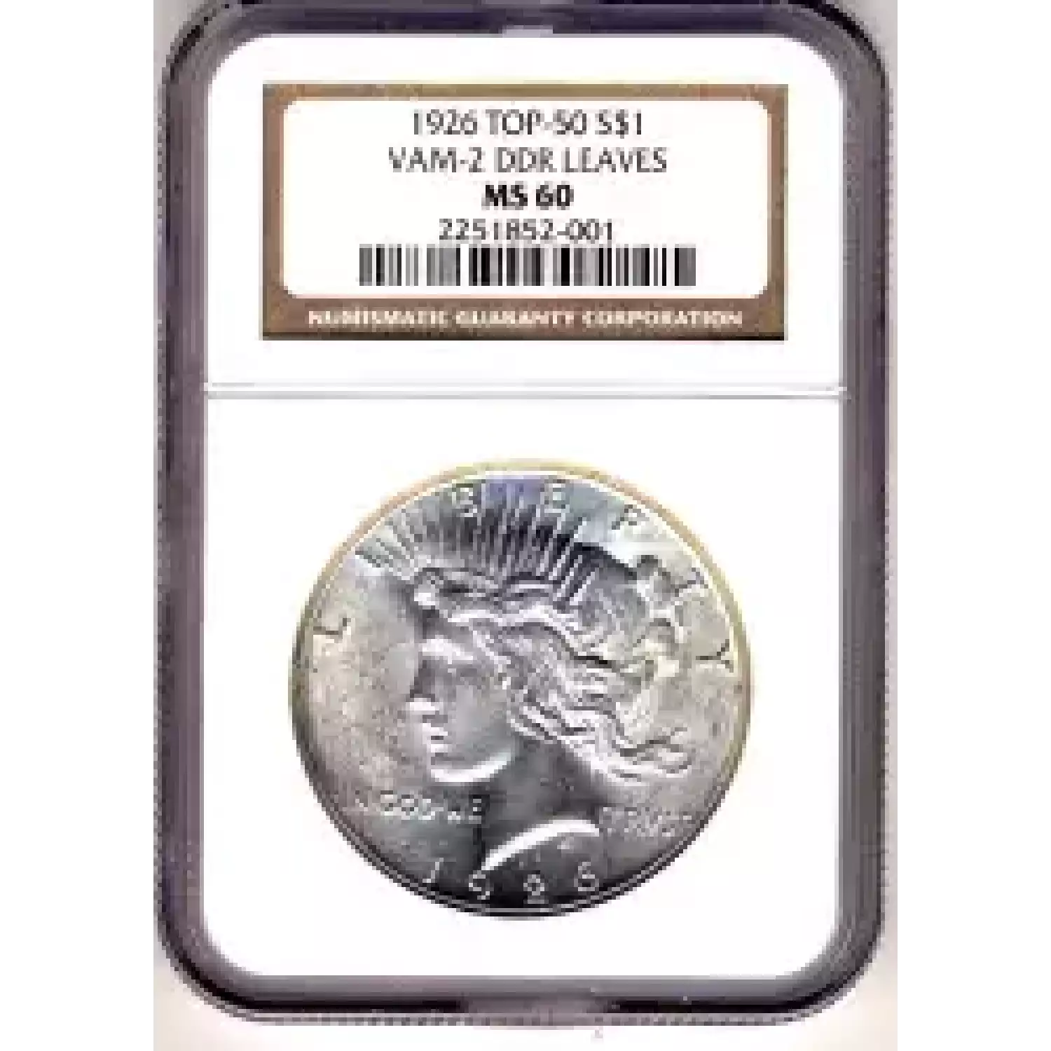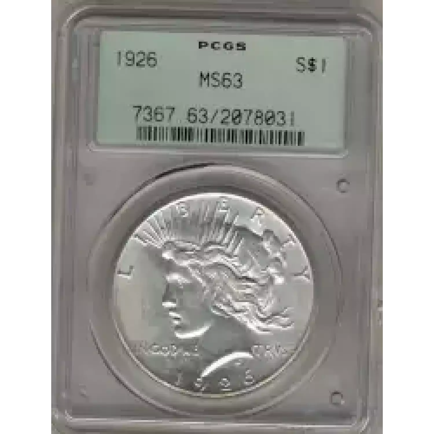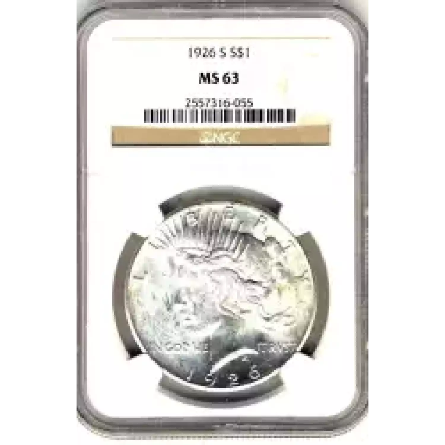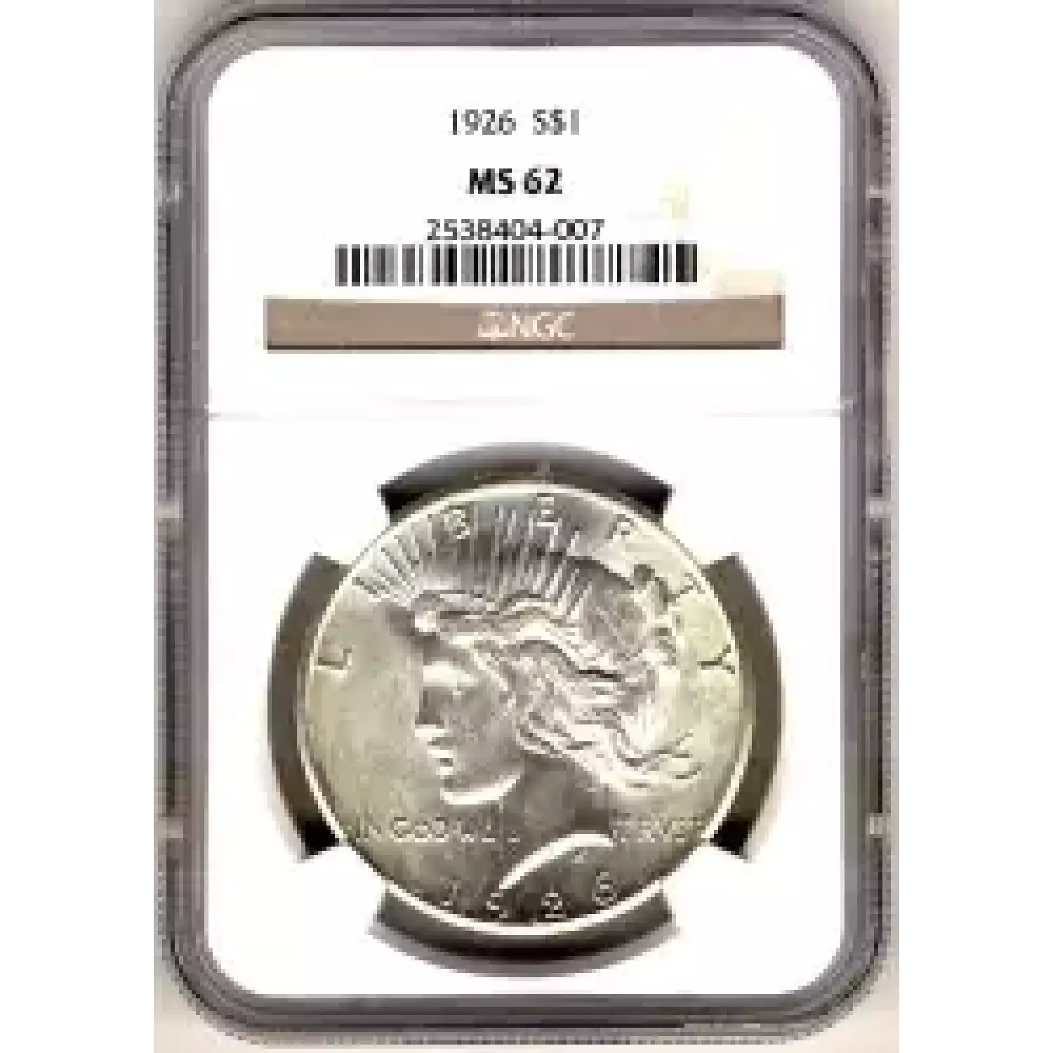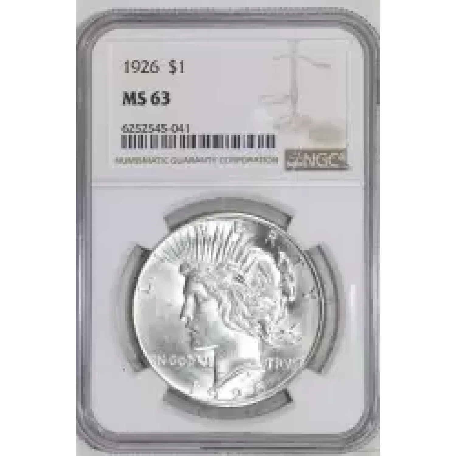 504775 | 1926-MS-62 Peace Silver Dollar NGC MS-62 | NGC | MS-62 | Sold: 04/09/2010 | $50 |