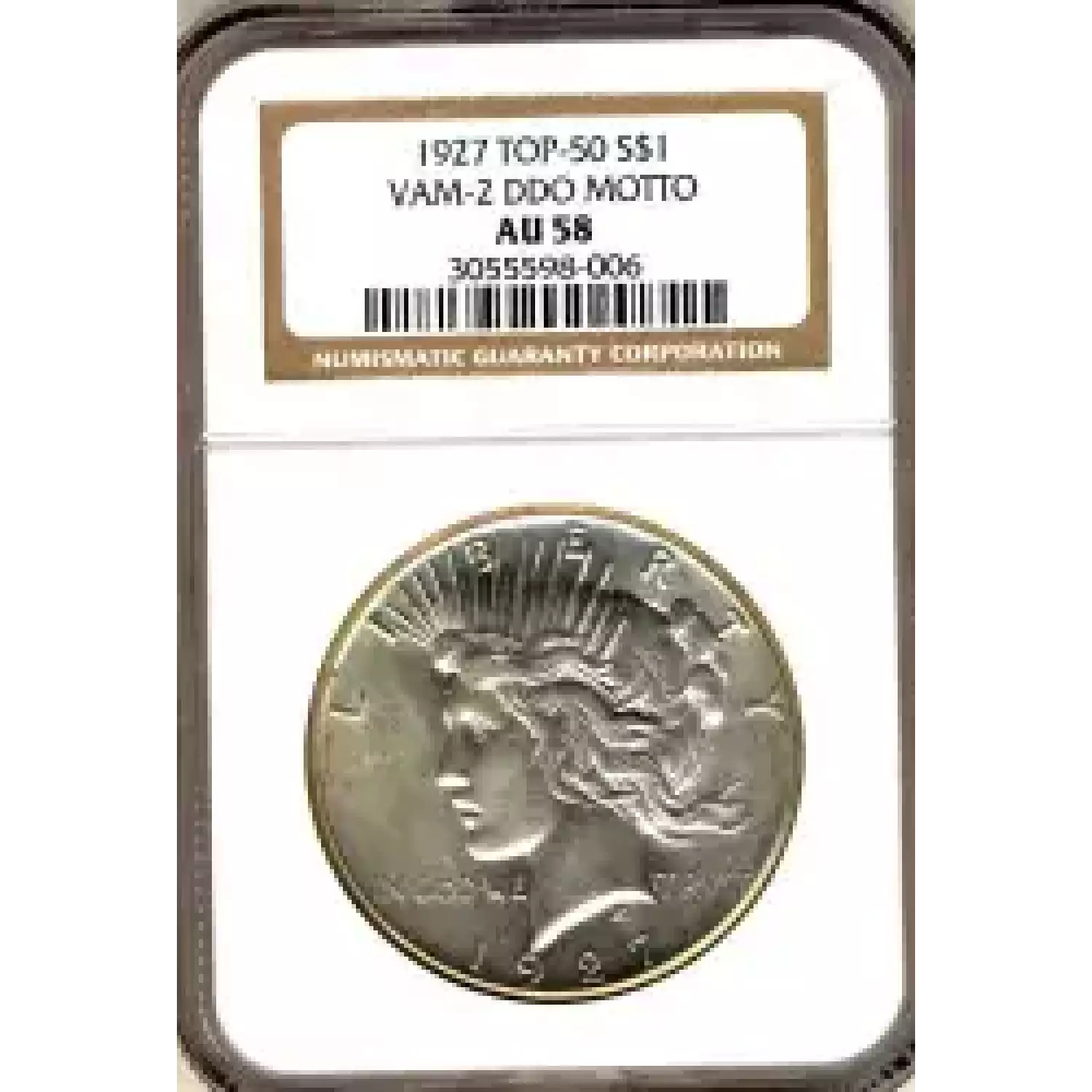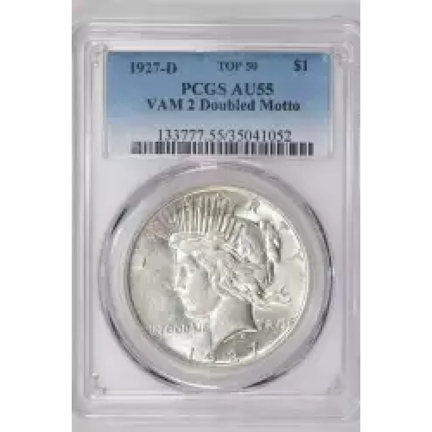 504500 | 1927-AU-50 Peace Silver Dollar ANACS AU-50 | ANACS | AU-50 | Sold: 24/11/2008 | $75 |