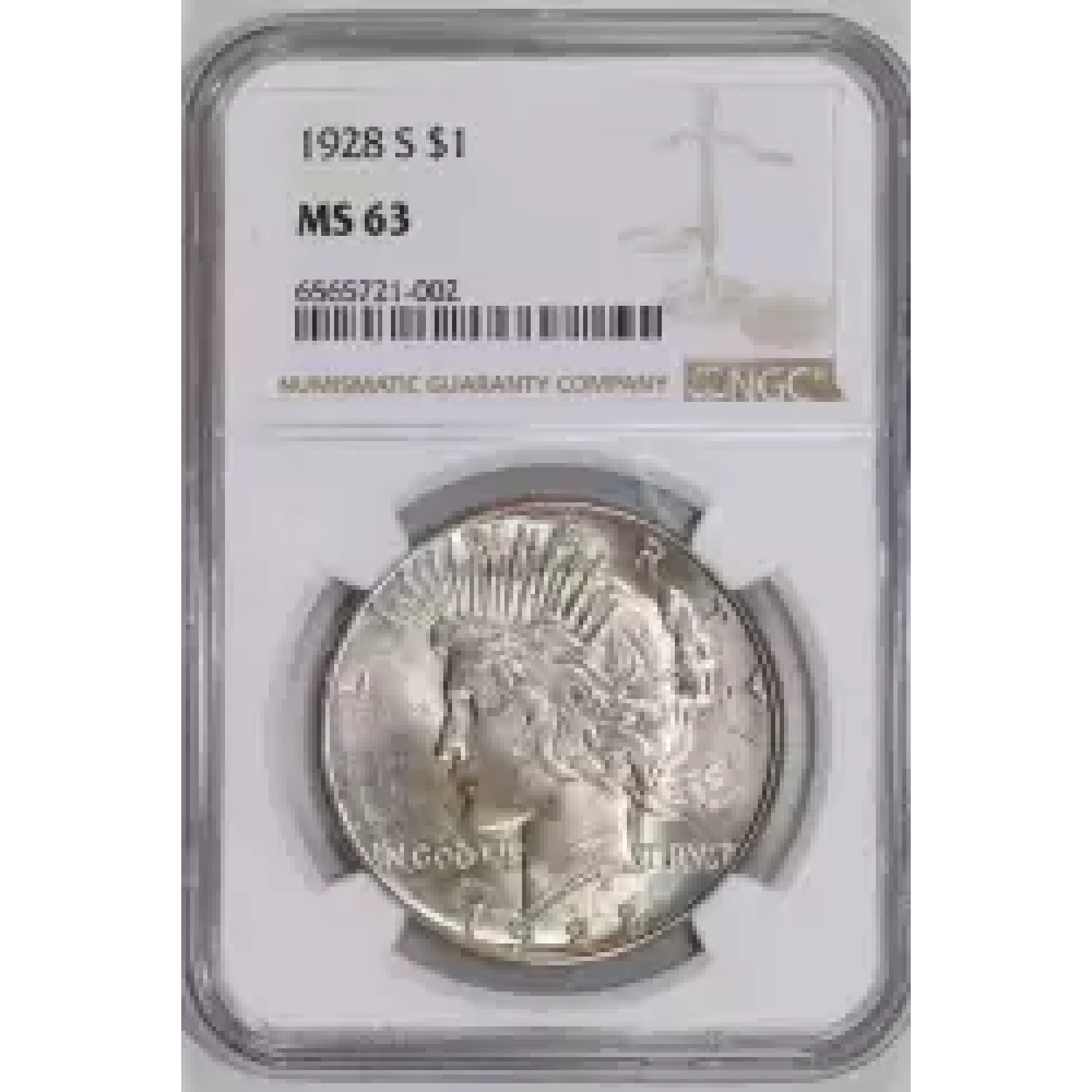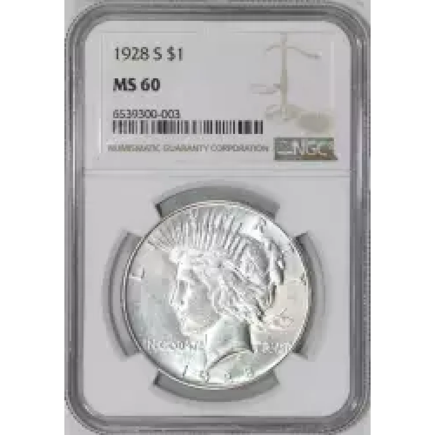 500776 | 1928-S Peace Silver Dollar NGC MS-60 | NGC | MS-60 | Sold: 01/03/2022 | $300 |