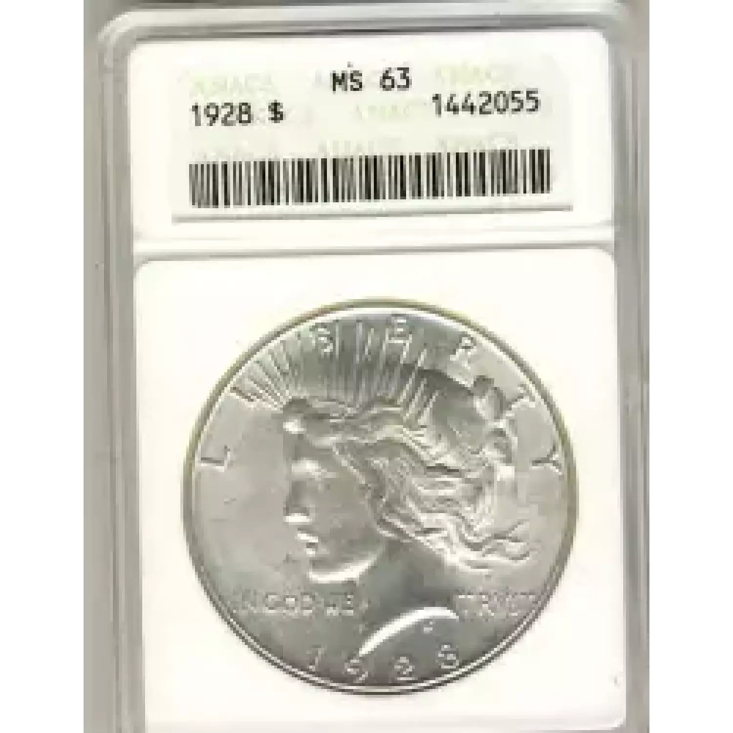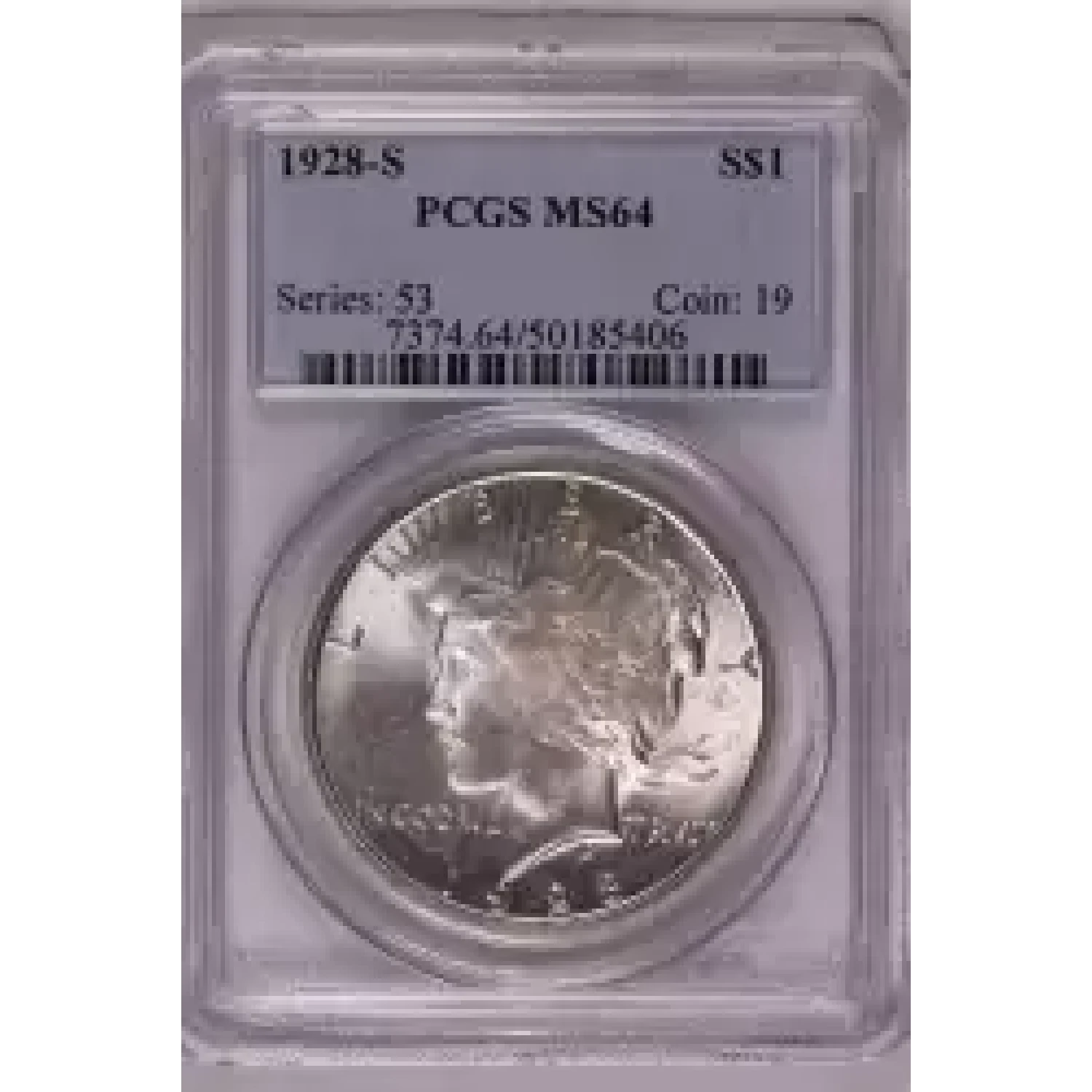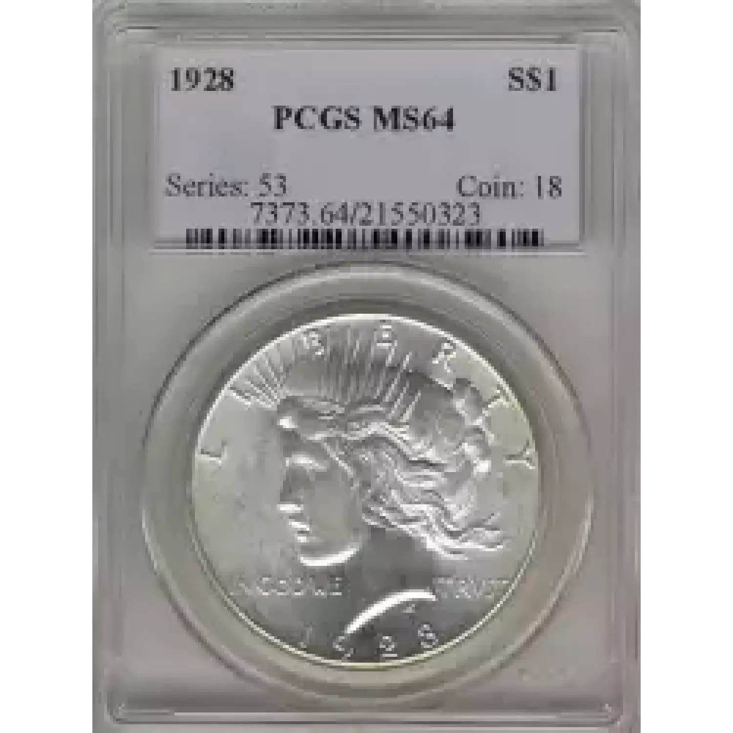 504545 | 1928-MS-64 Peace Silver Dollar PCGS MS-64 | PCGS | MS-64 | Sold: 03/06/2012 | $1,025 |