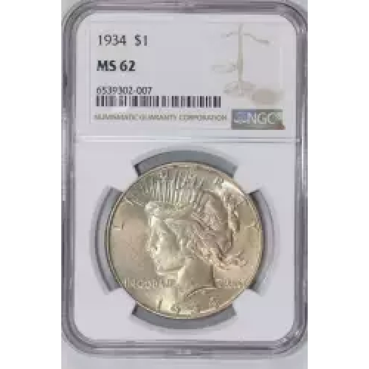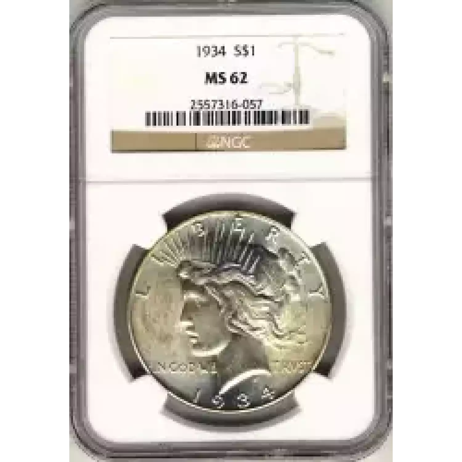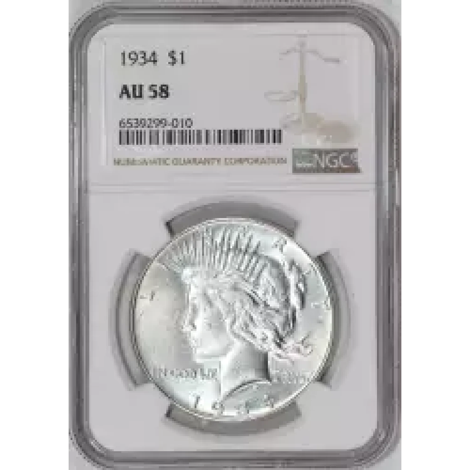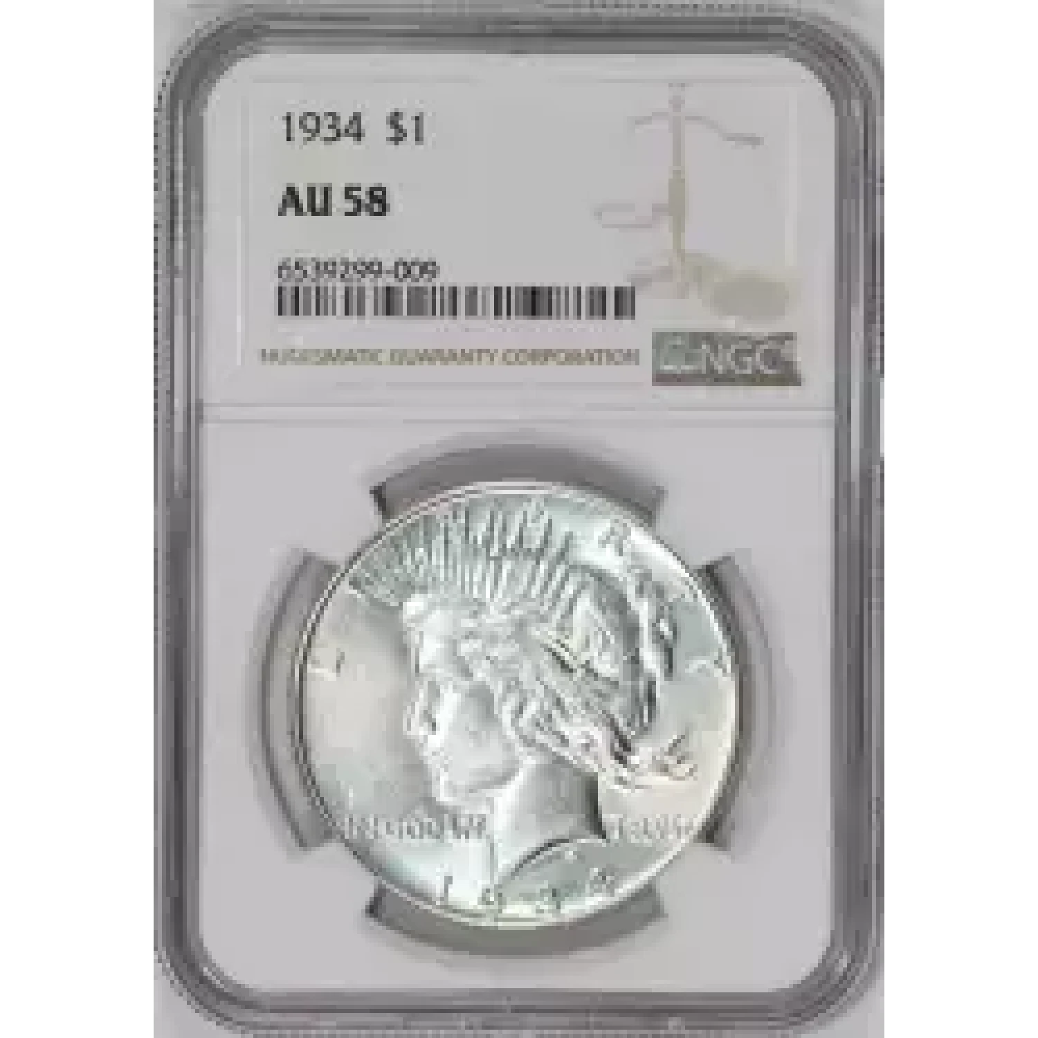 500777 | 1934 Peace Silver Dollar NGC AU-58 | NGC | AU-58 | Sold: 01/03/2022 | $120 |