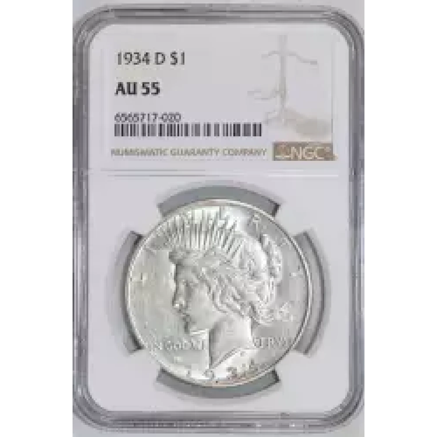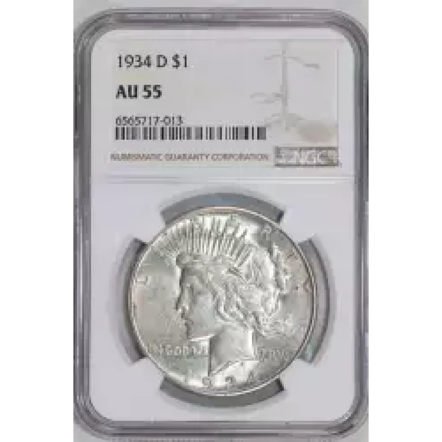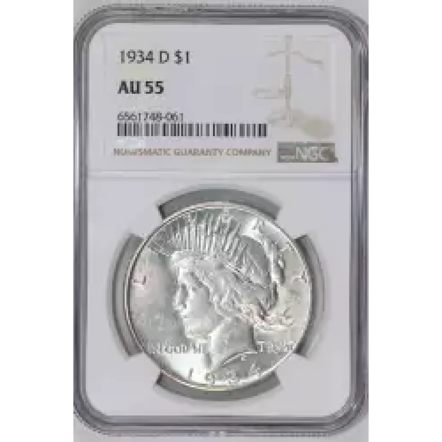 500877 | 1934-D Peace Silver Dollar NGC AU-58 | NGC | AU-58 | Sold: 10/05/2022 | $135 |