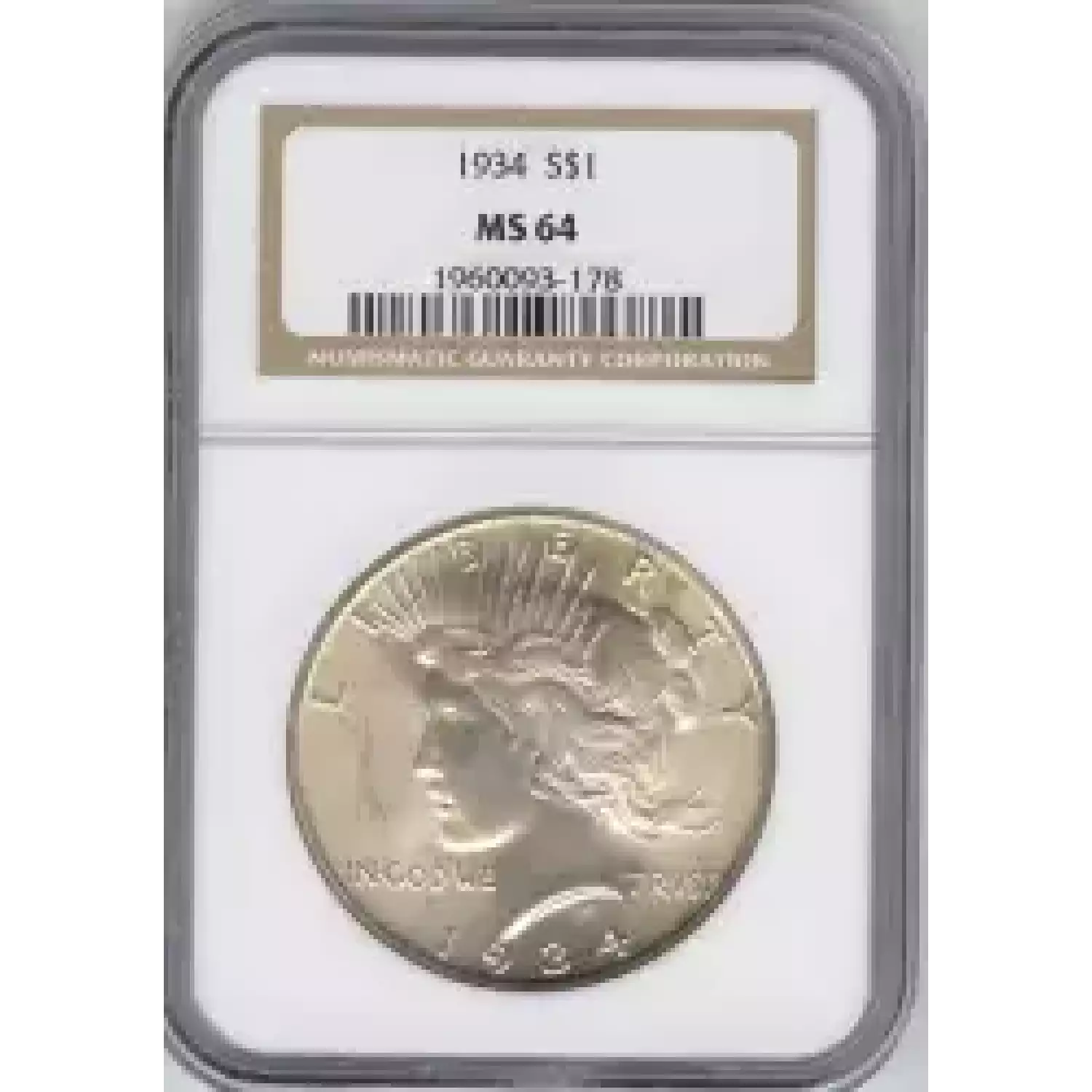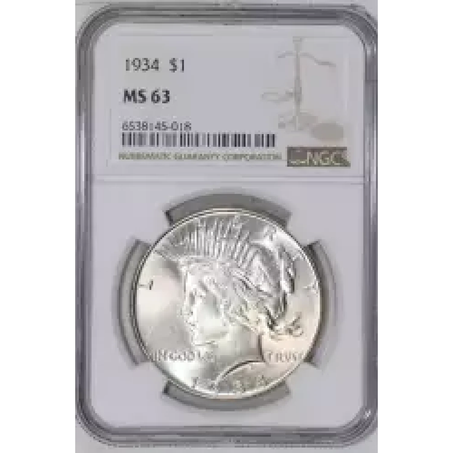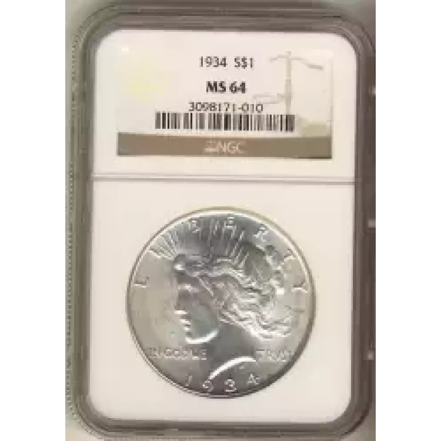 505164 | 1934-MS-64 Peace Silver Dollar NGC MS-64 | NGC | MS-64 | Sold: 15/06/2010 | $750 |