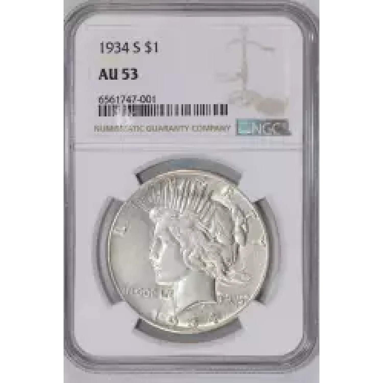 500783 | 1934 Peace Silver Dollar NGC AU-53 | NGC | AU-53 | Sold: 02/03/2022 | $85 |