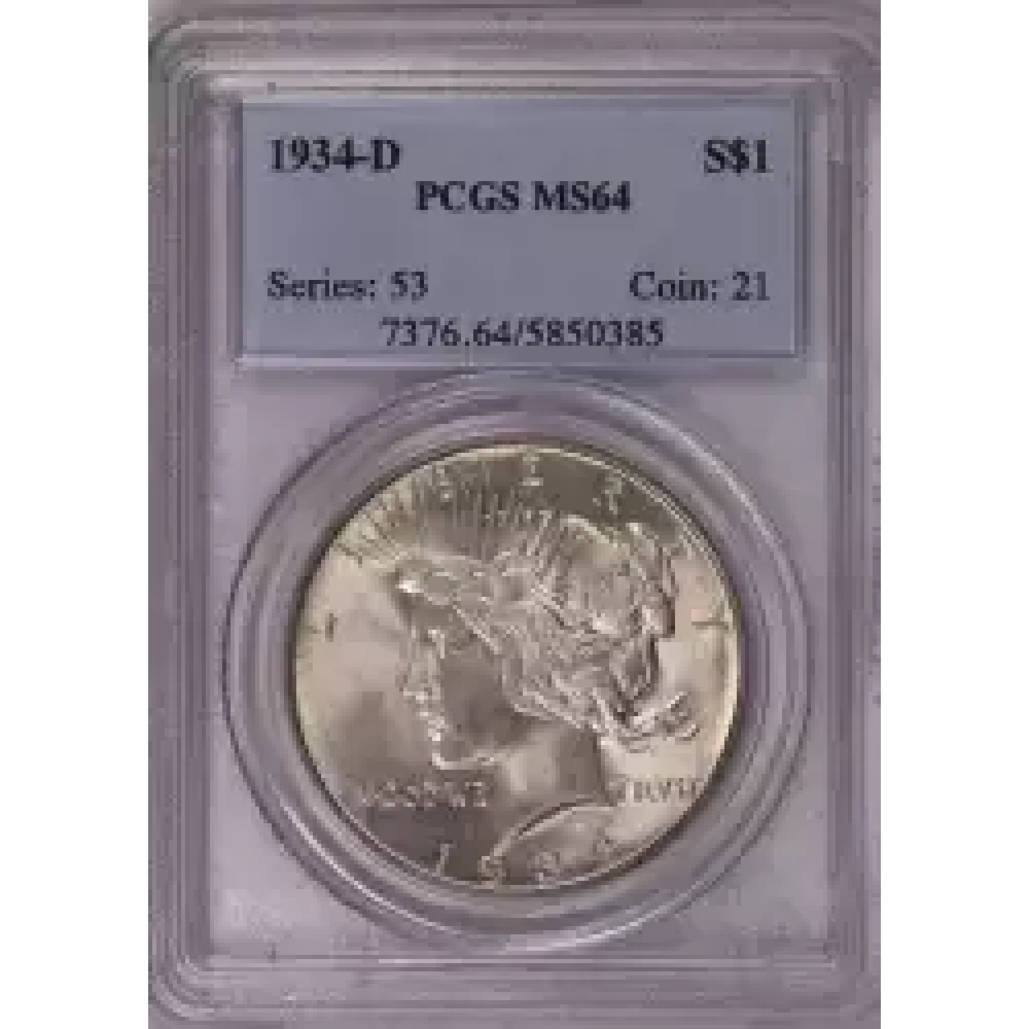 500591 | 1934-D Peace Silver Dollar PCGS MS-64 | PCGS | MS-64 | Sold: 15/02/2022 | $500 |