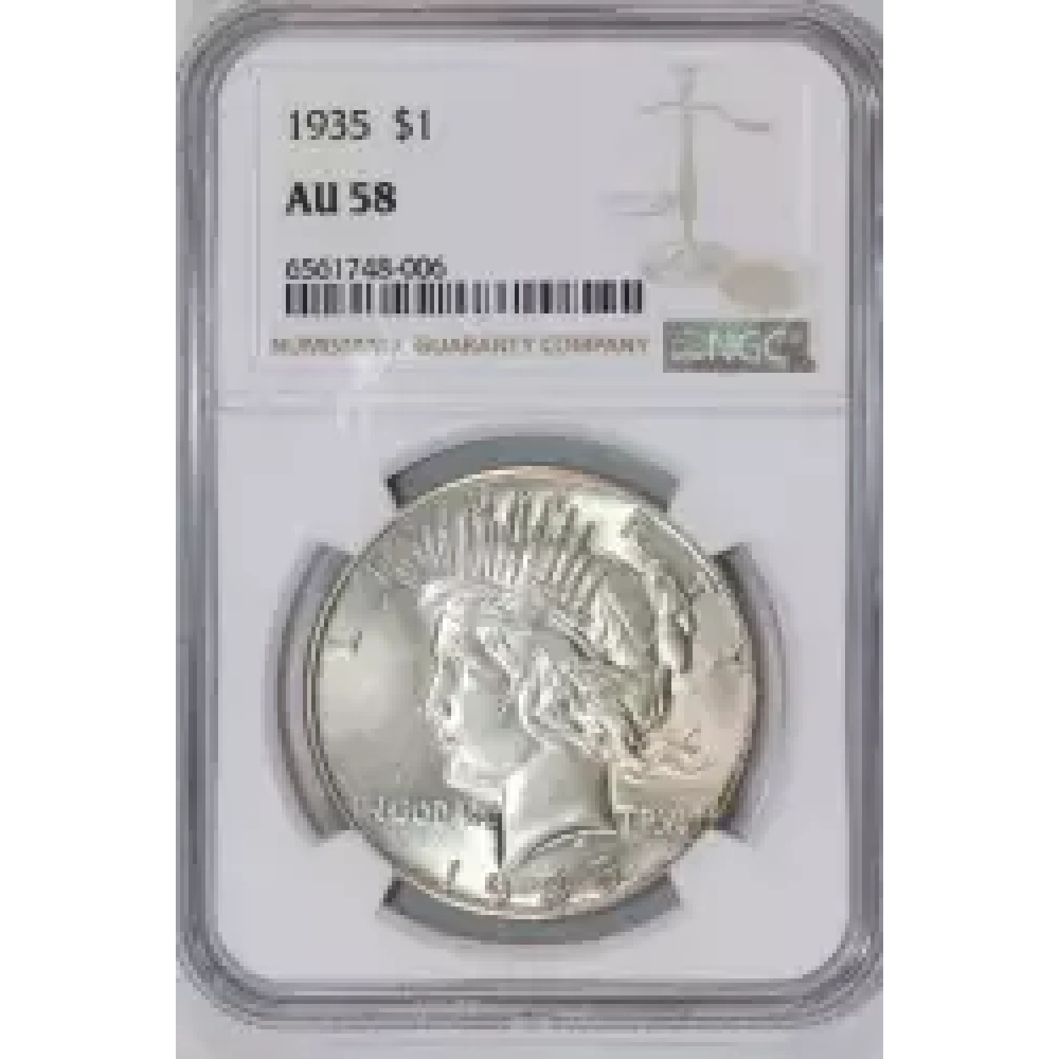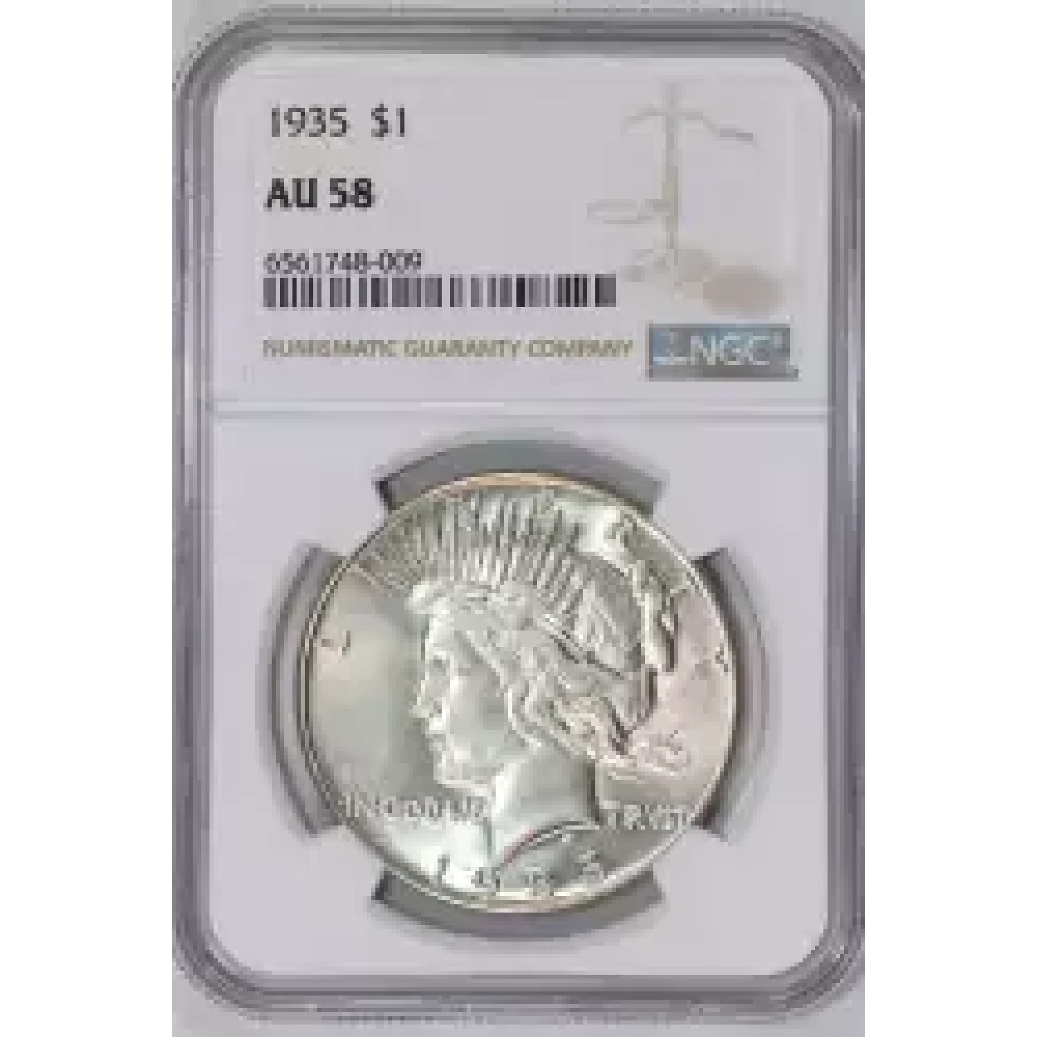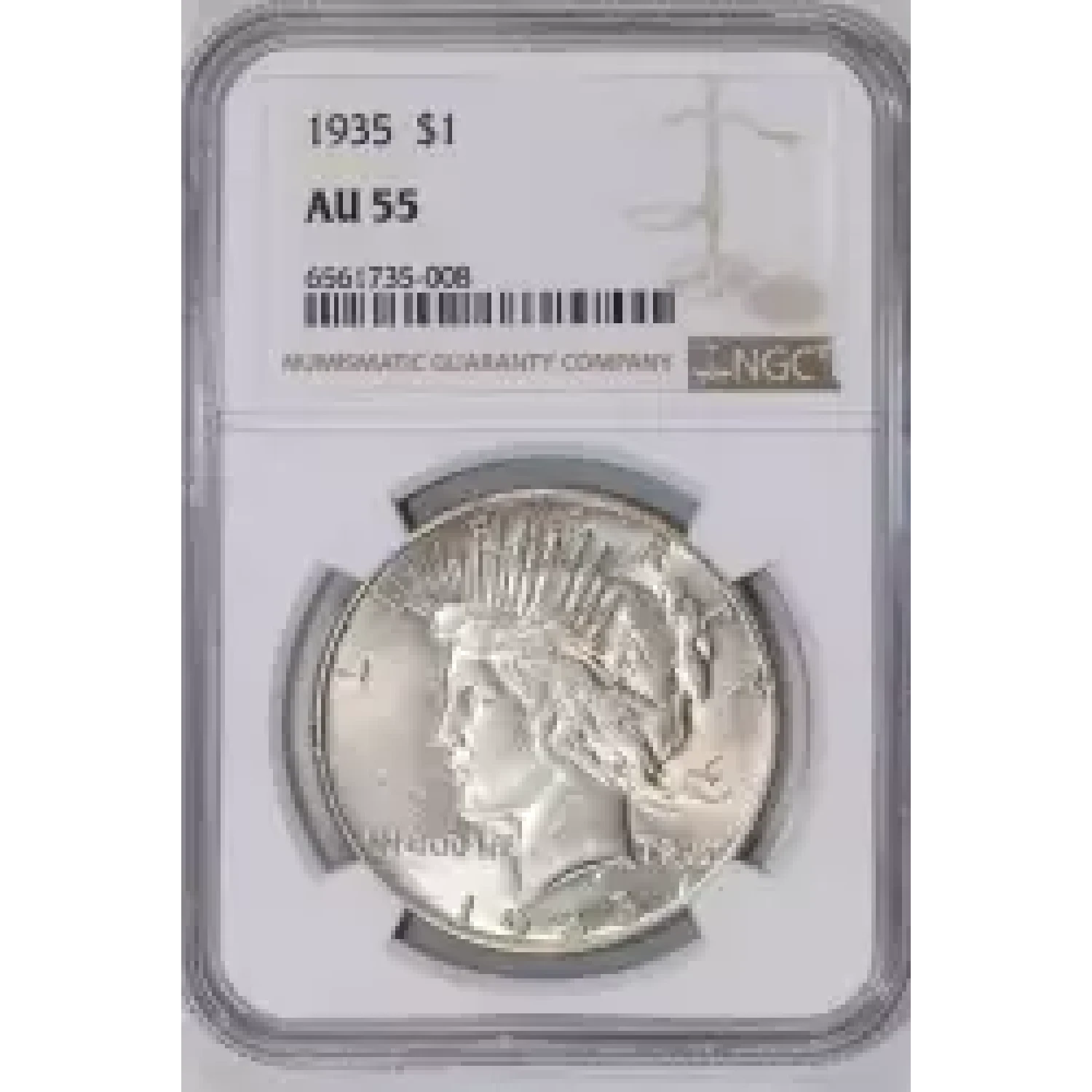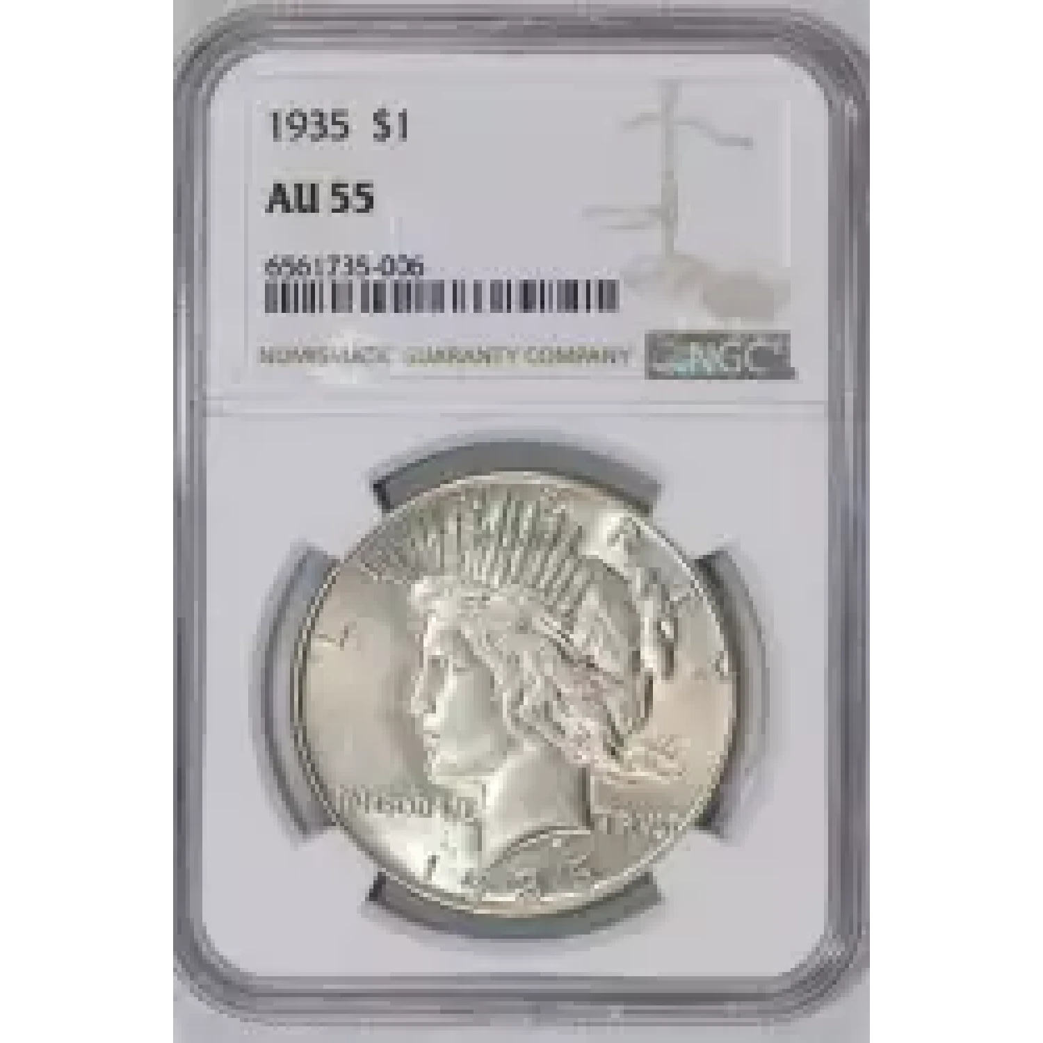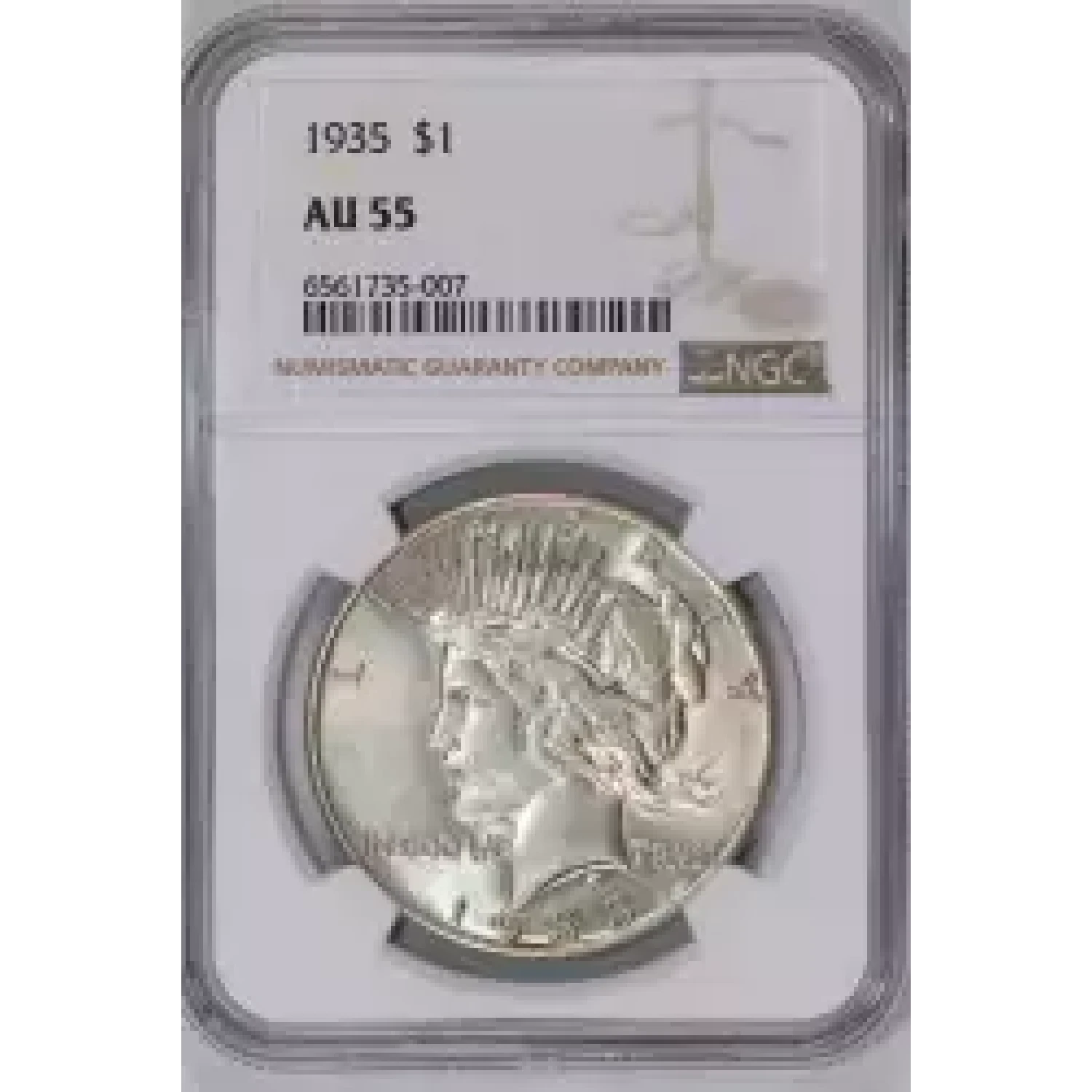 505454 | 1935-AU-55 Peace Silver Dollar PCGS AU-55 | PCGS | AU-55 | Sold: 04/09/2010 | $45 |