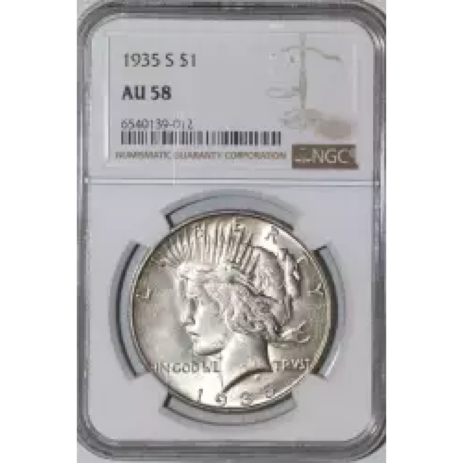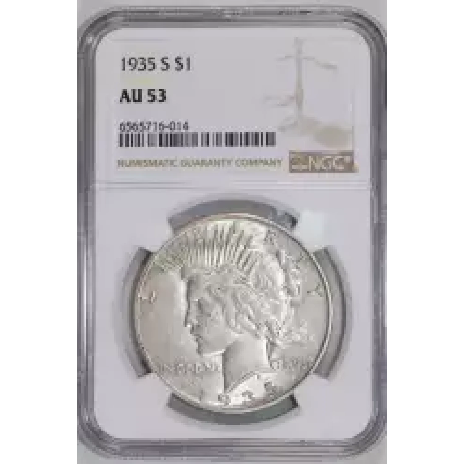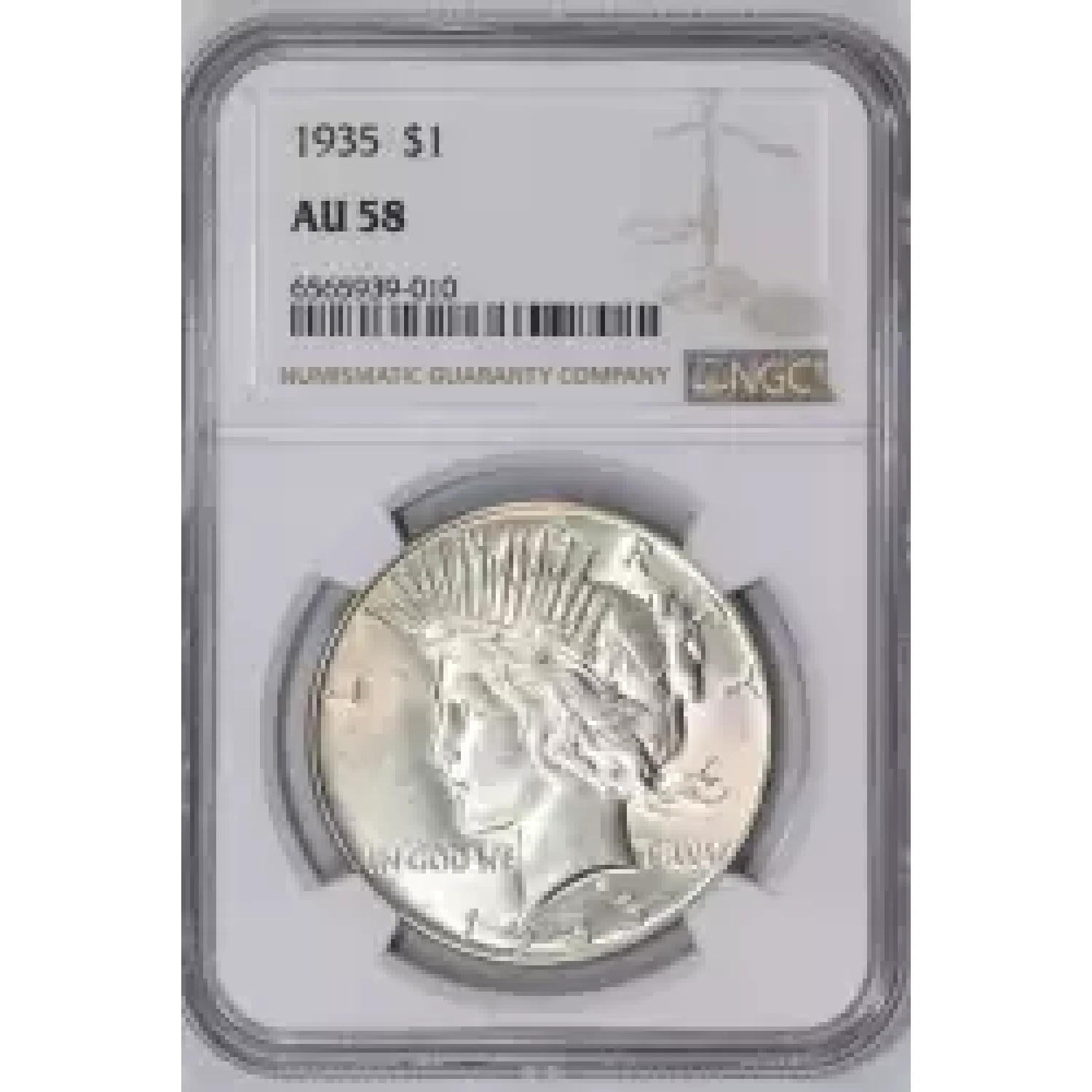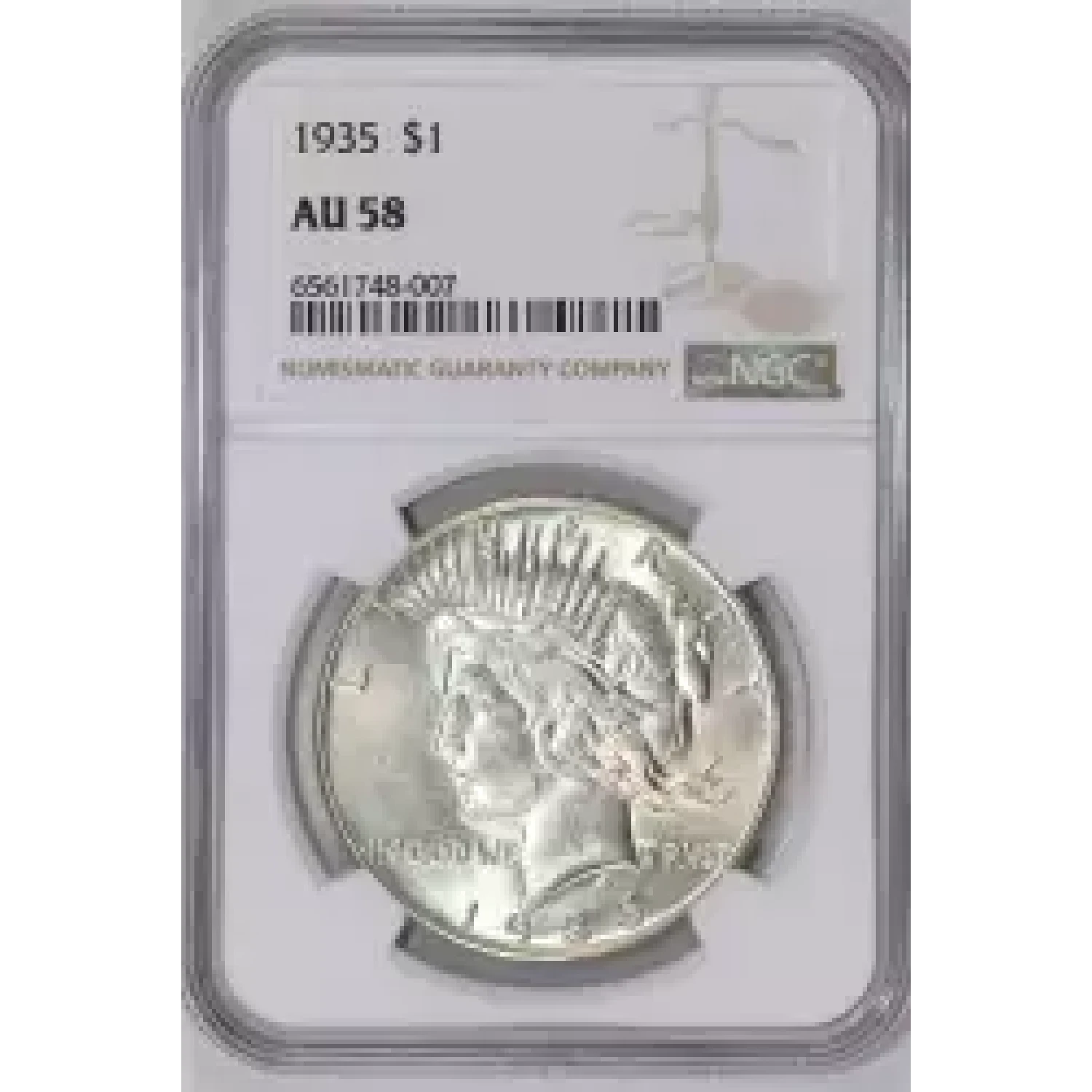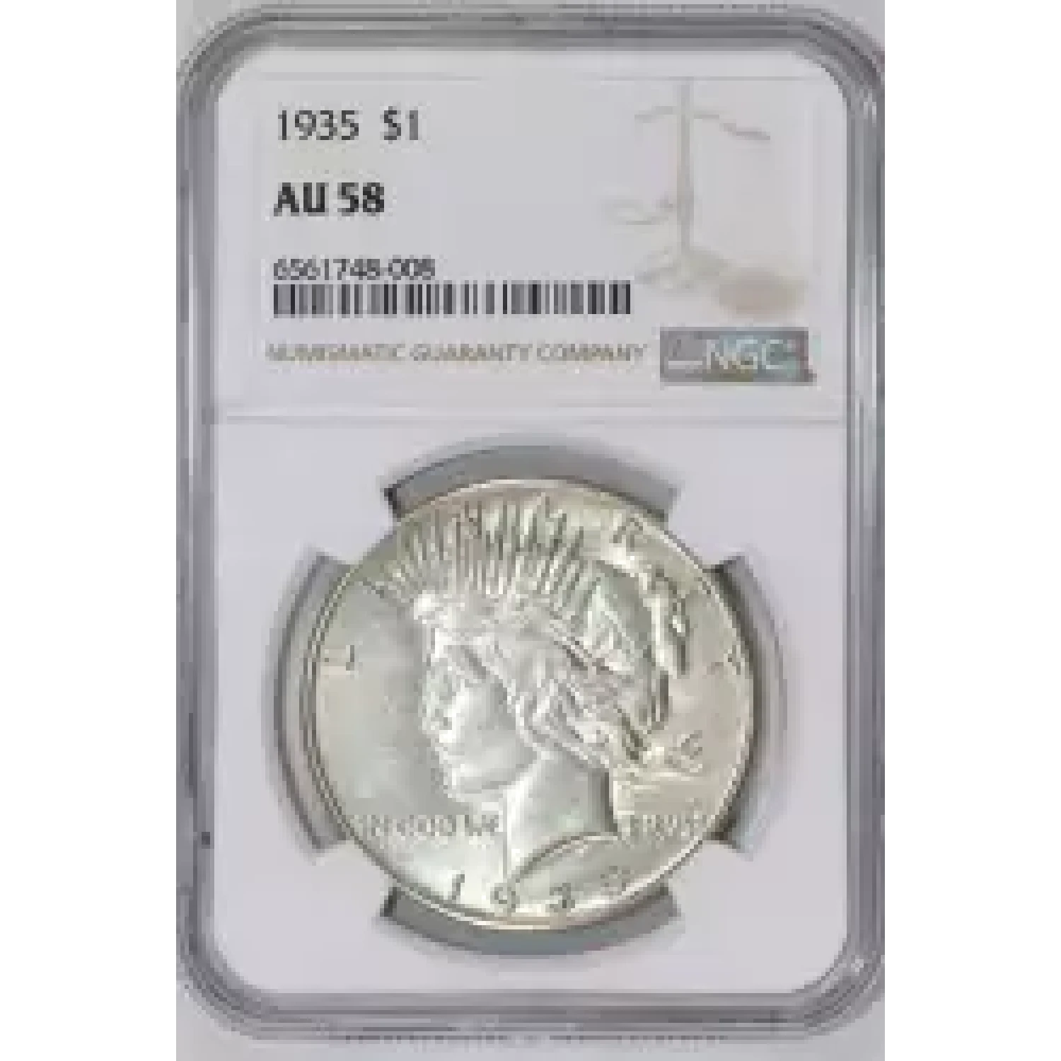 505454 | 1935-AU-55 Peace Silver Dollar PCGS AU-55 | PCGS | AU-55 | Sold: 04/09/2010 | $45 |