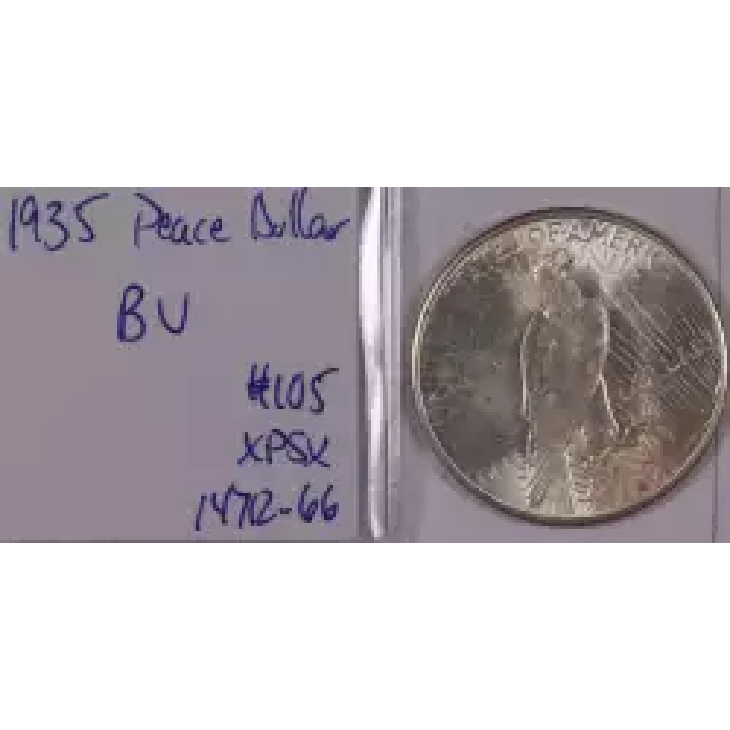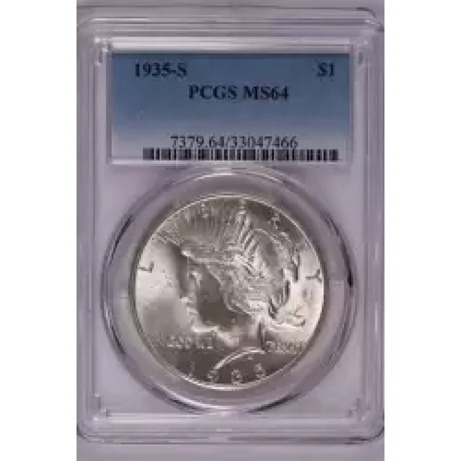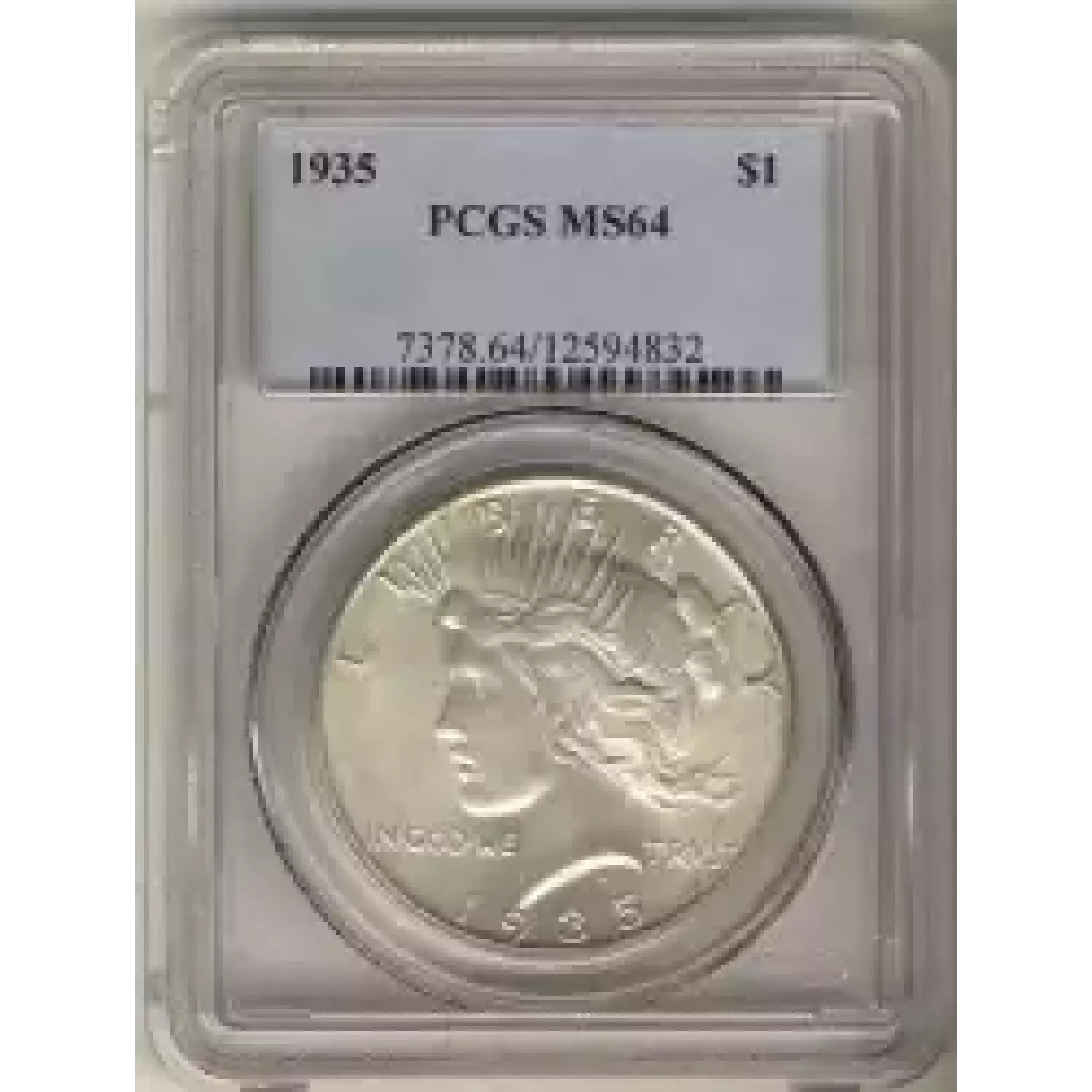 504750 | 1935-MS-64 Peace Silver Dollar PCGS MS-64 | PCGS | MS-64 | Sold: 09/04/2009 | $200 |