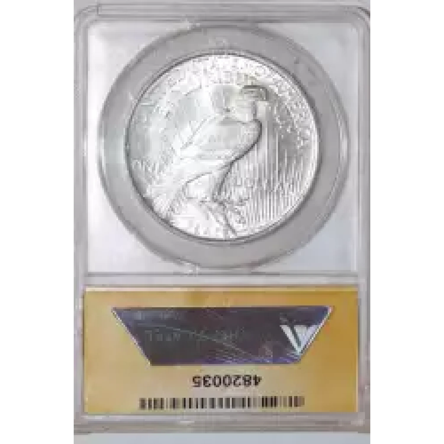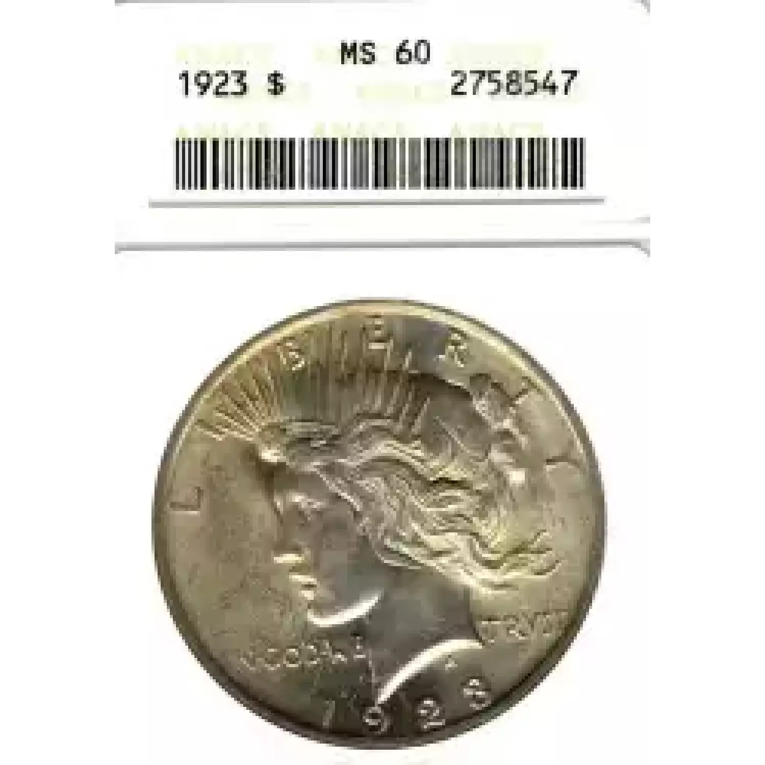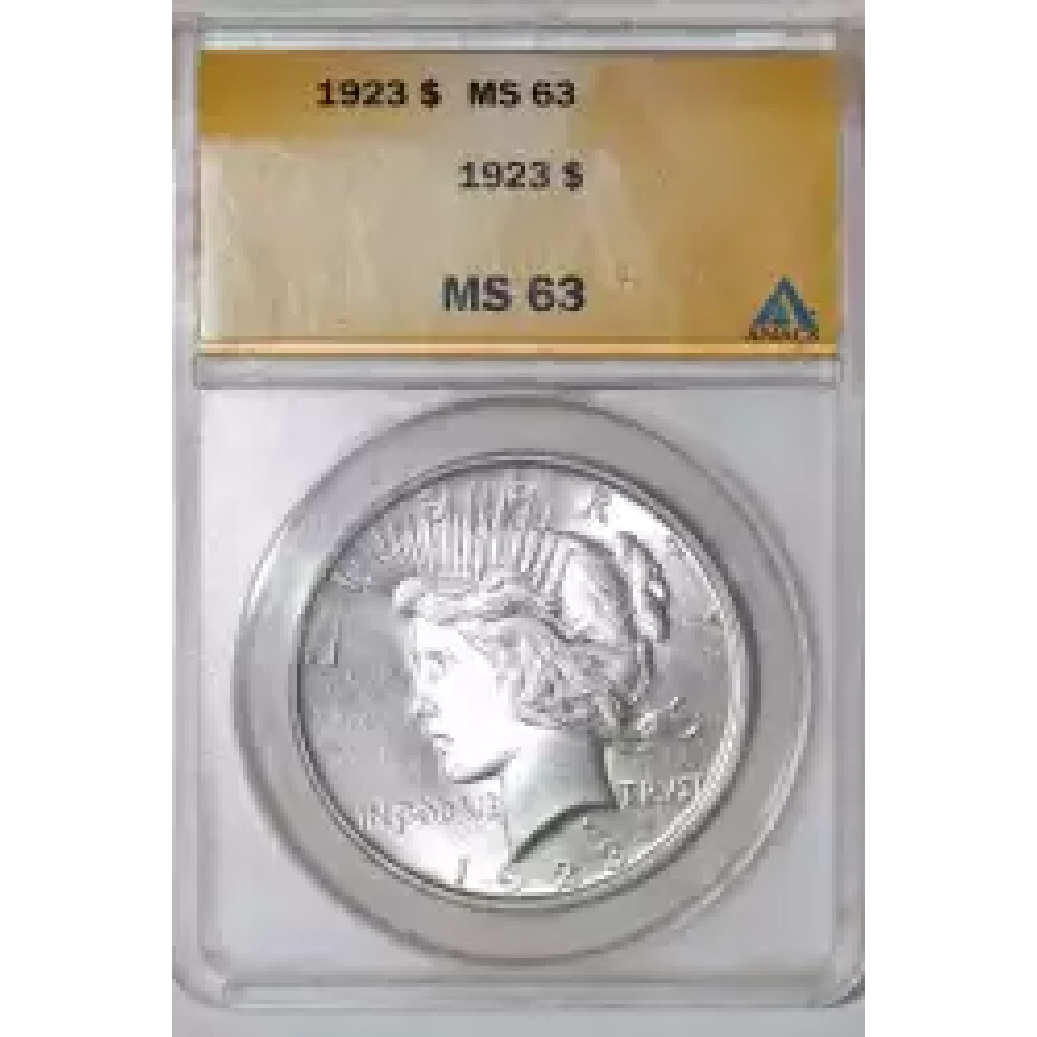 504586 | 1923-MS-62 Peace Silver Dollar ANACS MS-62 | ANACS | MS-62 | Sold: 03/04/2009 | $75 |