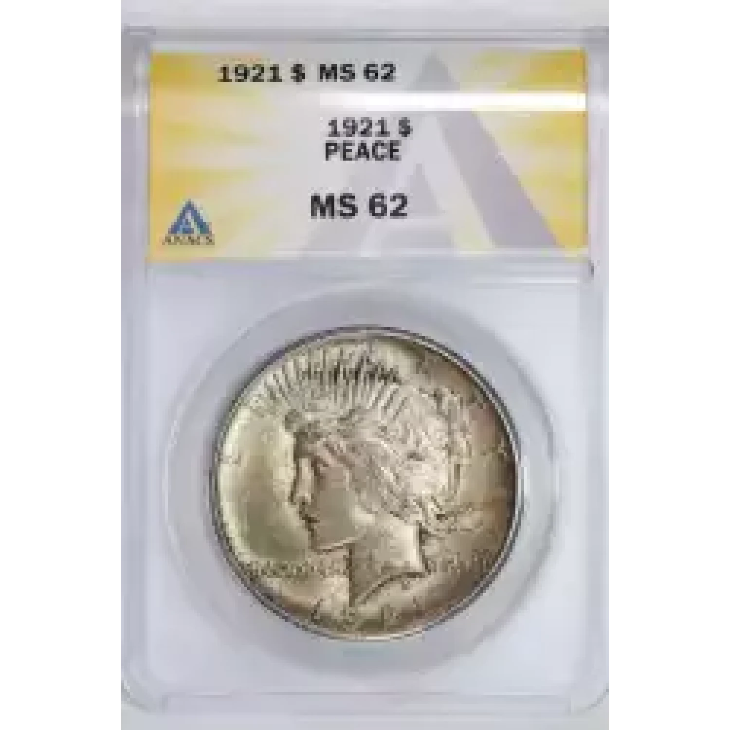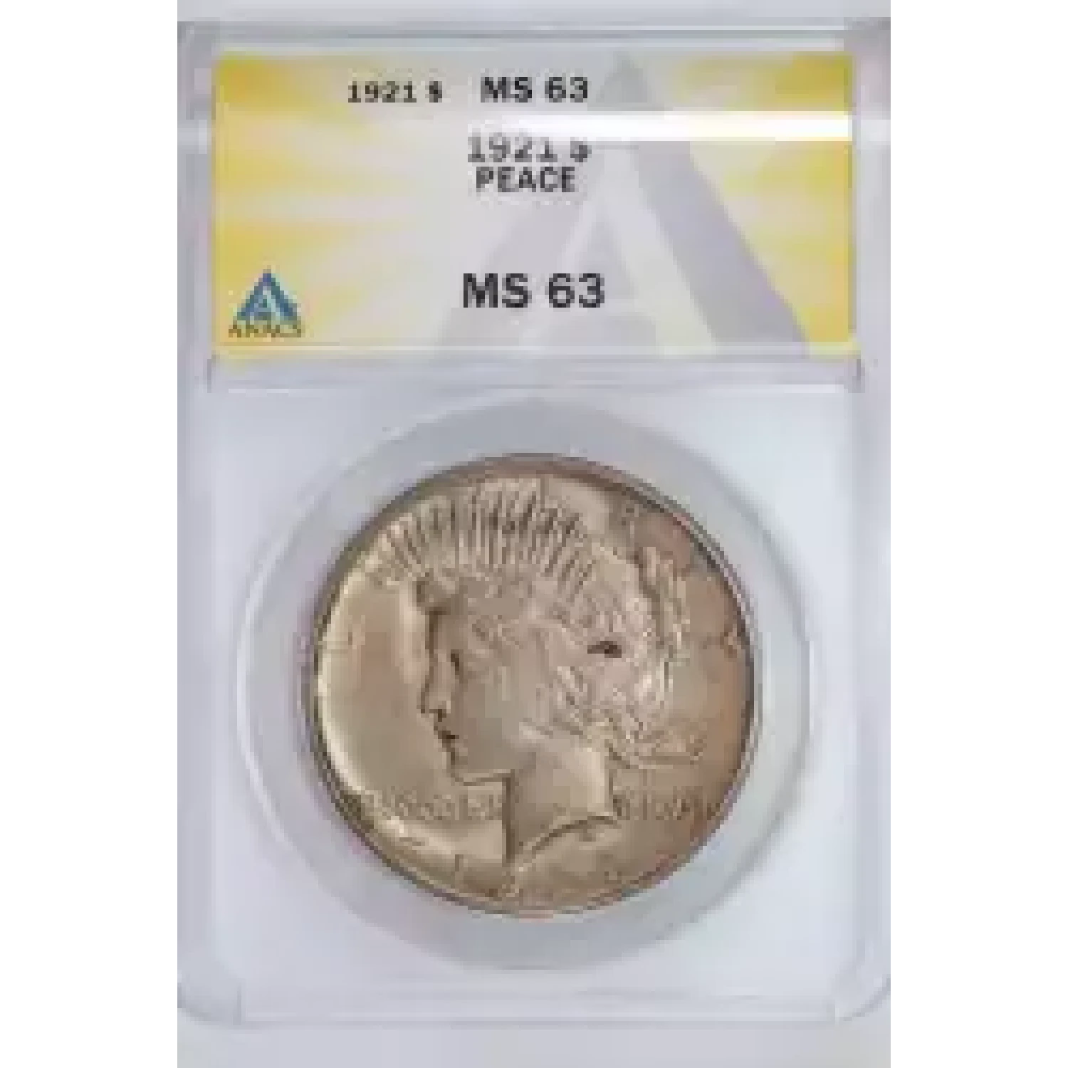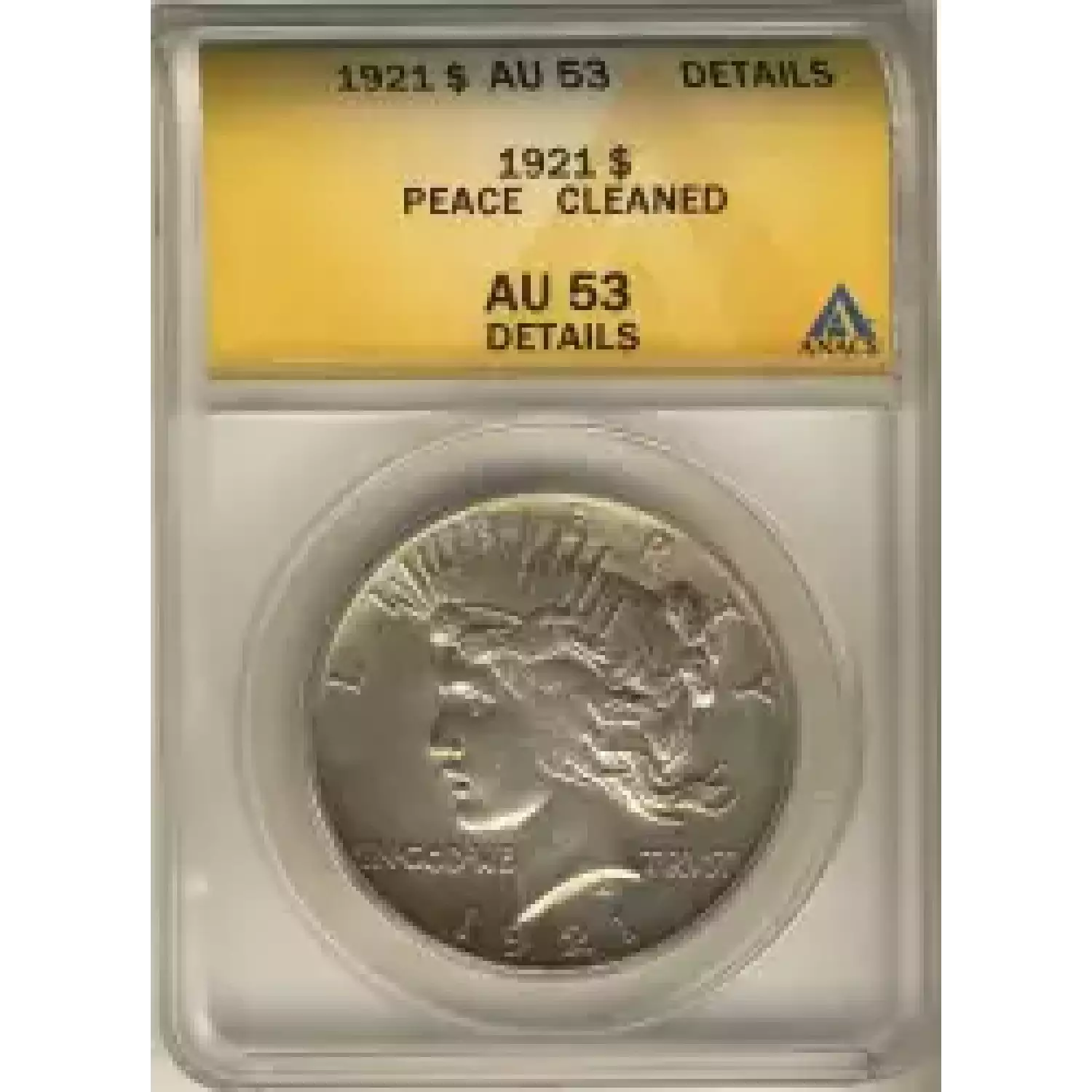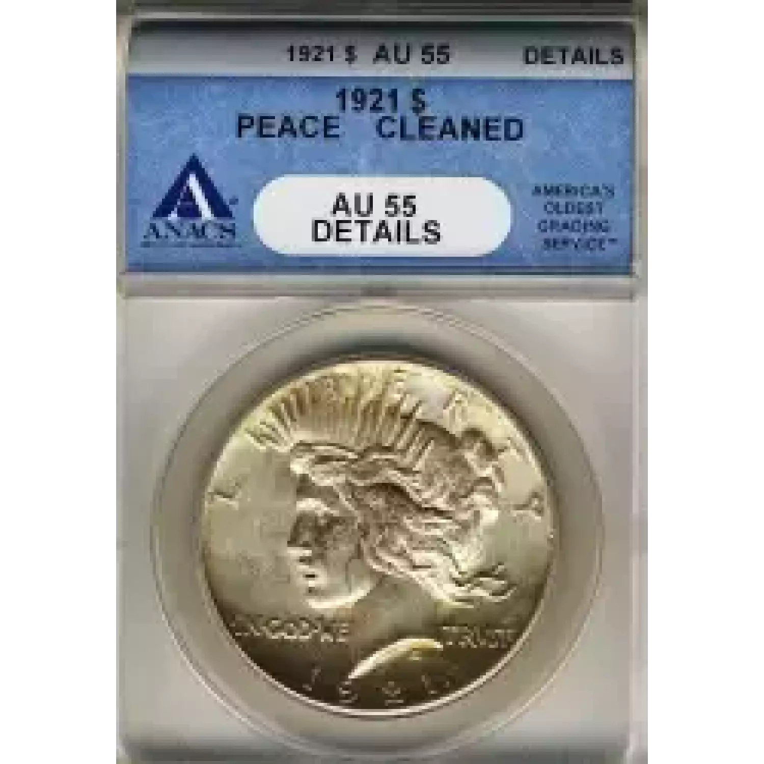 505149 | 1921-AU Details Peace Silver Dollar ANACS AU Details | ANACS | AU Details | Sold: 03/01/2010 | $115 |