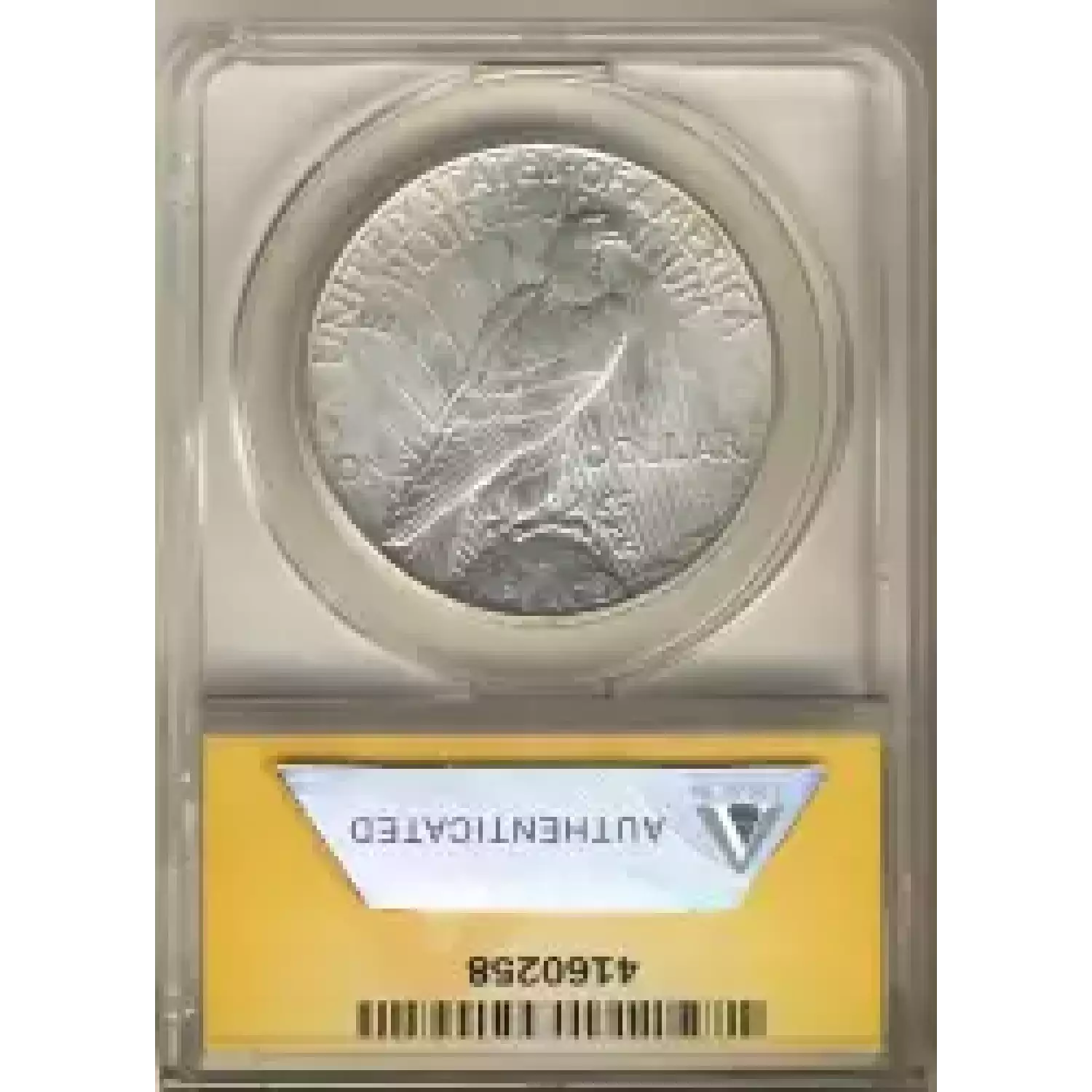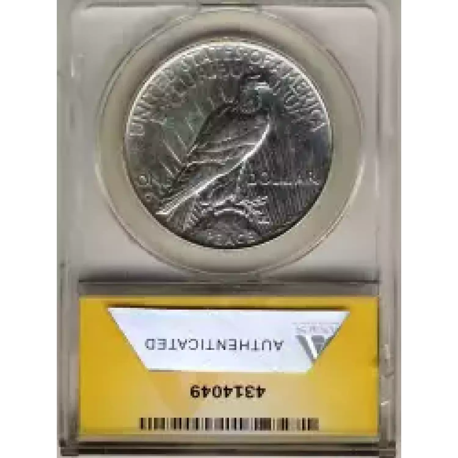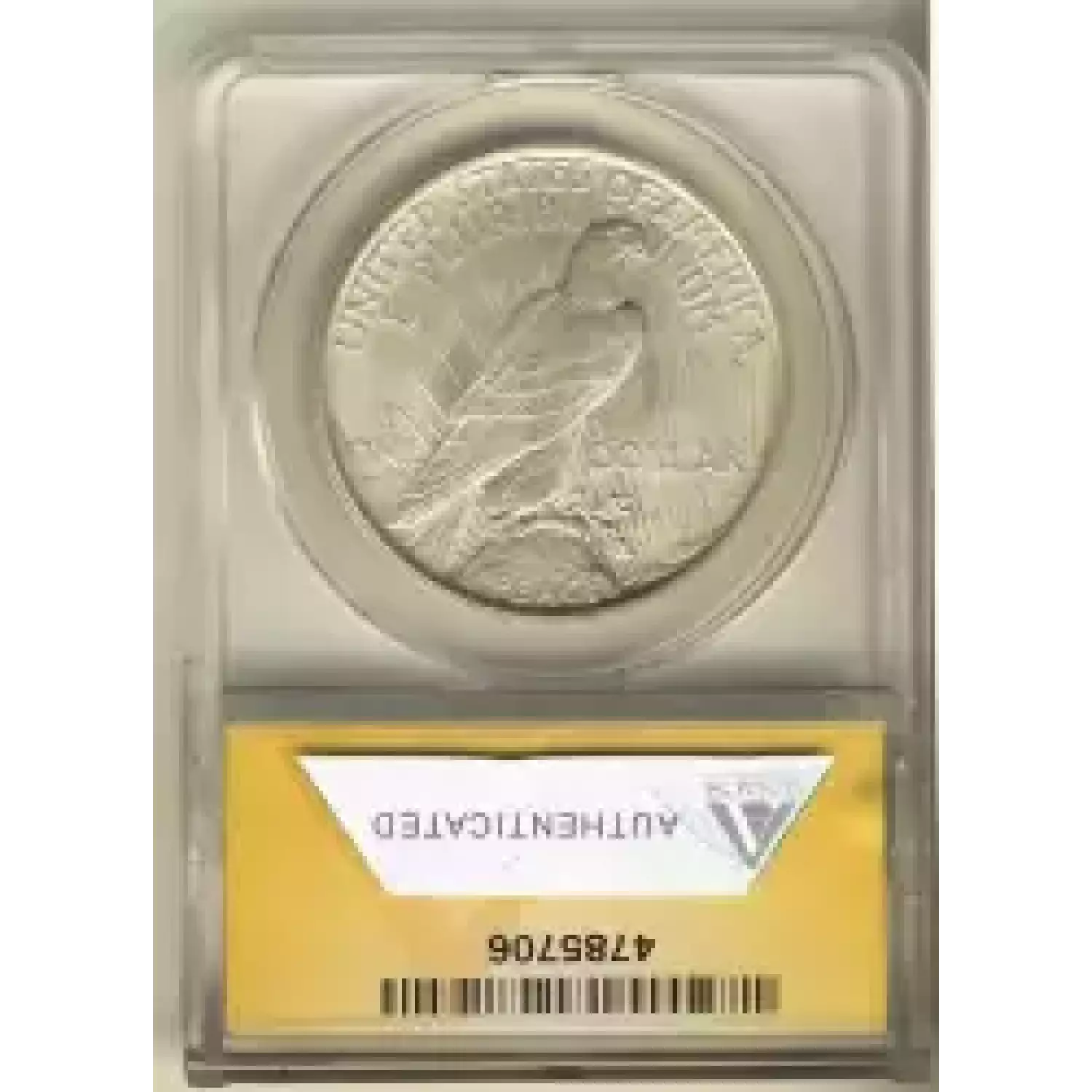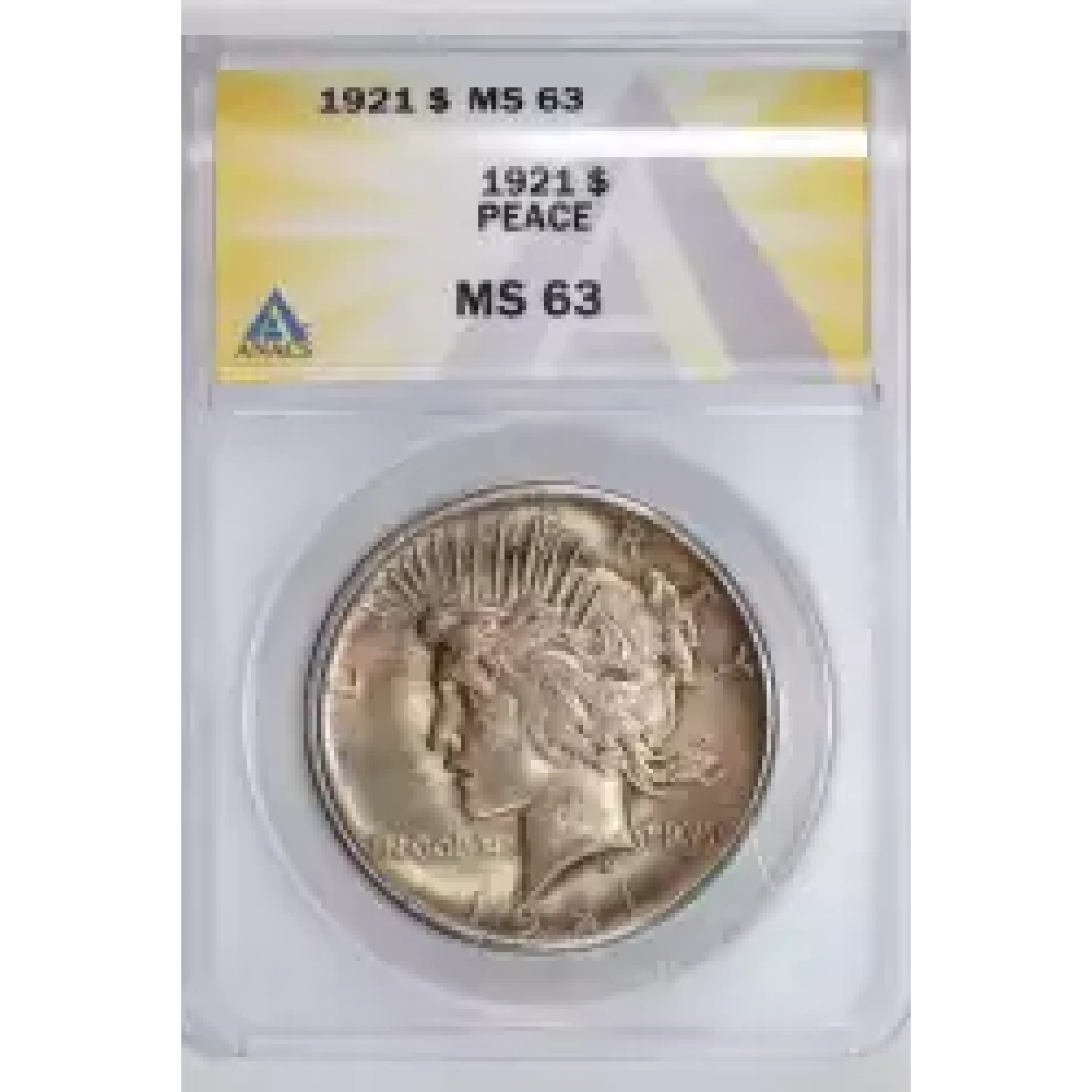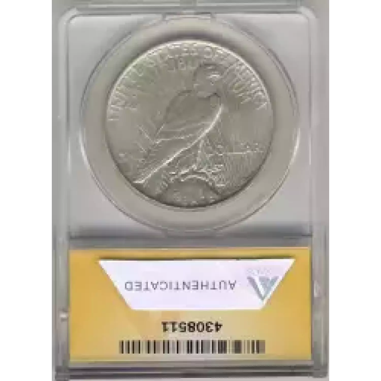 505149 | 1921-AU Details Peace Silver Dollar ANACS AU Details | ANACS | AU Details | Sold: 03/01/2010 | $115 |