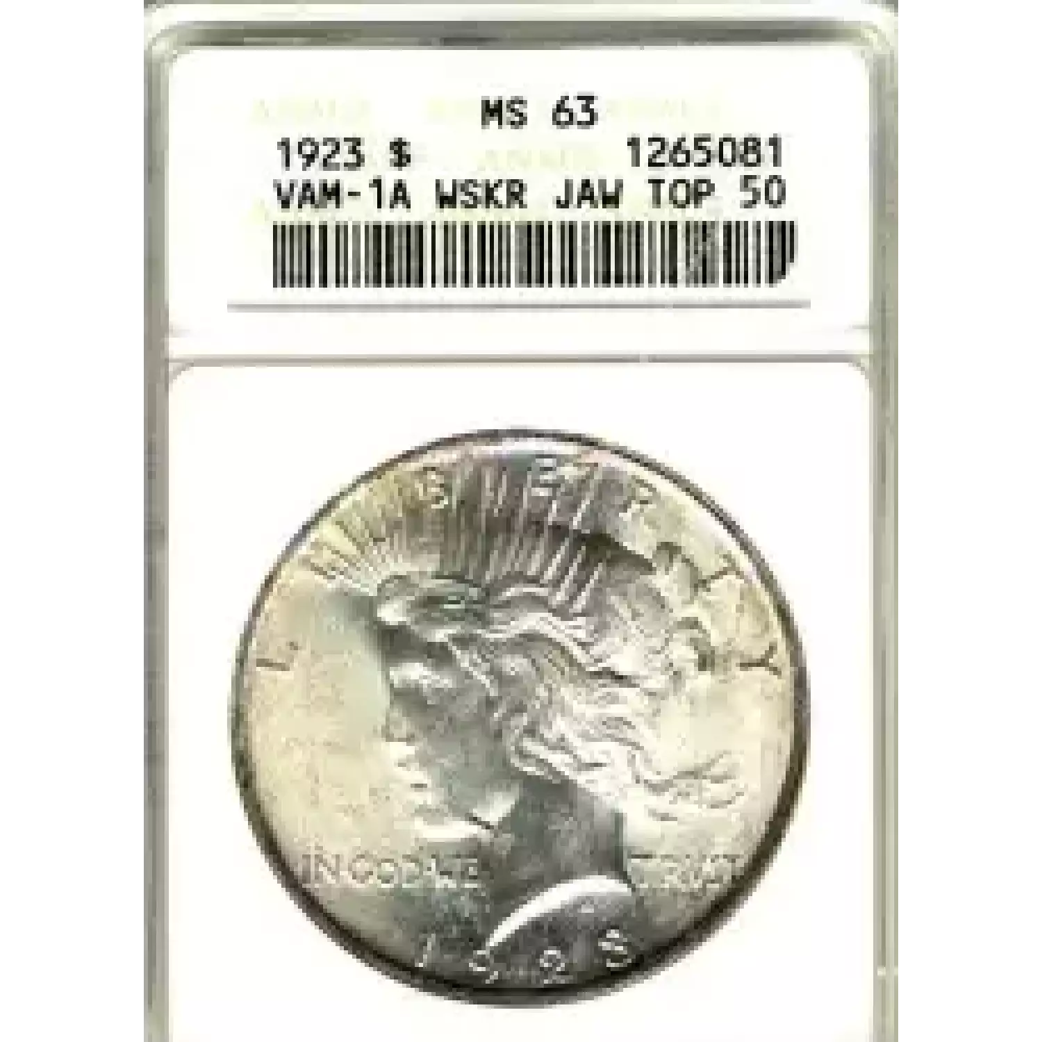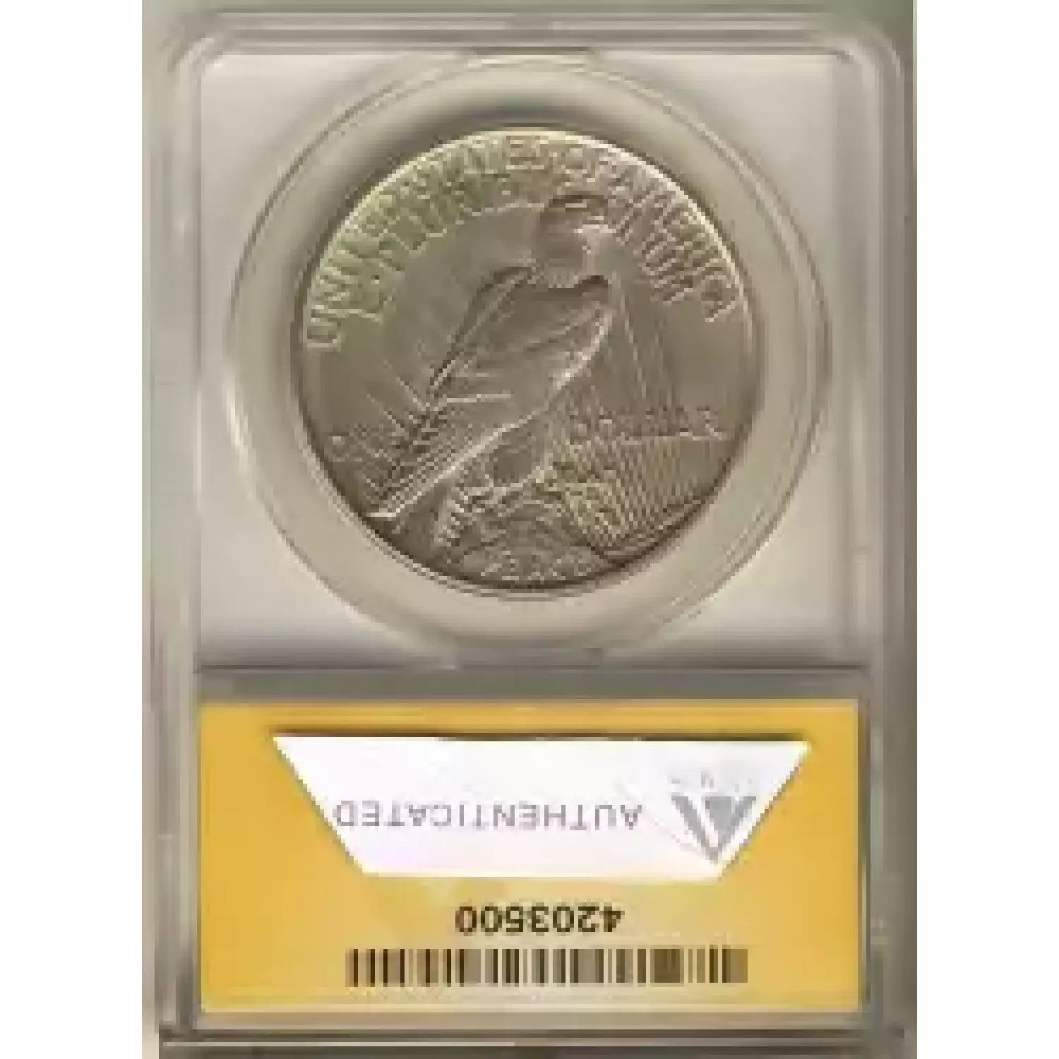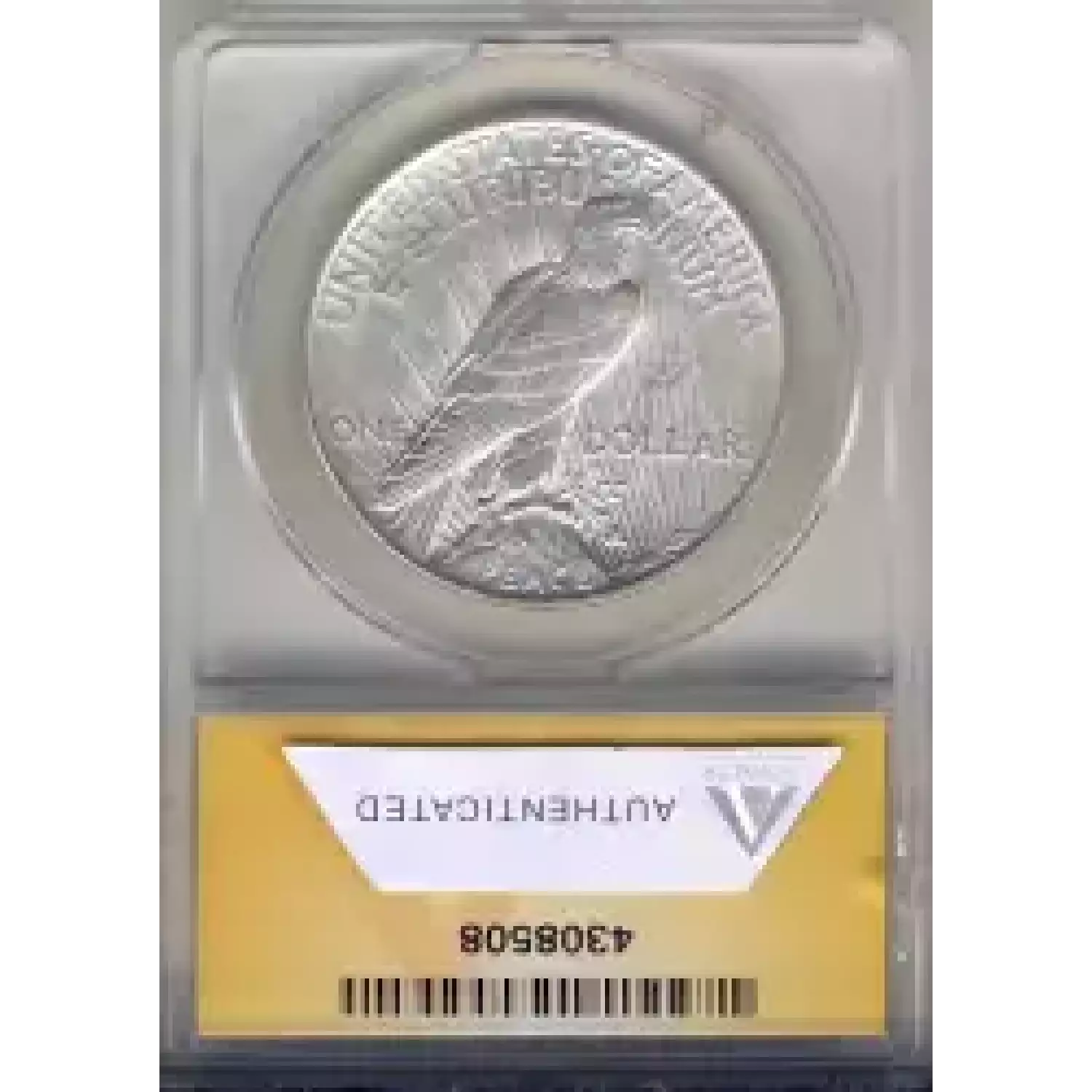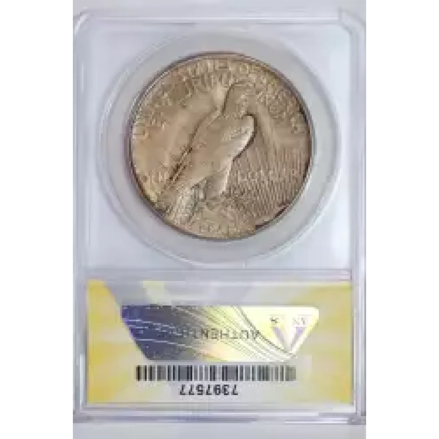 504919 | 1923-AU-55 Peace Silver Dollar ANACS AU-55 | ANACS | AU-55 | Sold: 10/09/2010 | $45 |