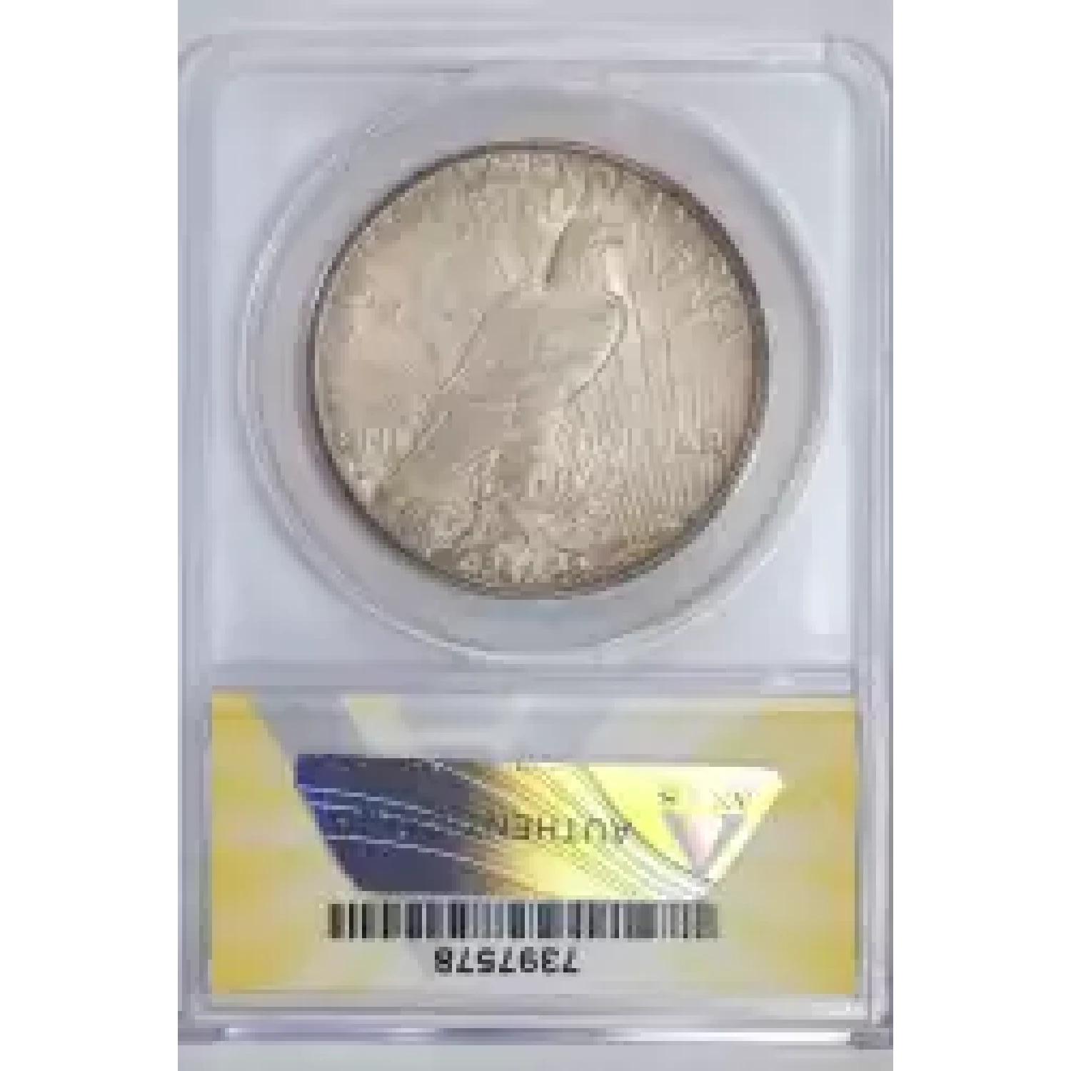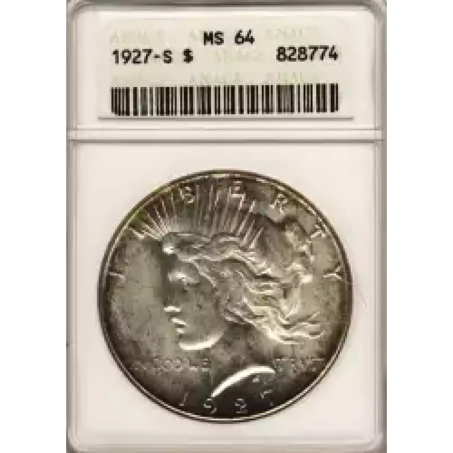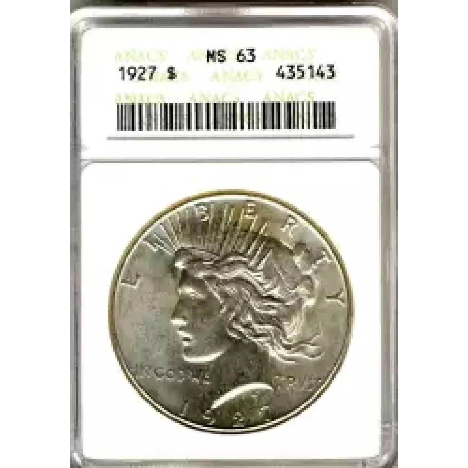 504737 | 1927-MS-62 Peace Silver Dollar ANACS MS-62 | ANACS | MS-62 | Sold: 22/01/2010 | $100 |