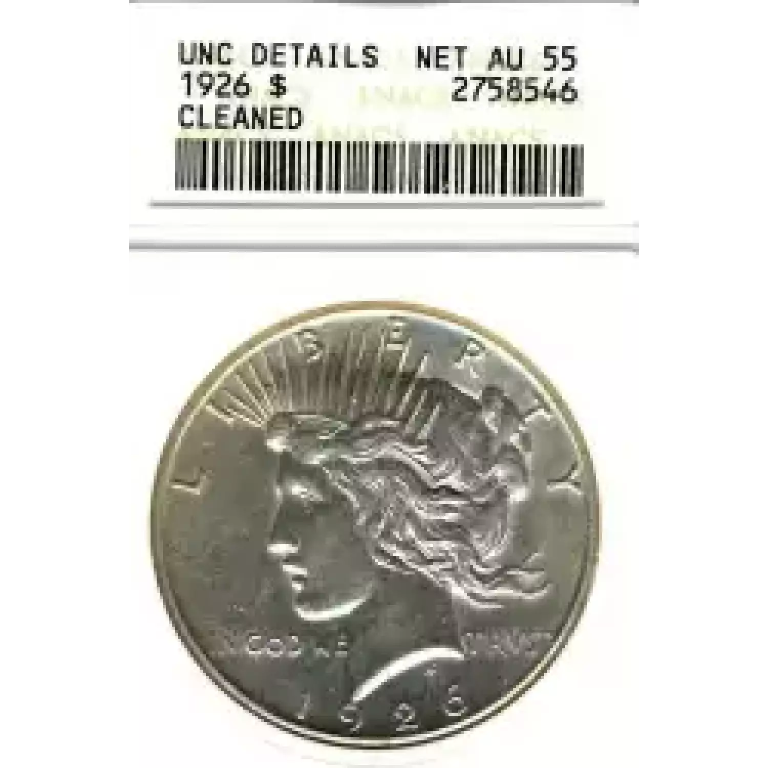 500773 | 1926-D Peace Silver Dollar NGC AU-58 | NGC | AU-58 | Sold: 01/03/2022 | $125 |