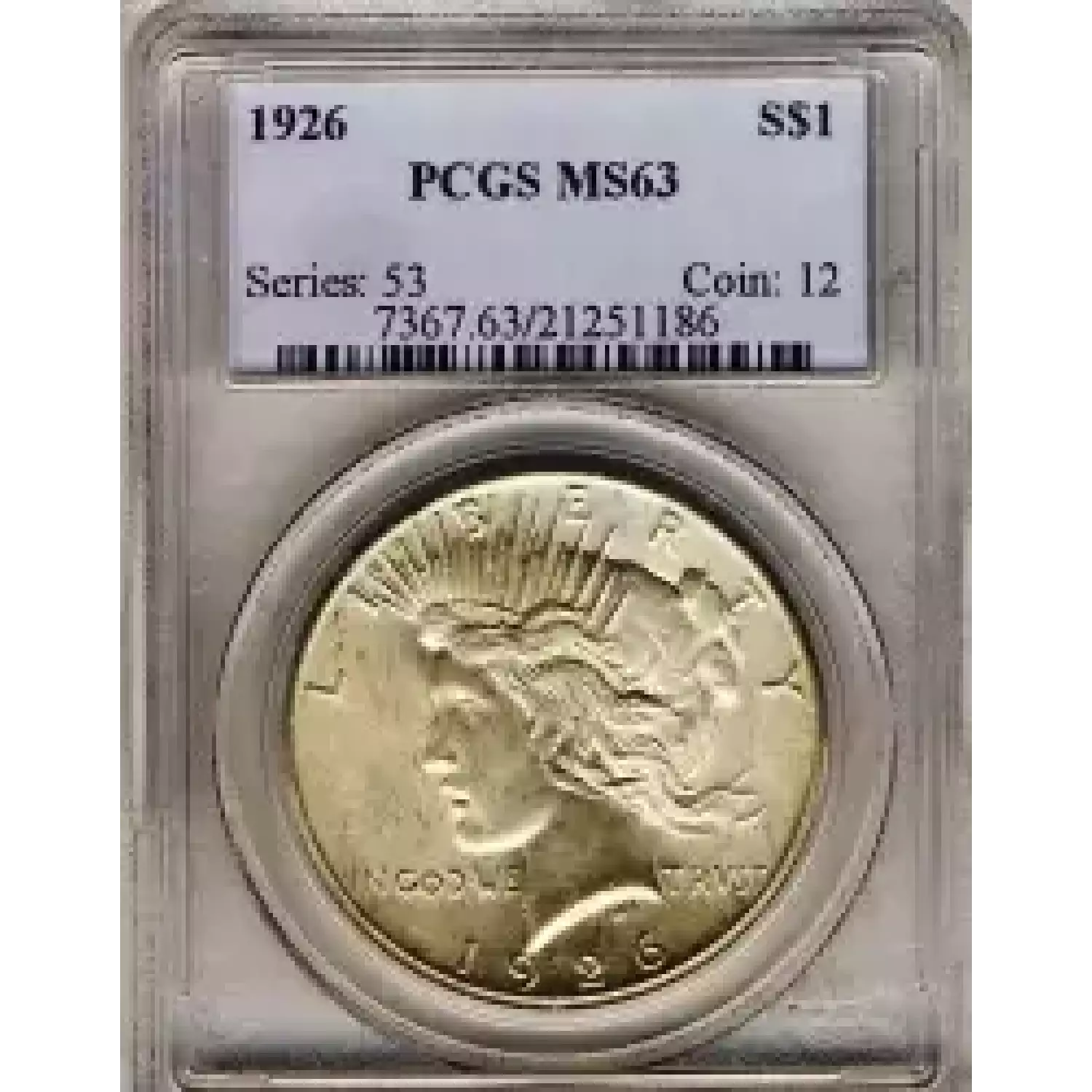505130 | 1926-MS-64 Peace Silver Dollar PCGS MS-64 | PCGS | MS-64 | Sold: 15/11/2012 | $310 |