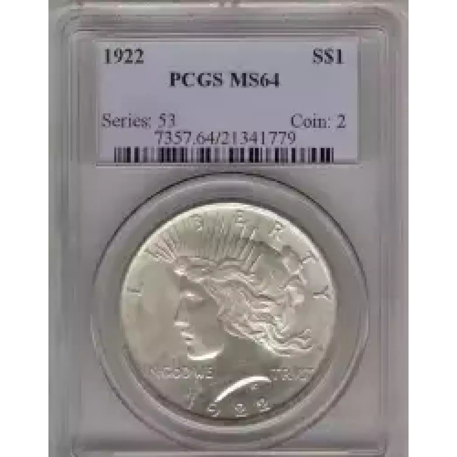 519563 | 1922 Peace Silver Dollar PCGS MS-64 | PCGS | MS-64 | Sold: 13/09/2023 | $110 |