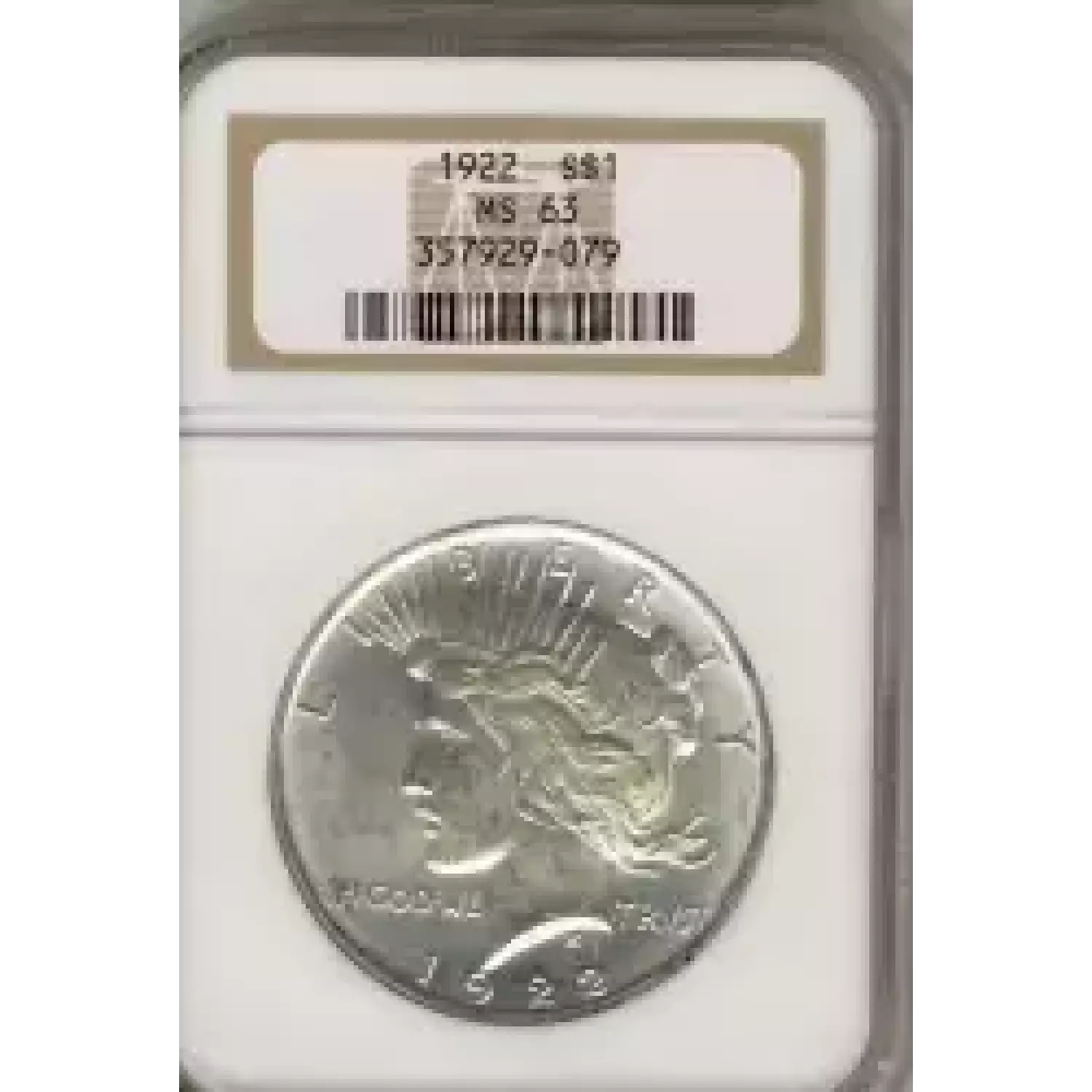 500727 | 1922-D Peace Silver Dollar NGC MS-63 | NGC | MS-63 | Sold: 28/02/2022 | $115 |