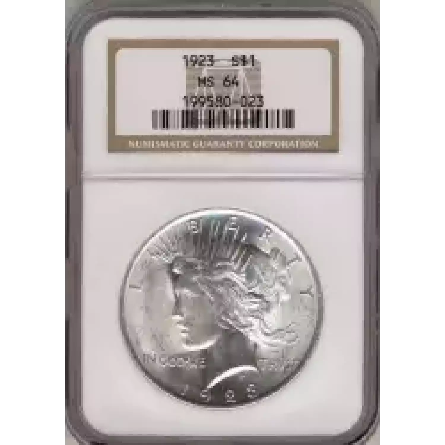 519756 | 1923 Peace Silver Dollar NGC MS-64 | NGC | MS-64 | Sold: 06/12/2023 | $86 |