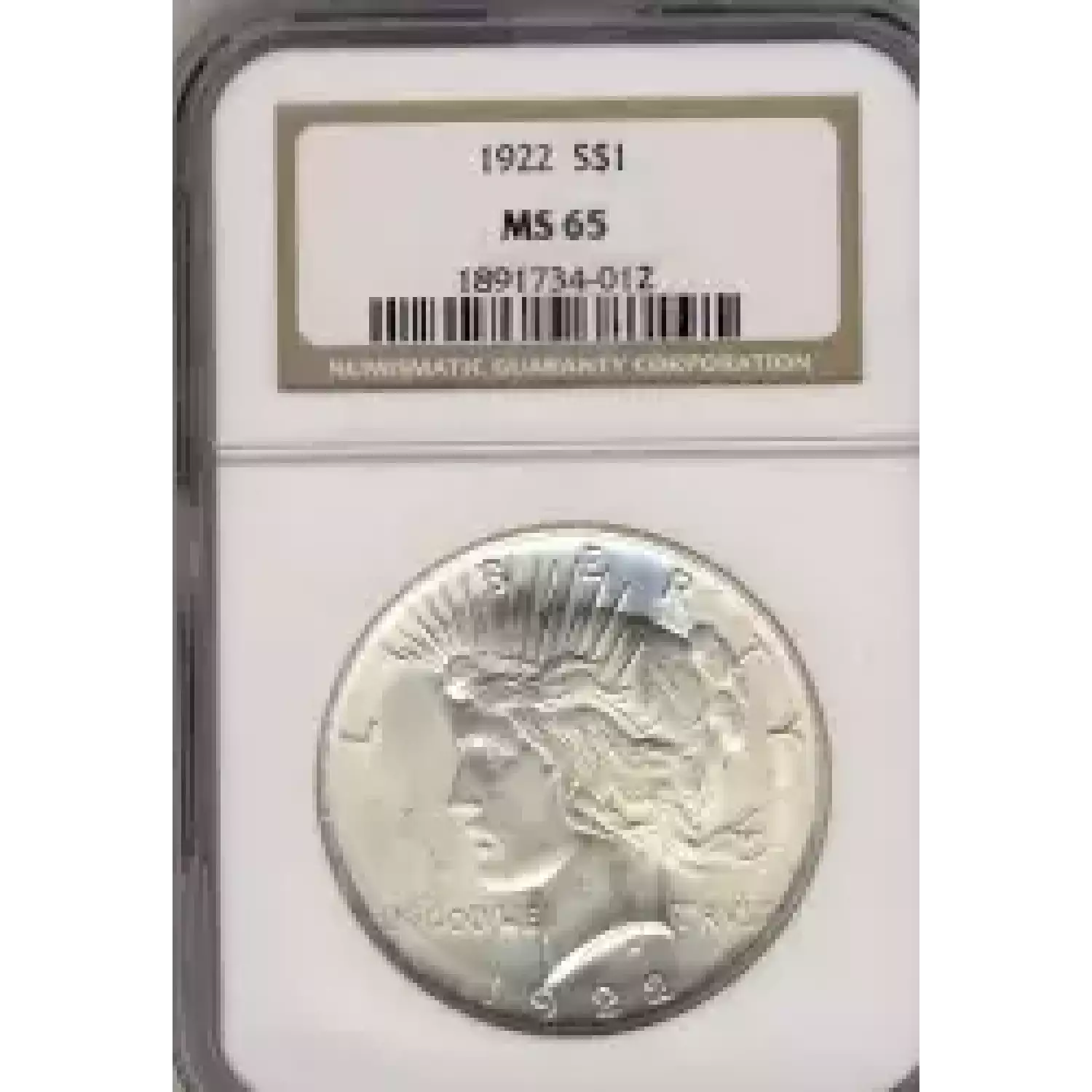 505192 | 1922-MS-62 Peace Silver Dollar NGC MS-62 | NGC | MS-62 | Sold: 15/07/2012 | $110 |