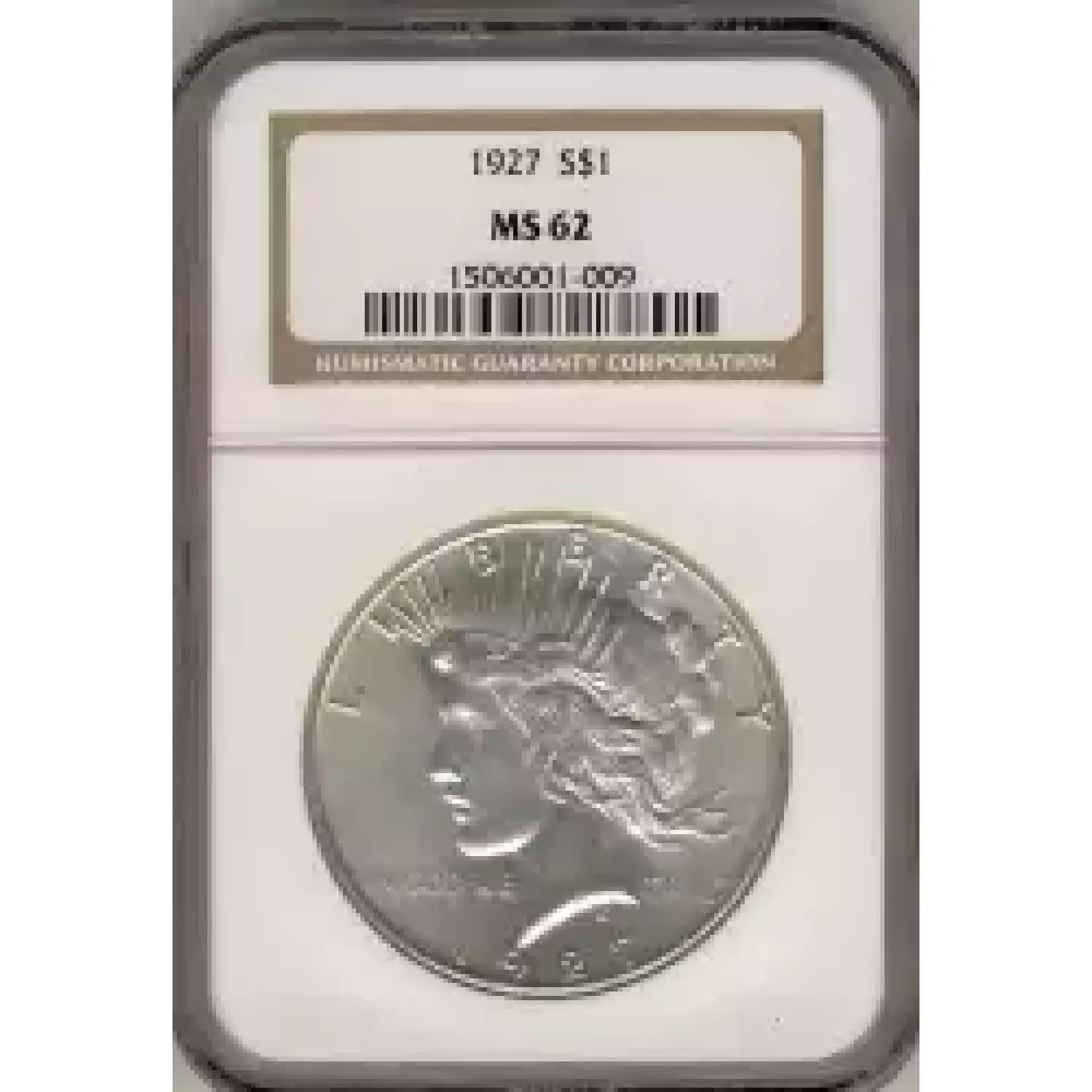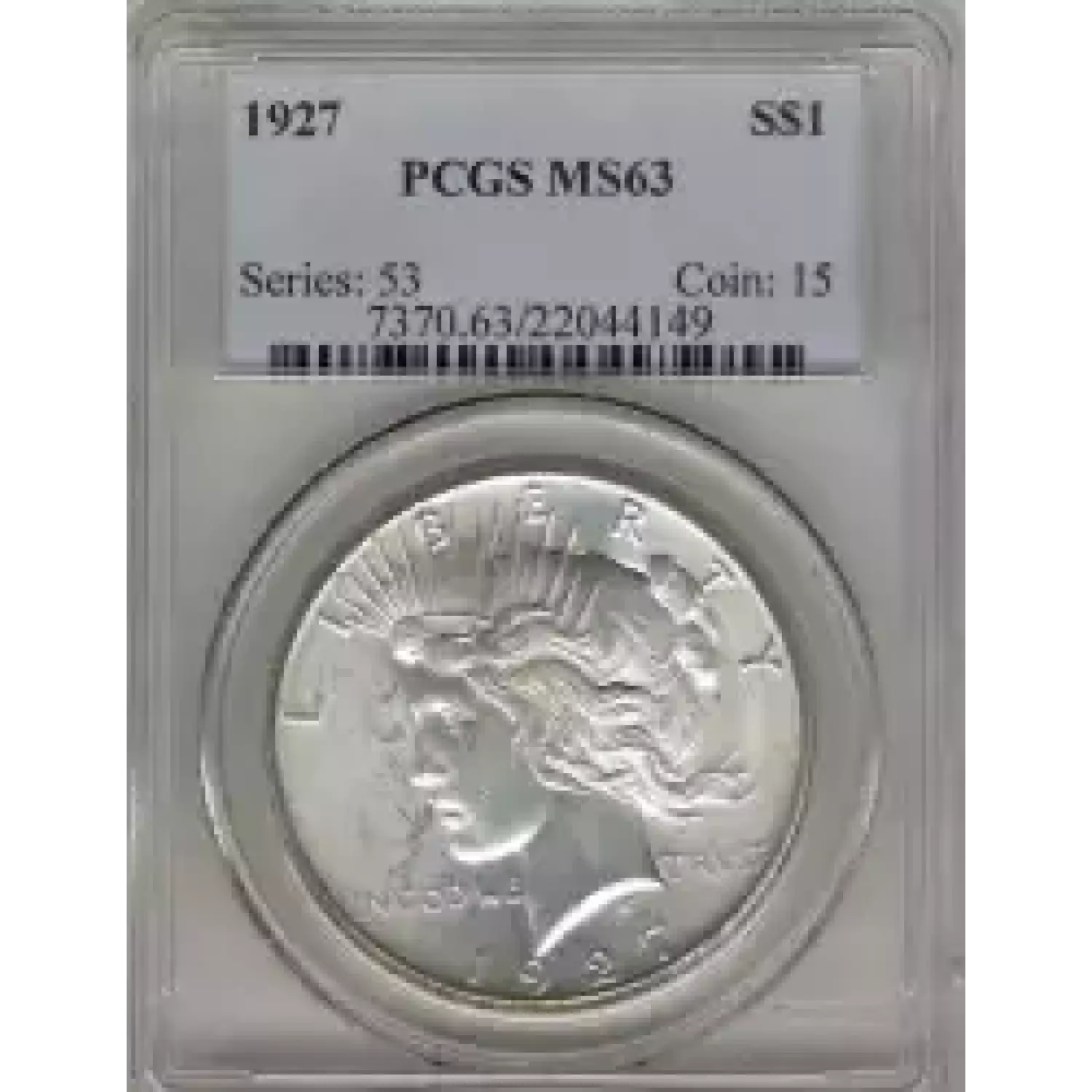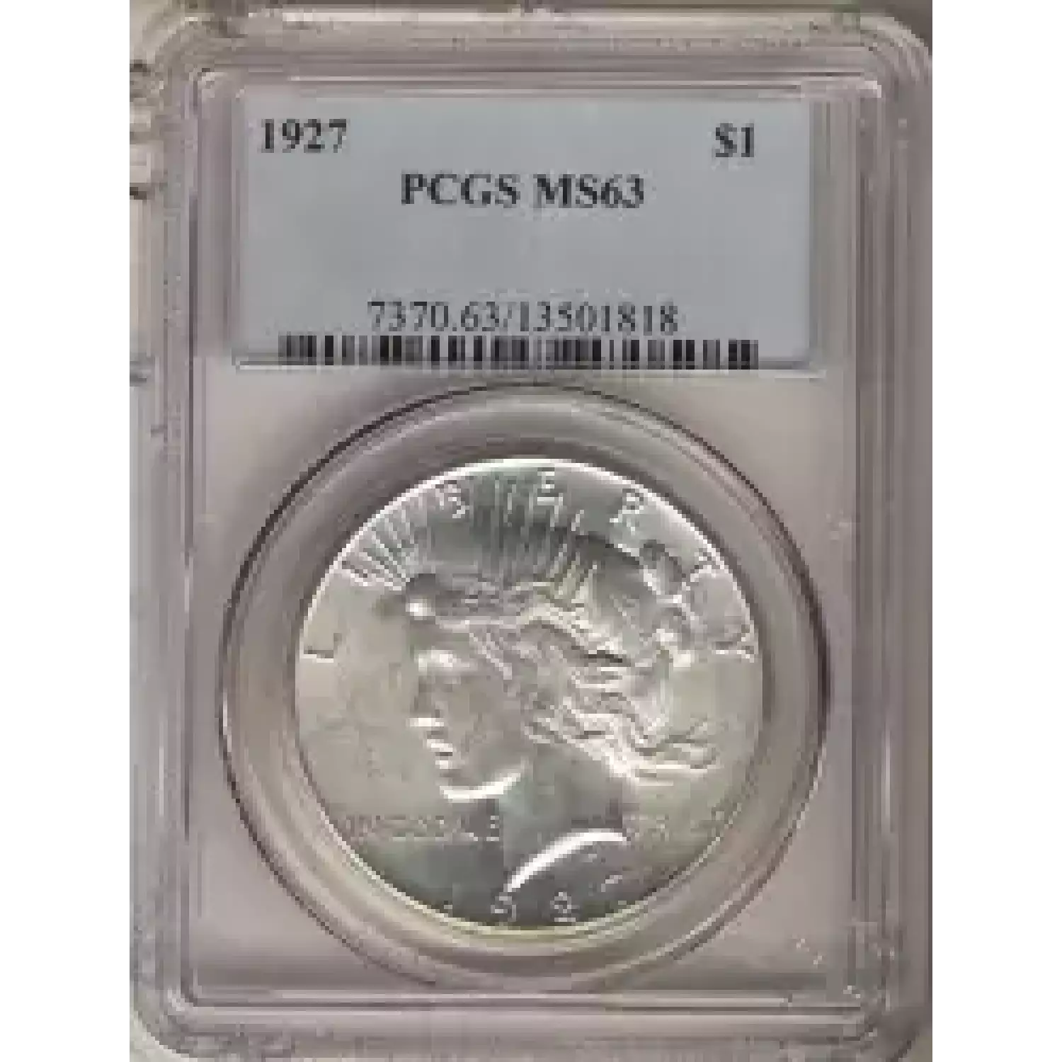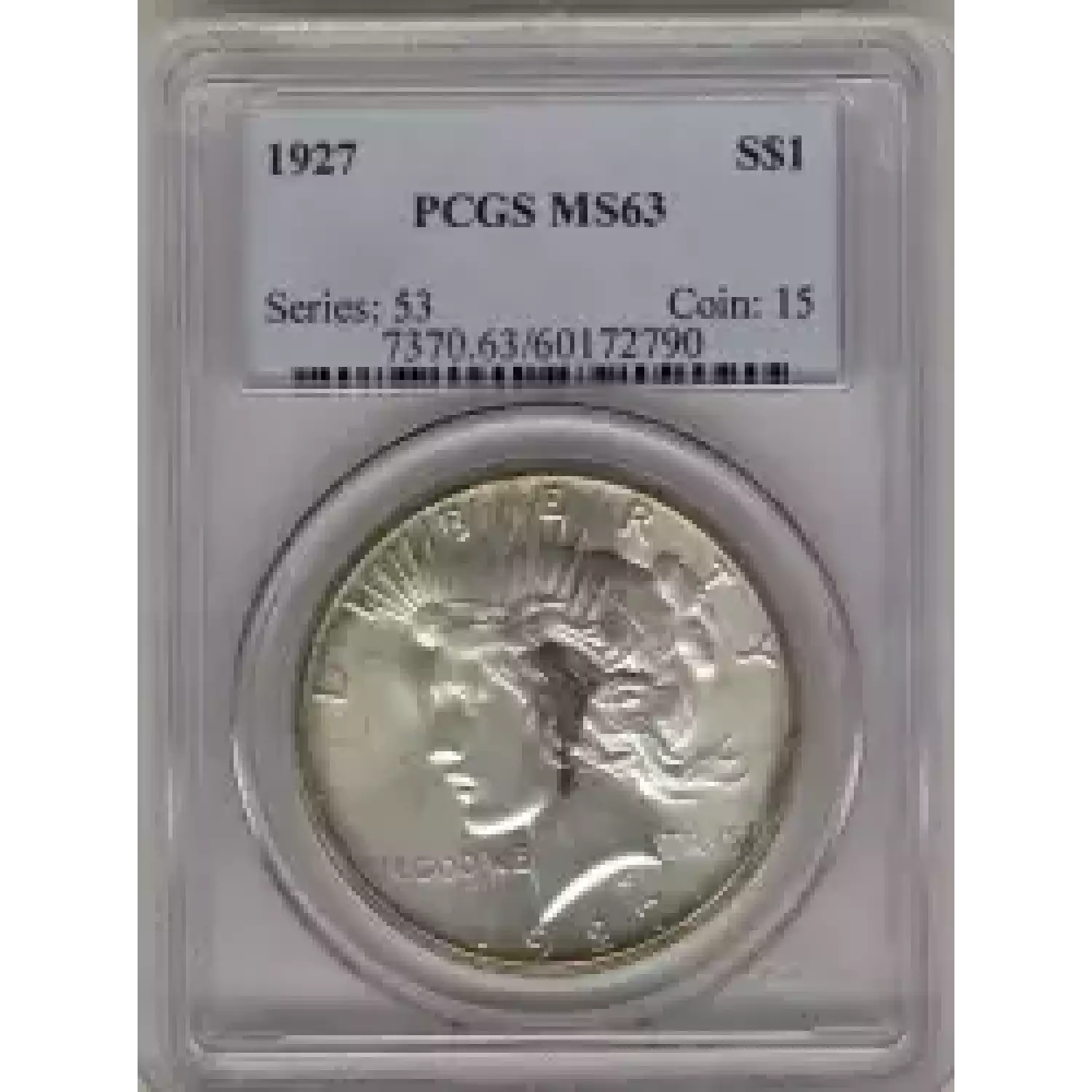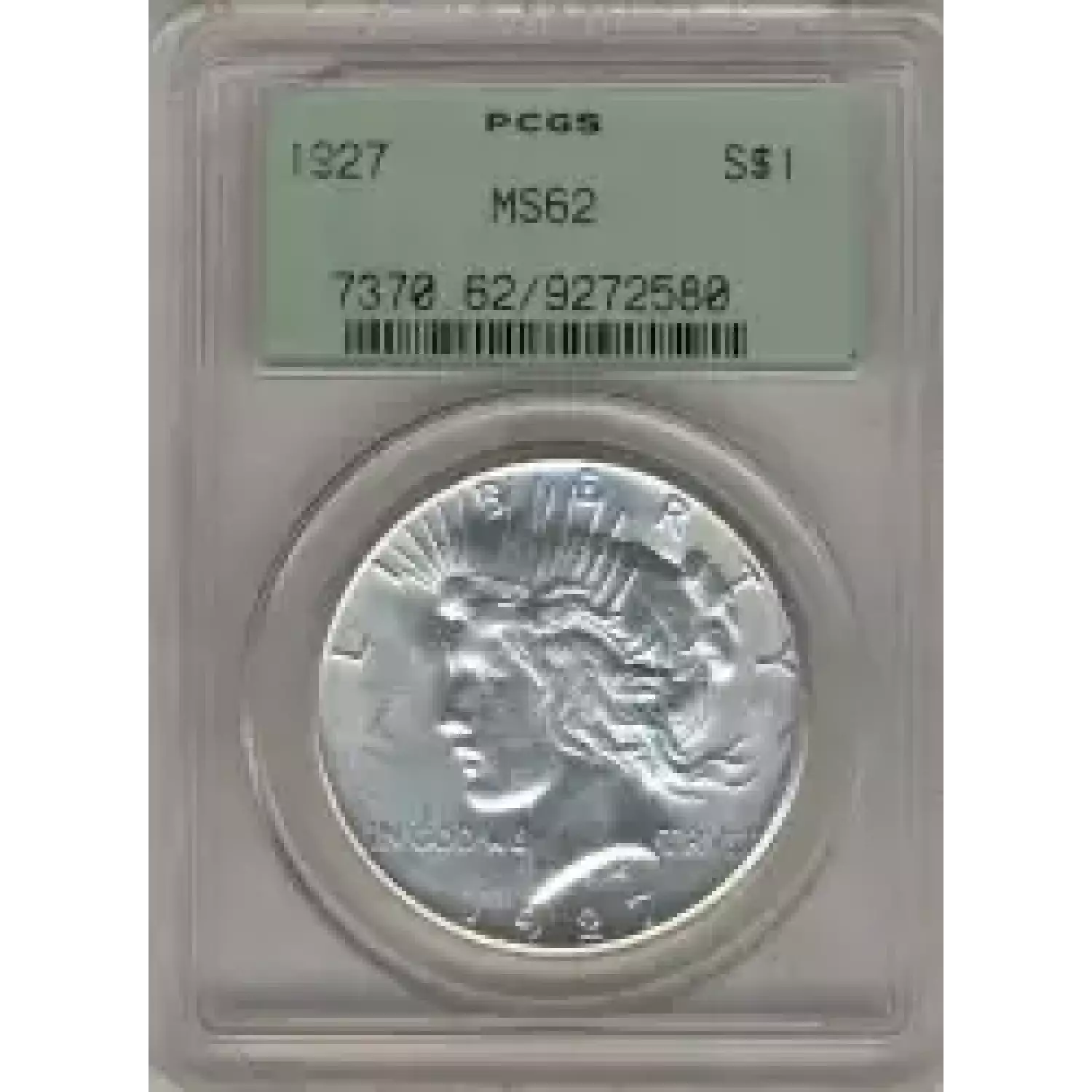 505434 | 1927-MS-62 Peace Silver Dollar PCGS MS-62 | PCGS | MS-62 | Sold: 09/09/2013 | $103.50 |