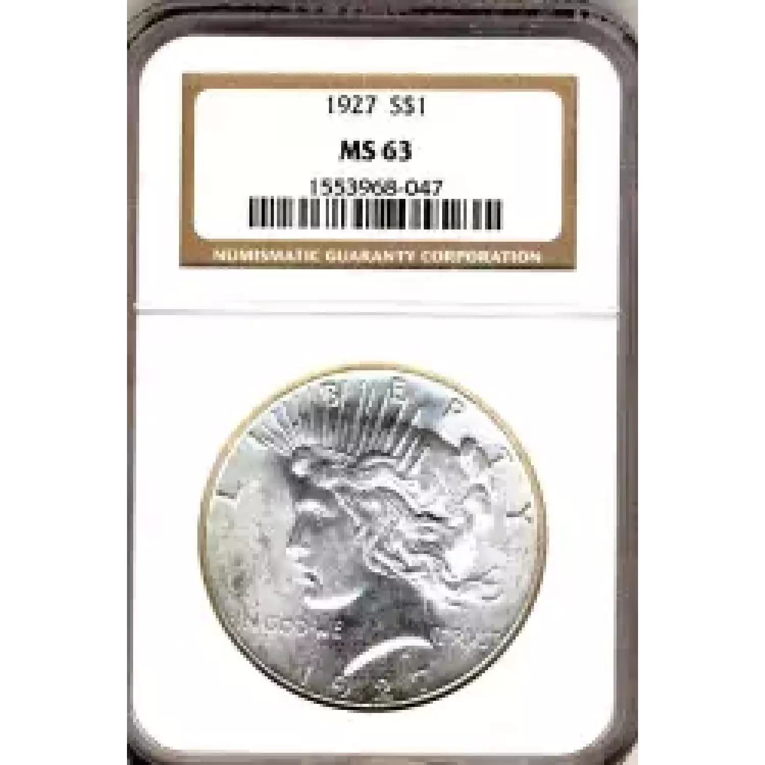 505428 | 1927-MS-63 Peace Silver Dollar NGC MS-63 | NGC | MS-63 | Sold: 27/10/2012 | $300 |