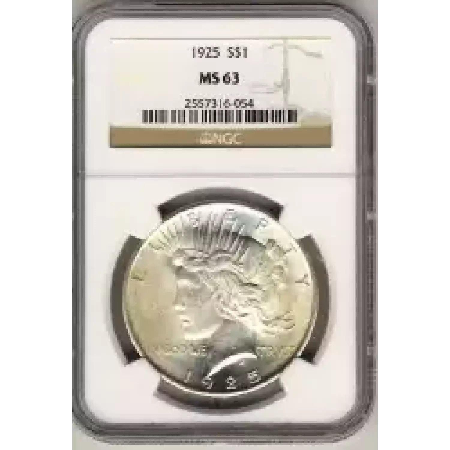 505215 | 1925-MS-63 Peace Silver Dollar PCGS MS-63 | PCGS | MS-63 | Sold: 04/12/2010 | $125 |