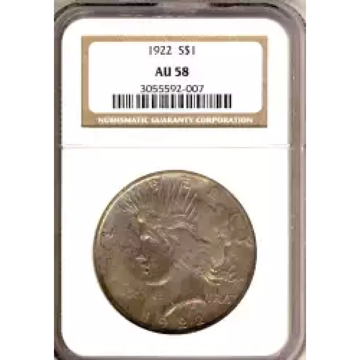 505117 | 1922-AU-58 Peace Silver Dollar NGC AU-58 | NGC | AU-58 | Sold: 07/01/2011 | $225 |