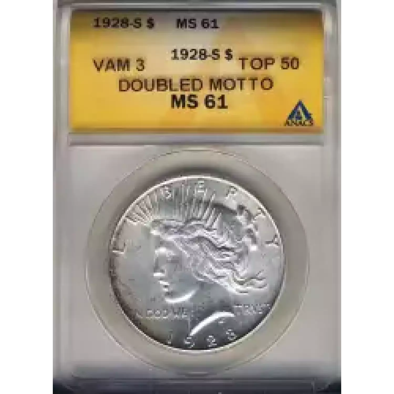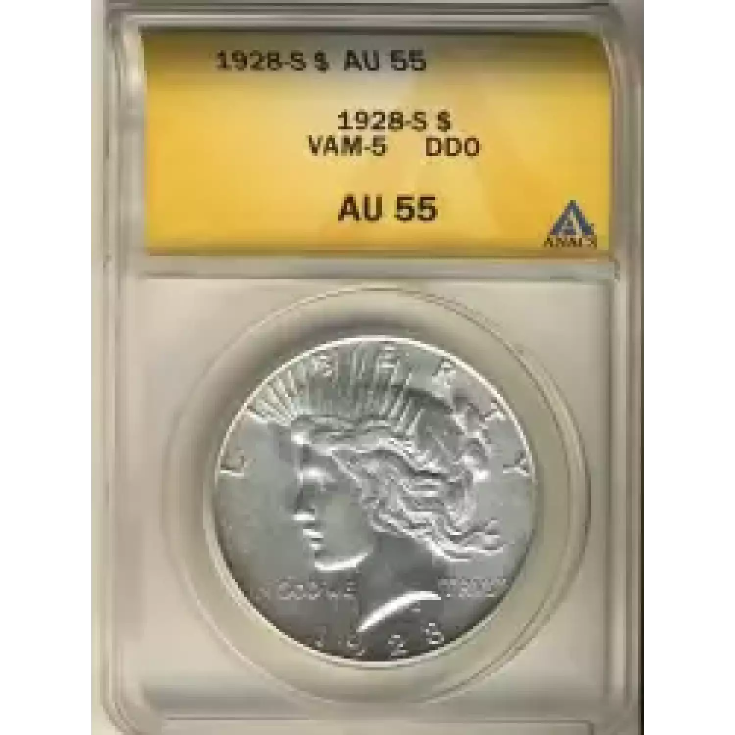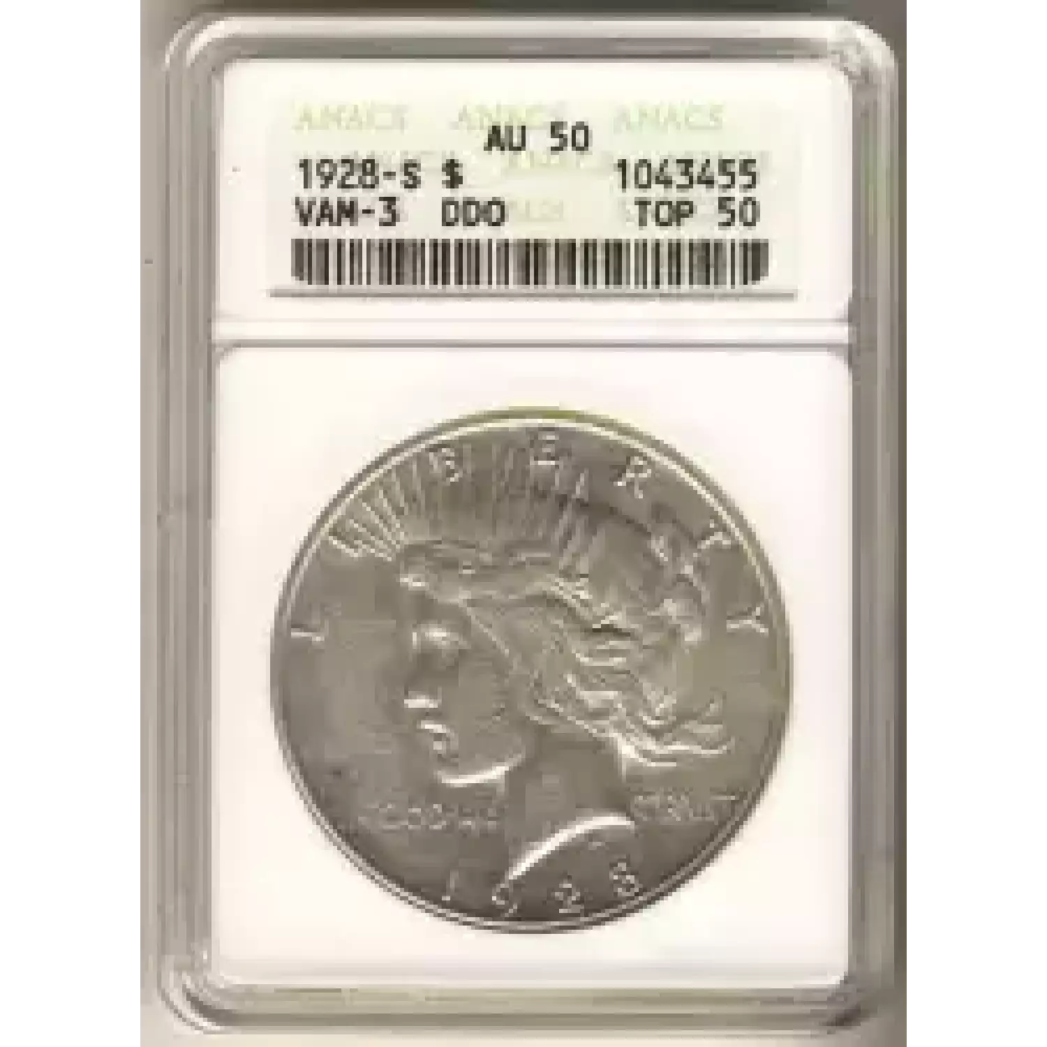 504479 | 1928-AU-55 Peace Silver Dollar ANACS AU-55 | ANACS | AU-55 | Sold: 26/04/2009 | $75 |