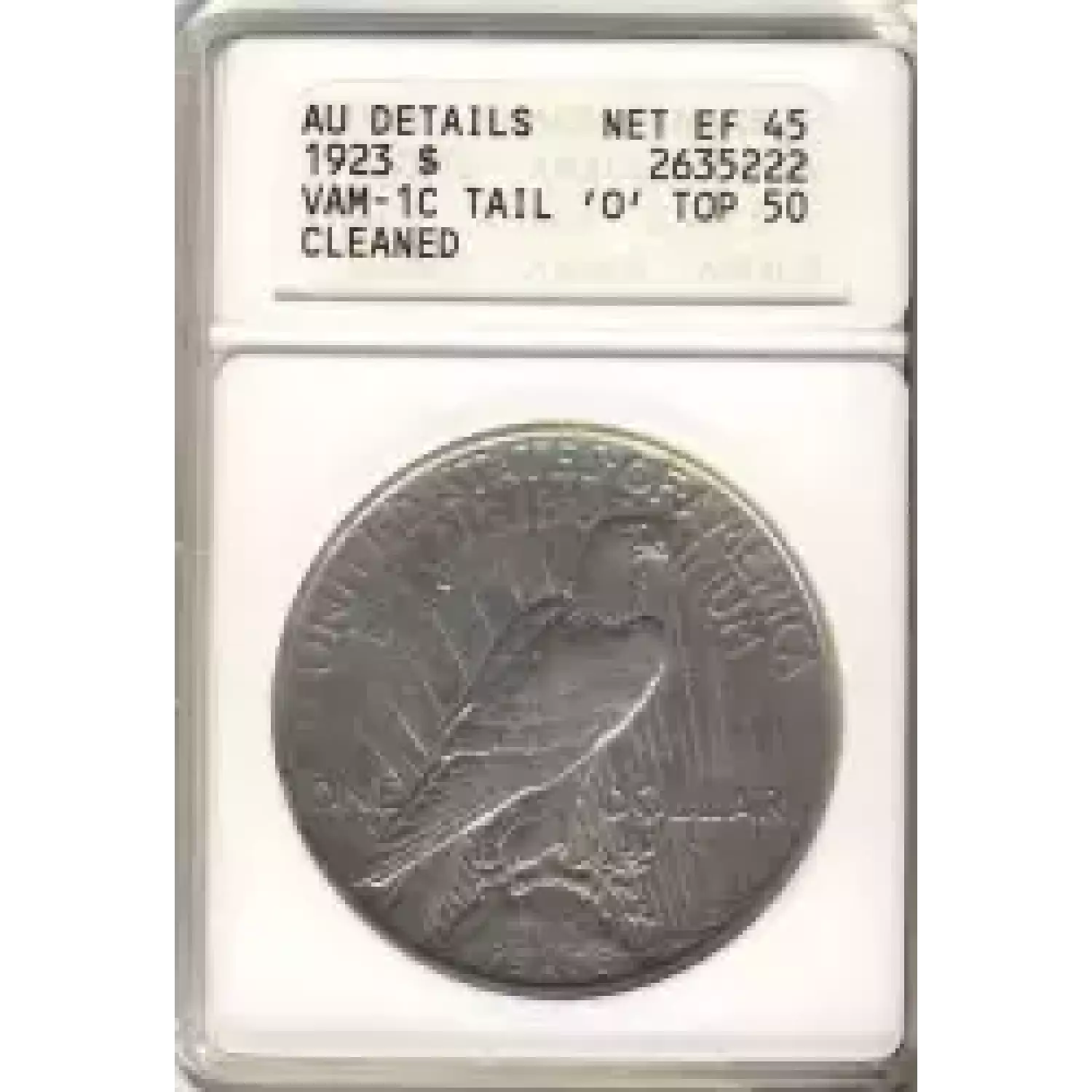 504589 | 1923-AU Details Peace Silver Dollar ANACS AU Details | ANACS | AU Details | Sold: 03/01/2009 | $250 |