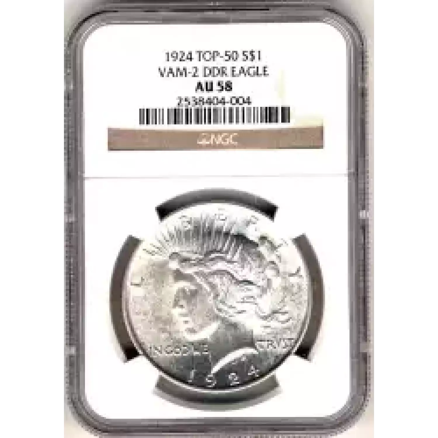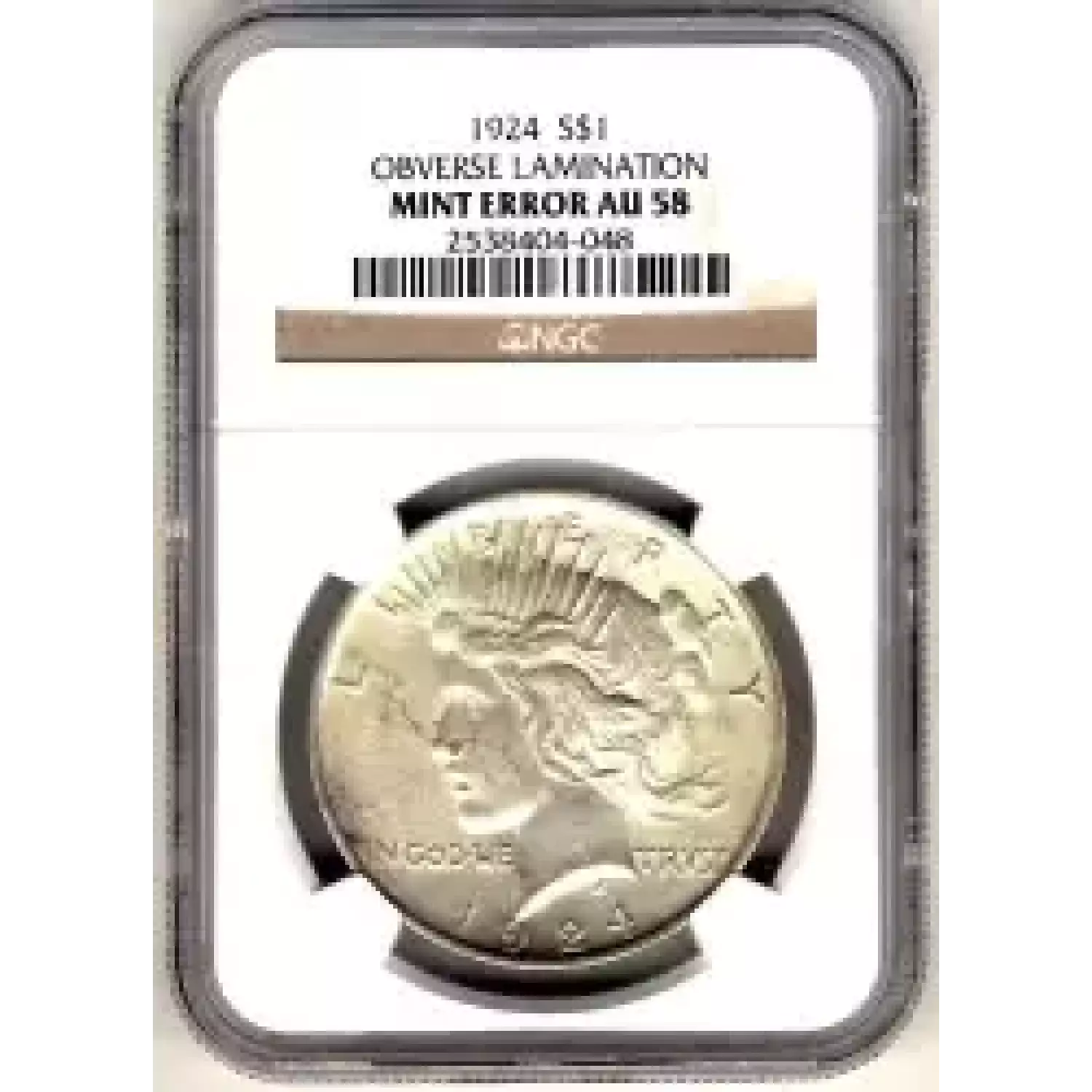 504719 | 1924-AU-58 Peace Silver Dollar NGC AU-58 | NGC | AU-58 | Sold: 06/06/2010 | $60 |