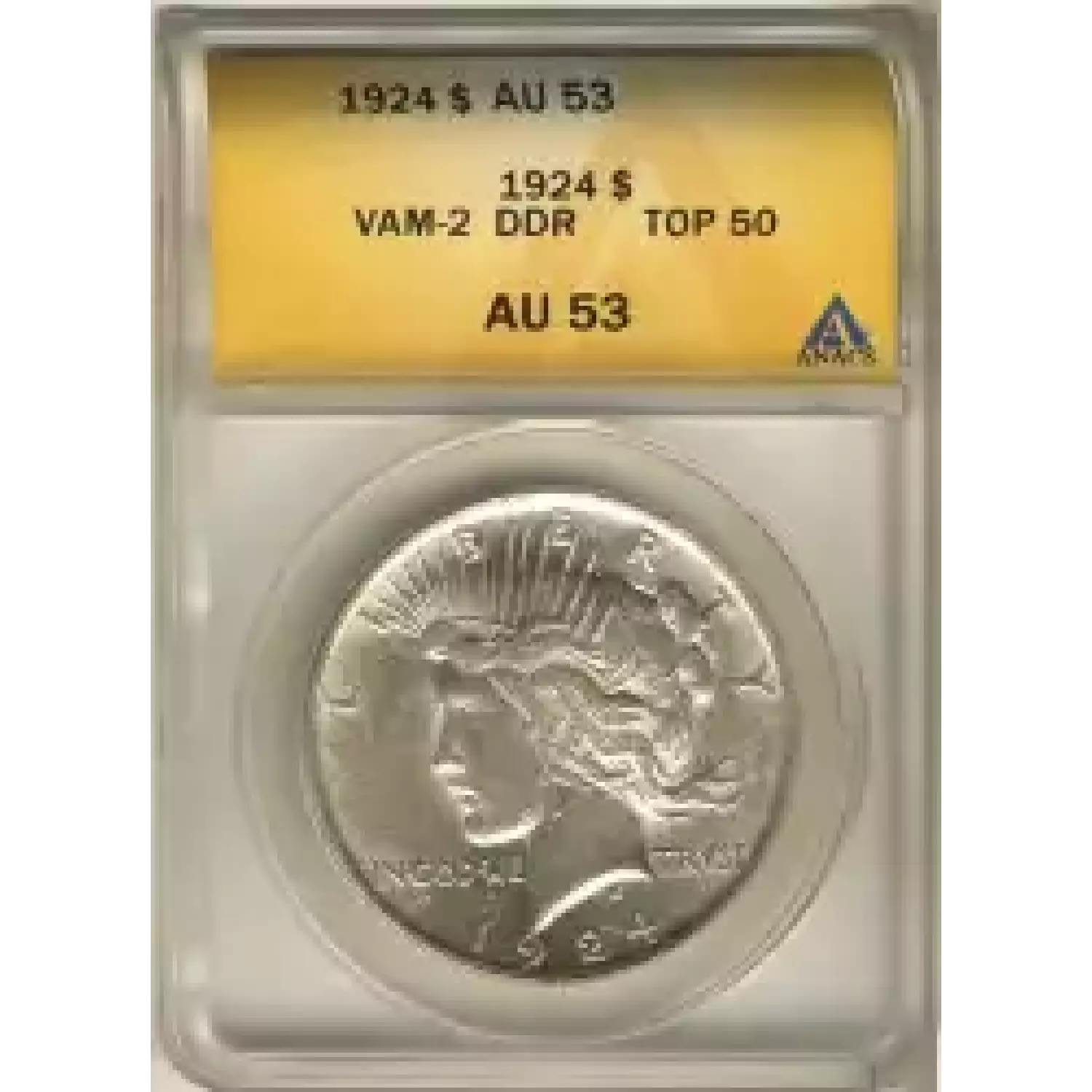 504739 | 1924-AU-58 Peace Silver Dollar ANACS AU-58 | ANACS | AU-58 | Sold: 25/05/2010 | $45 |