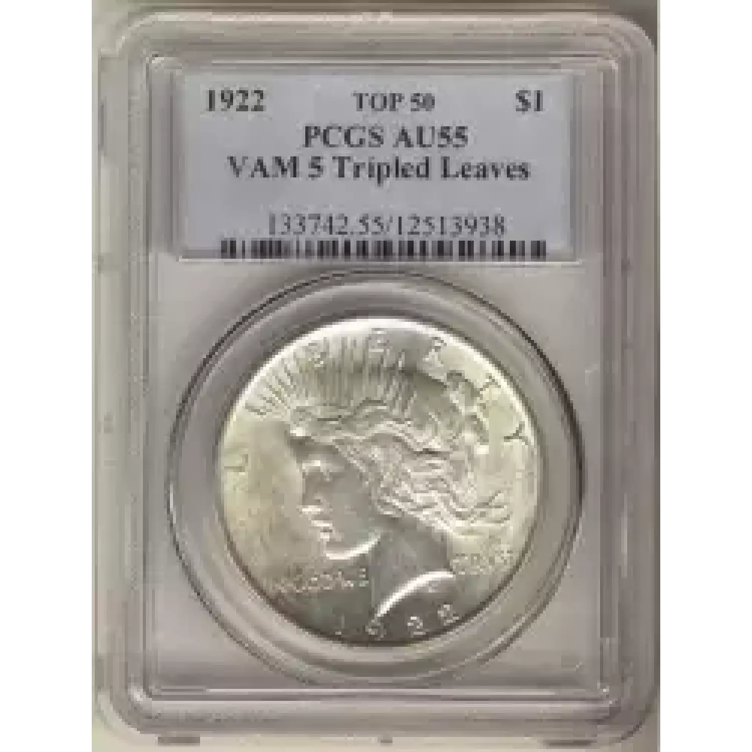 505156 | 1922-AU-50 Peace Silver Dollar PCGS AU-50 | PCGS | AU-50 | Sold: 11/03/2015 | $45 |
