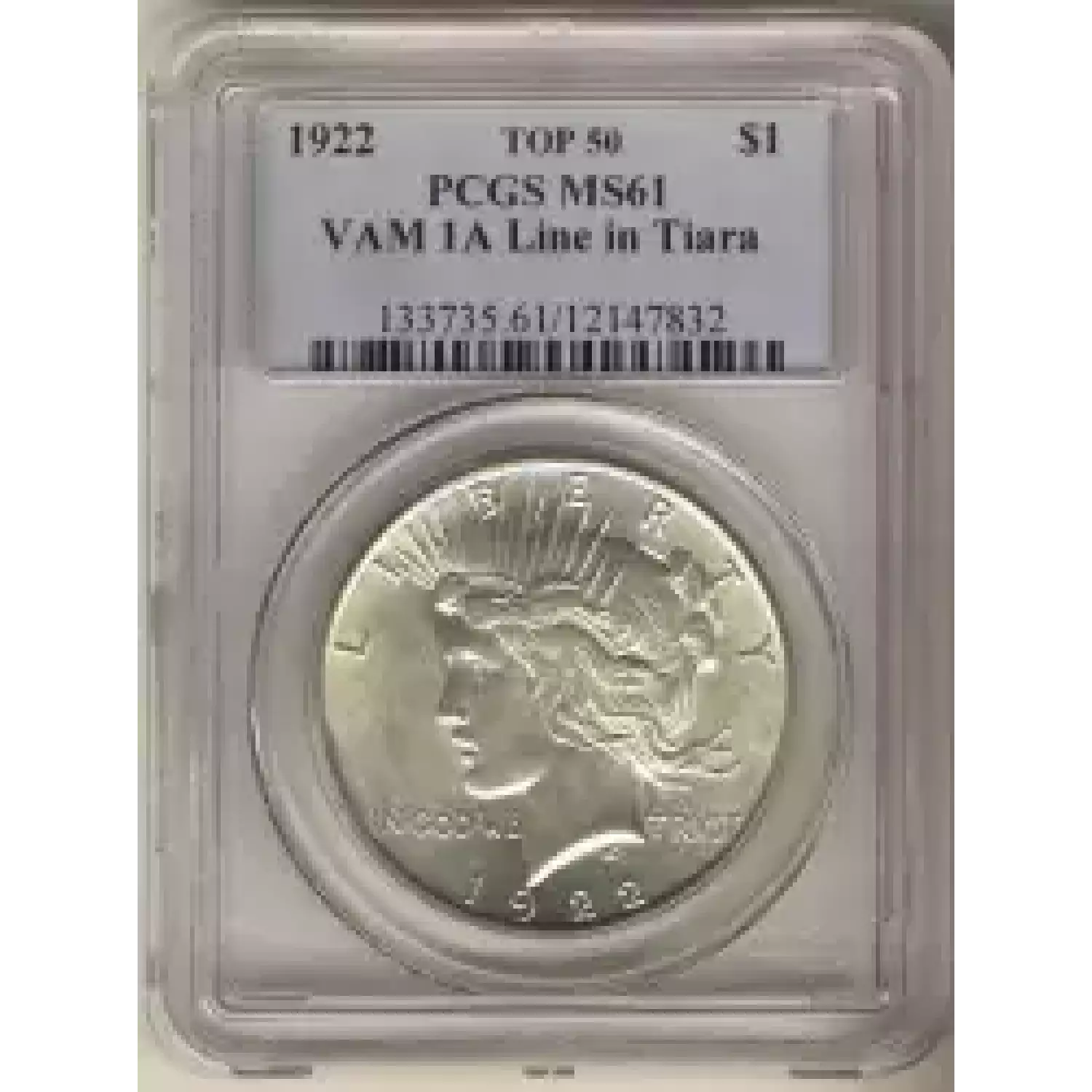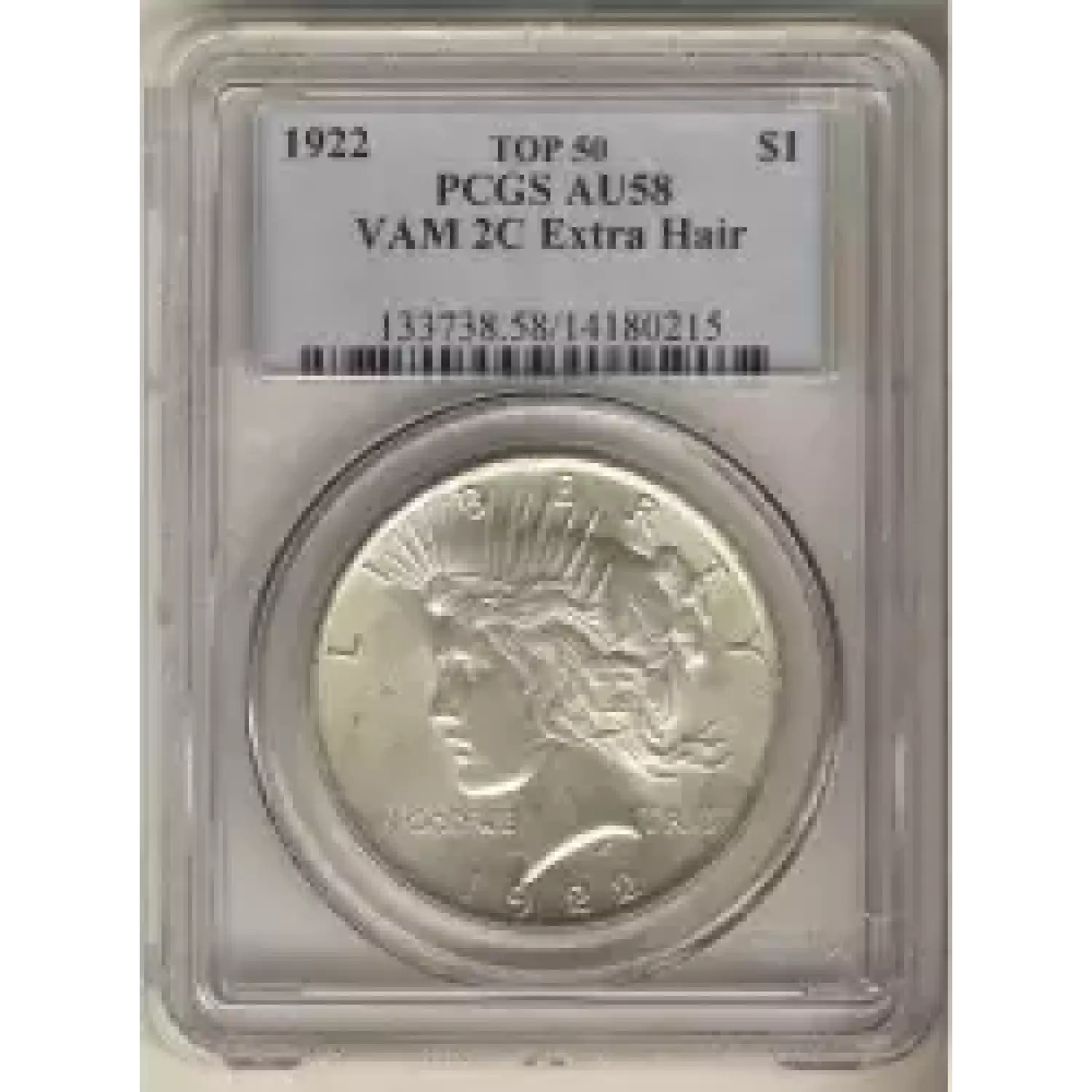 504890 | 1922-AU-58 Peace Silver Dollar PCGS AU-58 | PCGS | AU-58 | Sold: 09/08/2015 | $135 |