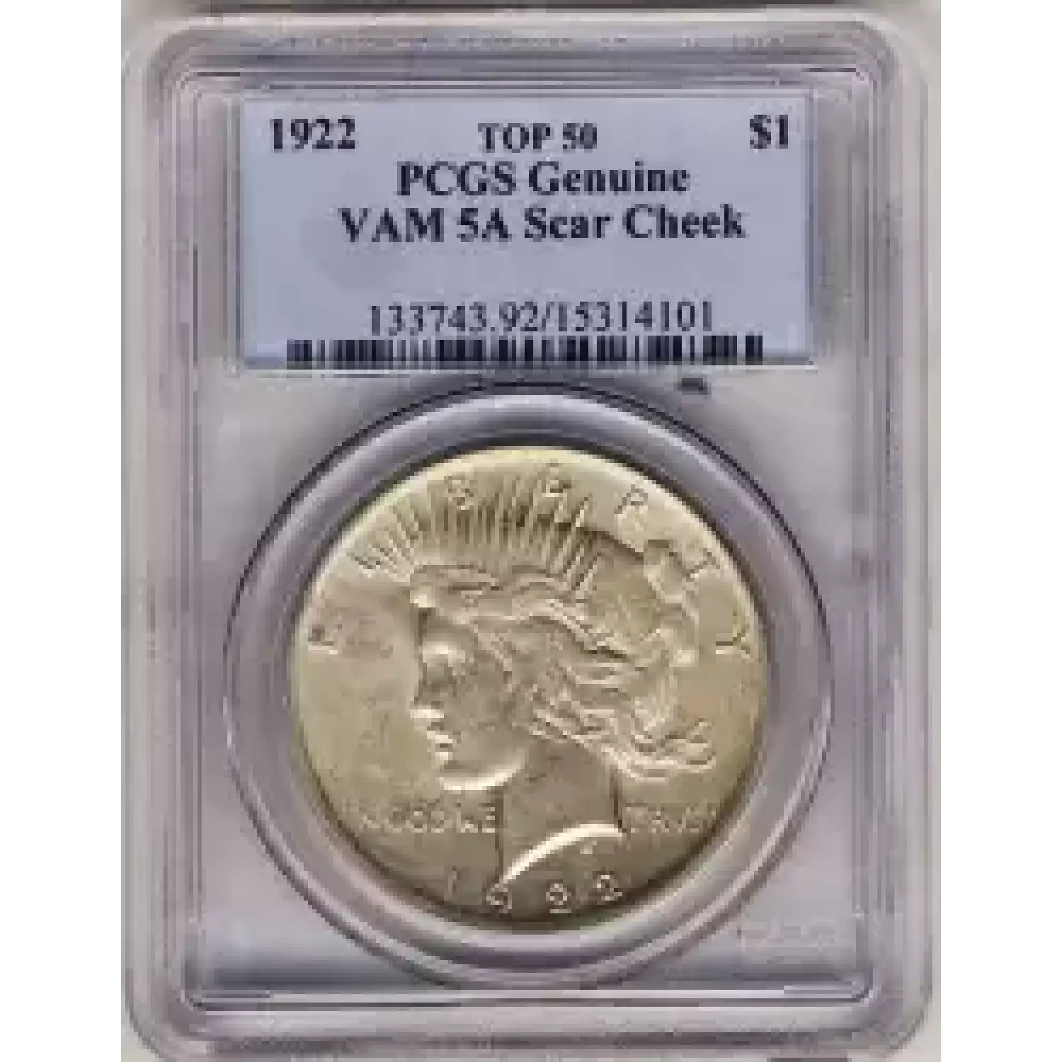 504708 | 1922-Genuine (97 - Environmental Damage) Peace Silver Dollar PCGS Genuine (97 - Environmental Damage) | PCGS | Genuine (97 - Environmental Damage) | Sold: 19/08/2012 | $140 |