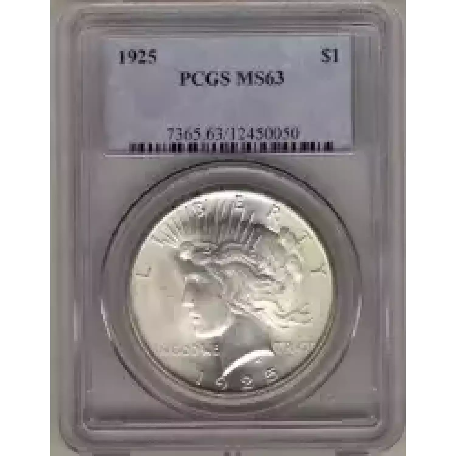 505195 | 1925-MS-63 Peace Silver Dollar PCGS MS-63 | PCGS | MS-63 | Sold: 04/12/2010 | $125 |