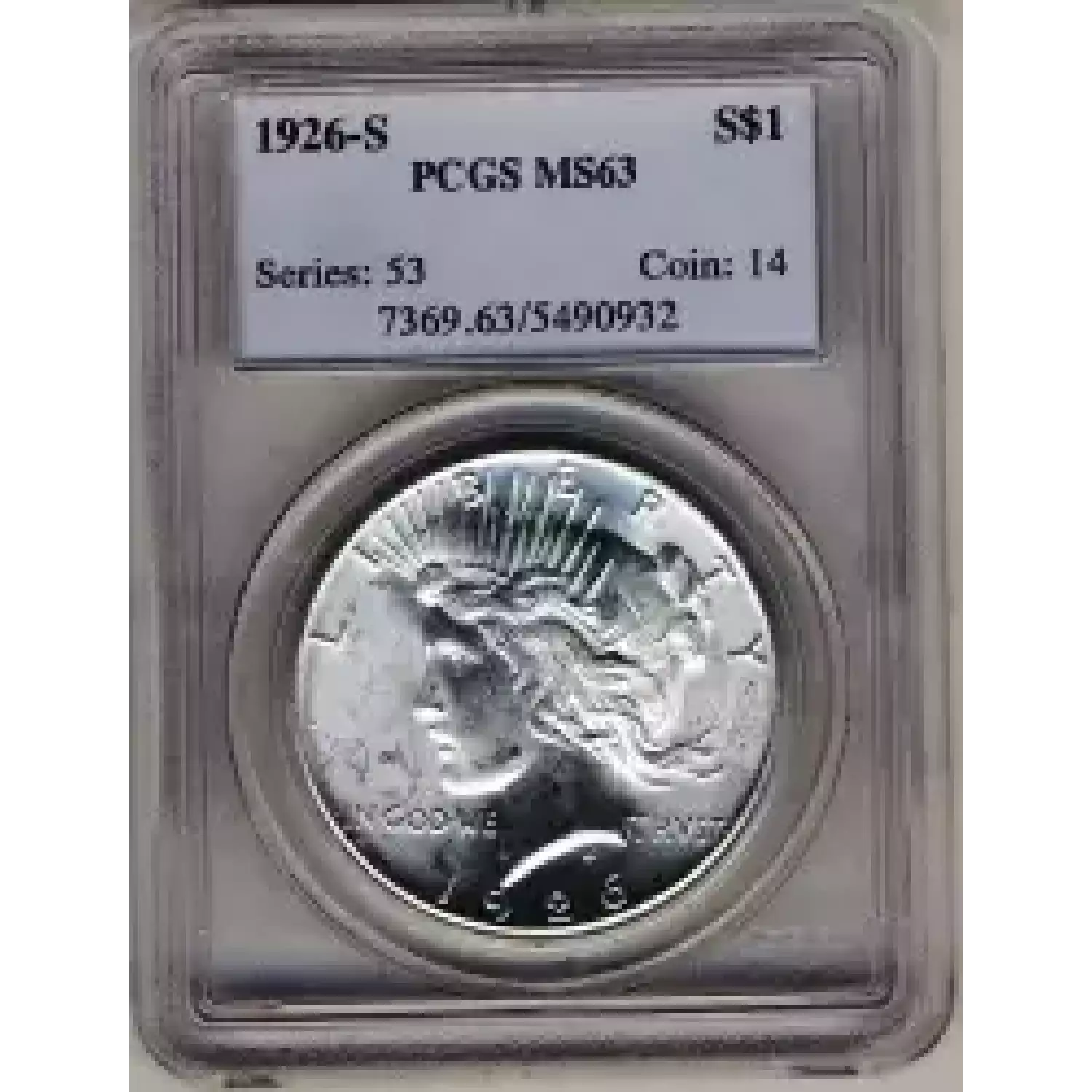 504943 | 1926-MS-63 Peace Silver Dollar PCGS MS-63 | PCGS | MS-63 | Sold: 21/07/2010 | $120 |