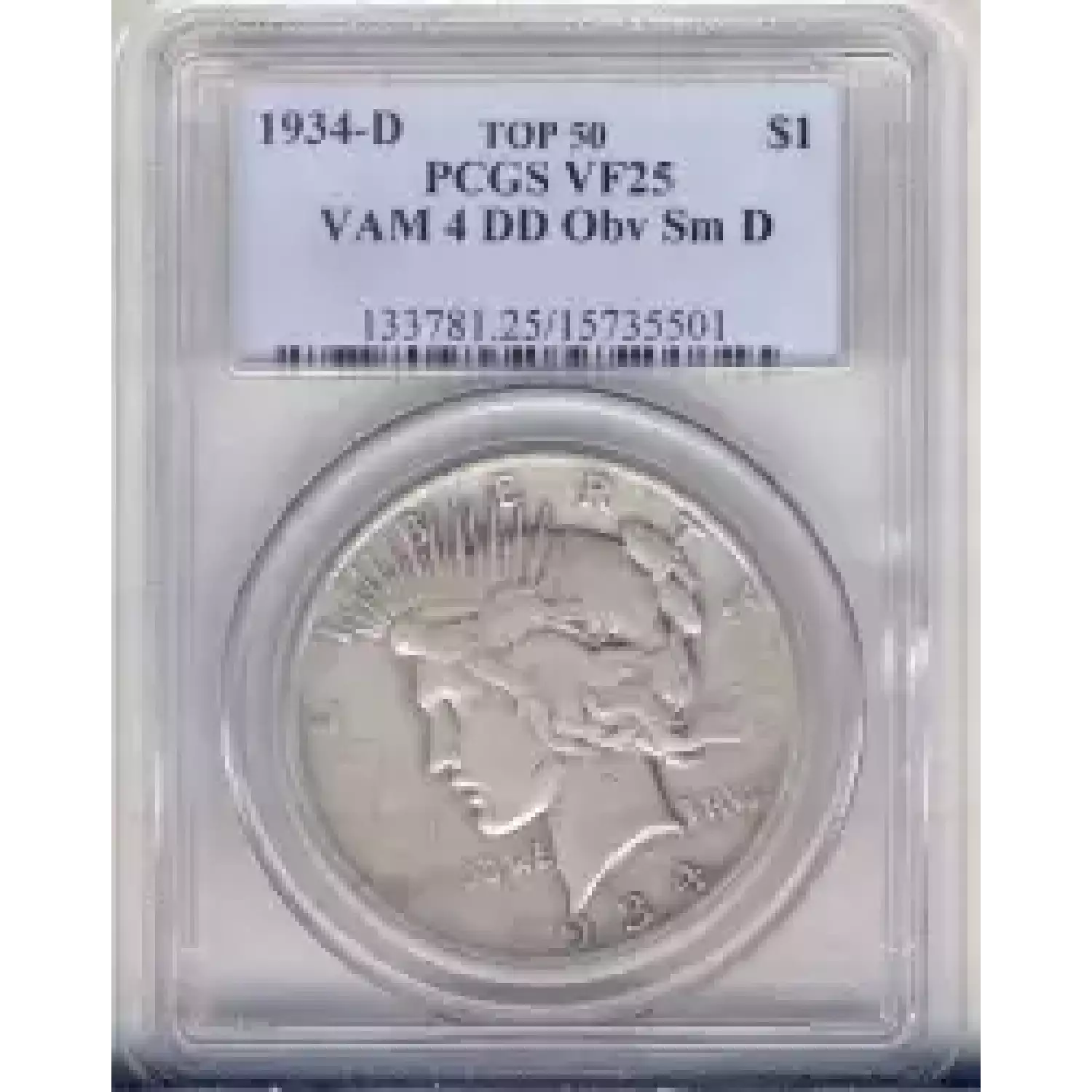 505314 | 1934-VF-25 Peace Silver Dollar PCGS VF-25 | PCGS | VF-25 | Sold: 12/01/2013 | $275 |