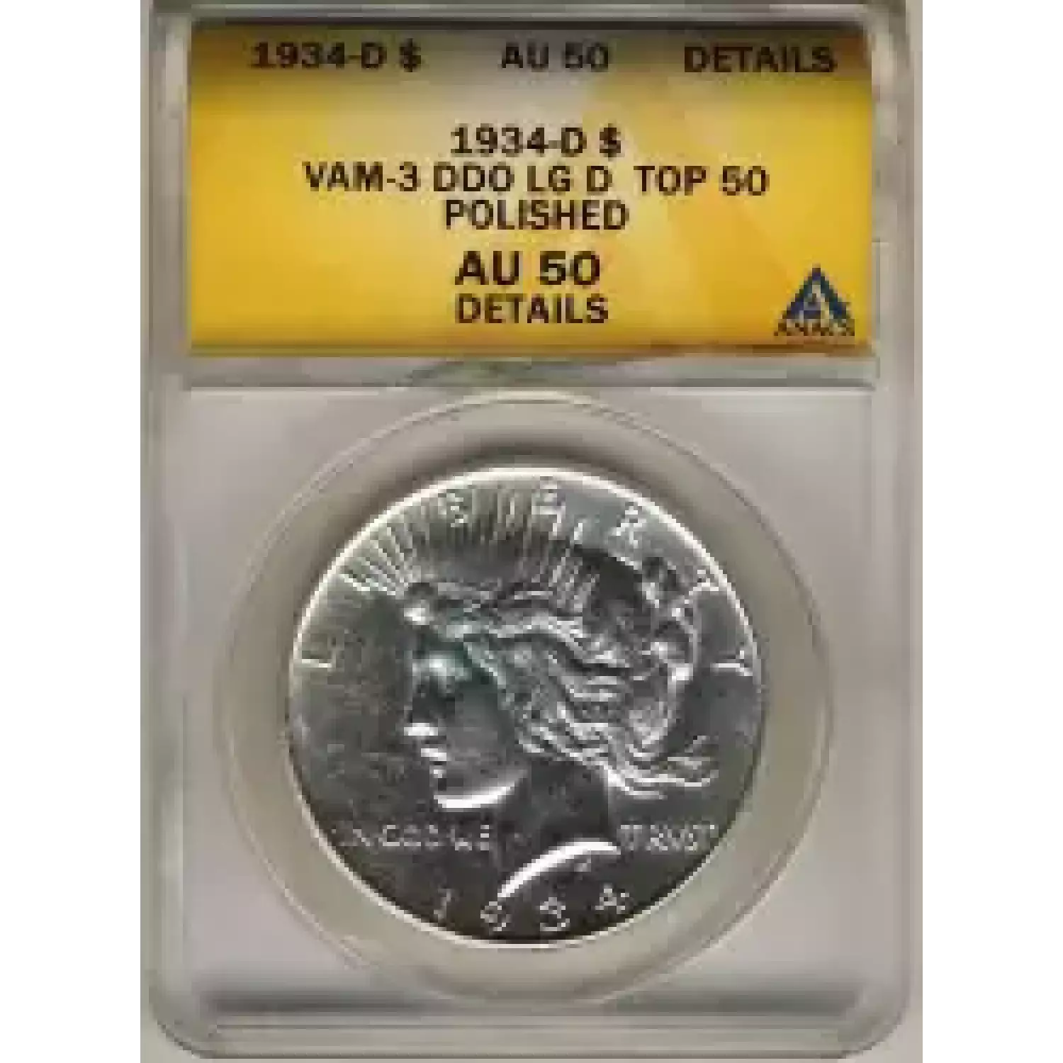504949 | 1934-AU Details Peace Silver Dollar ANACS AU Details | ANACS | AU Details | Sold: 08/07/2010 | $45 |