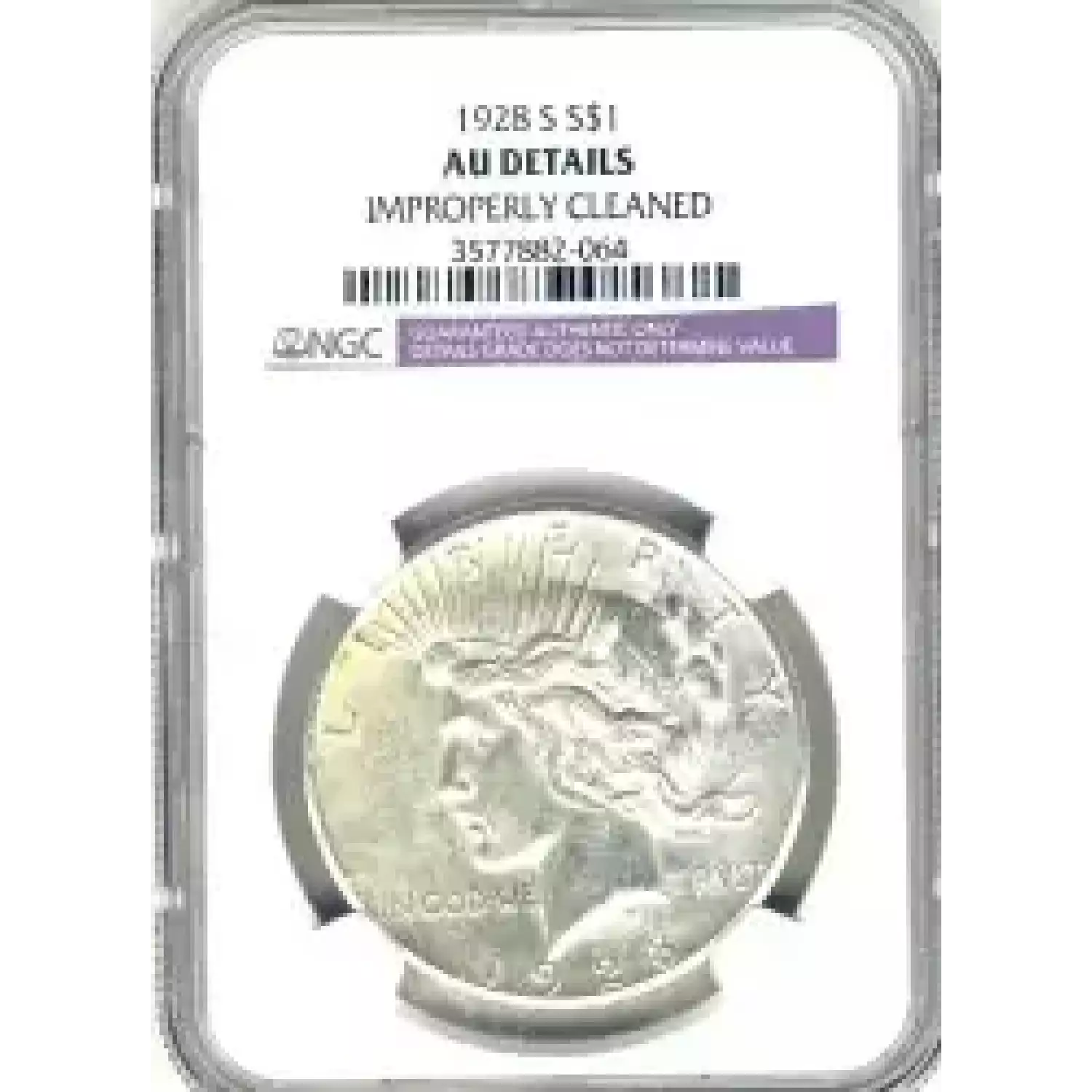 505334 | 1928-AU Details Peace Silver Dollar NGC AU Details | NGC | AU Details | Sold: 05/08/2012 | $51 |